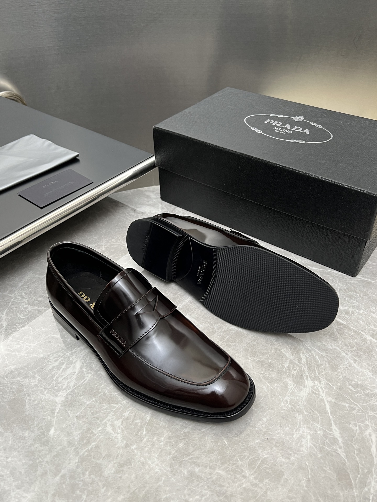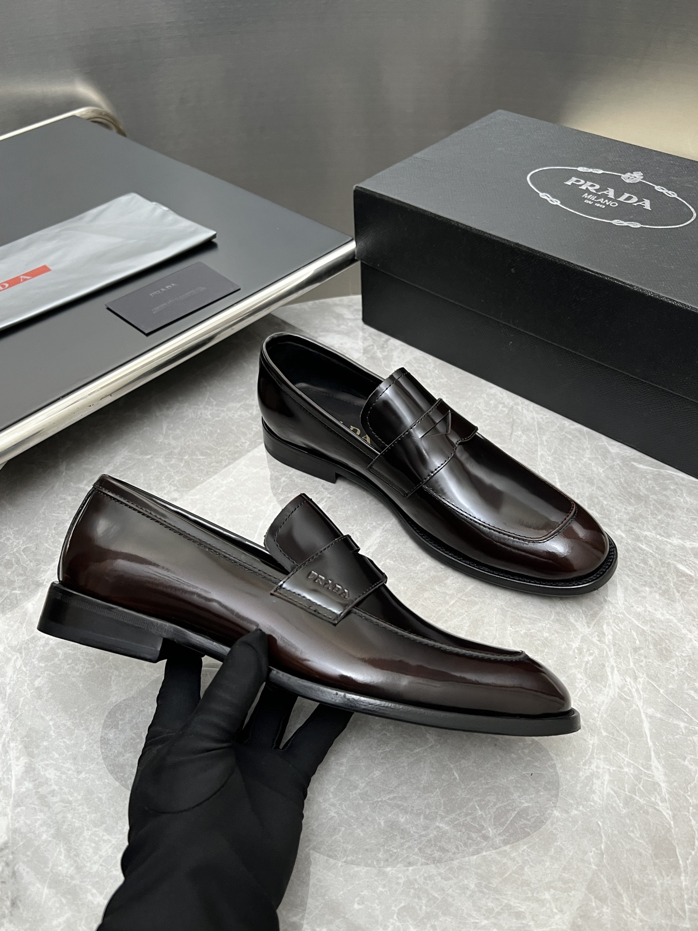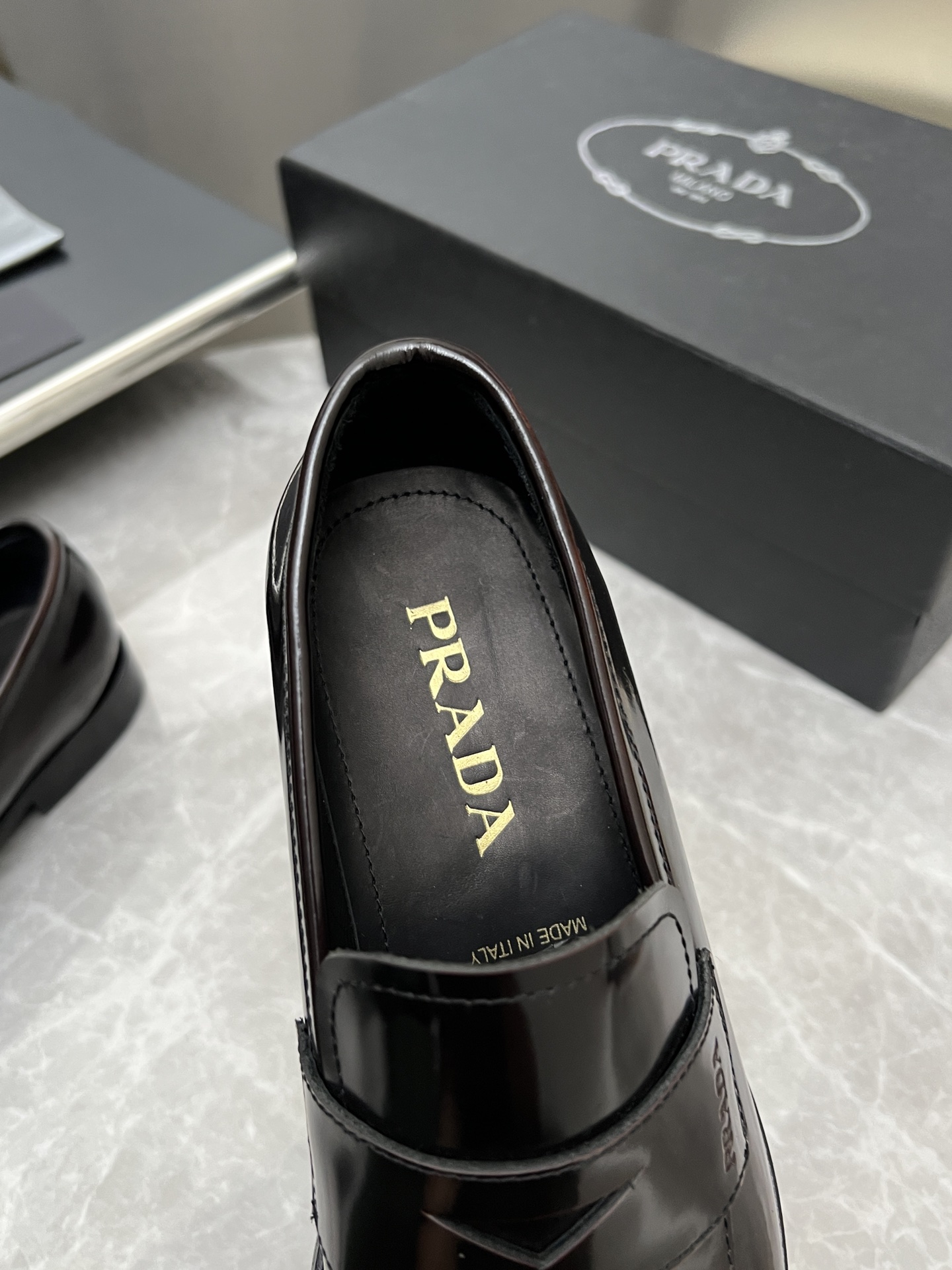 这款鞋子是AAAAA 1:1 质量 (非常棒). 使用了和原版一模一样的材料. 商标部分也保持了和普拉达/Prada一样. 图片拍摄是实物鞋子拍摄, 您所收到的实物保证和我们图片一模一样.