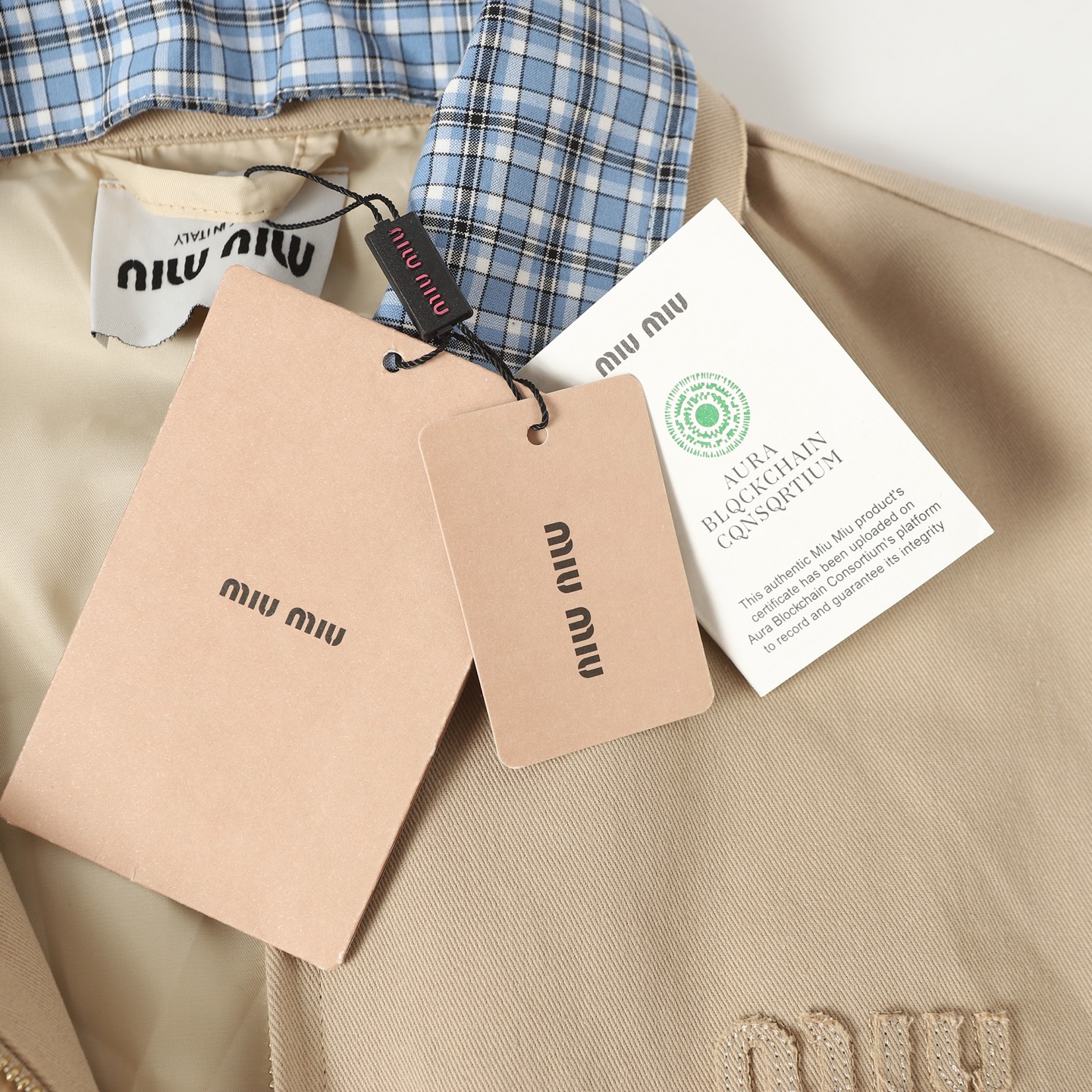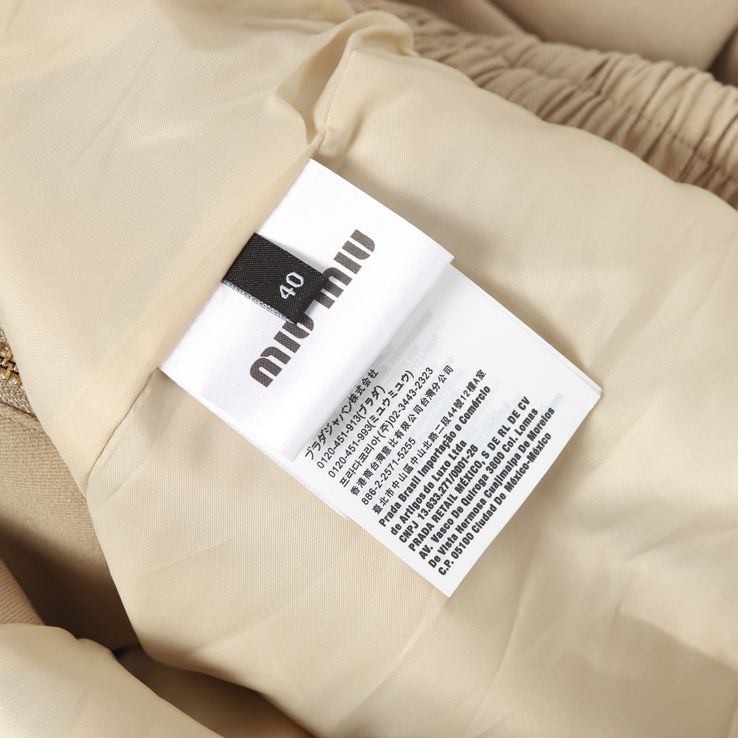 这款衣服是AAAAA 1:1 质量 (非常棒). 使用了和原版一模一样的材料. 商标部分也保持了和缪缪/Miu Miu一样. 图片拍摄是实物衣服拍摄, 您所收到的实物保证和我们图片一模一样.