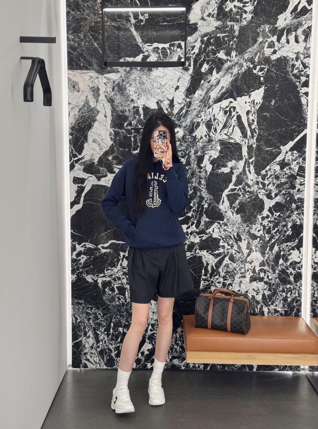 这款衣服是AAAAA 1:1 质量 (非常棒). 使用了和原版一模一样的材料. 商标部分也保持了和思琳/Celine一样. 图片拍摄是实物衣服拍摄, 您所收到的实物保证和我们图片一模一样.