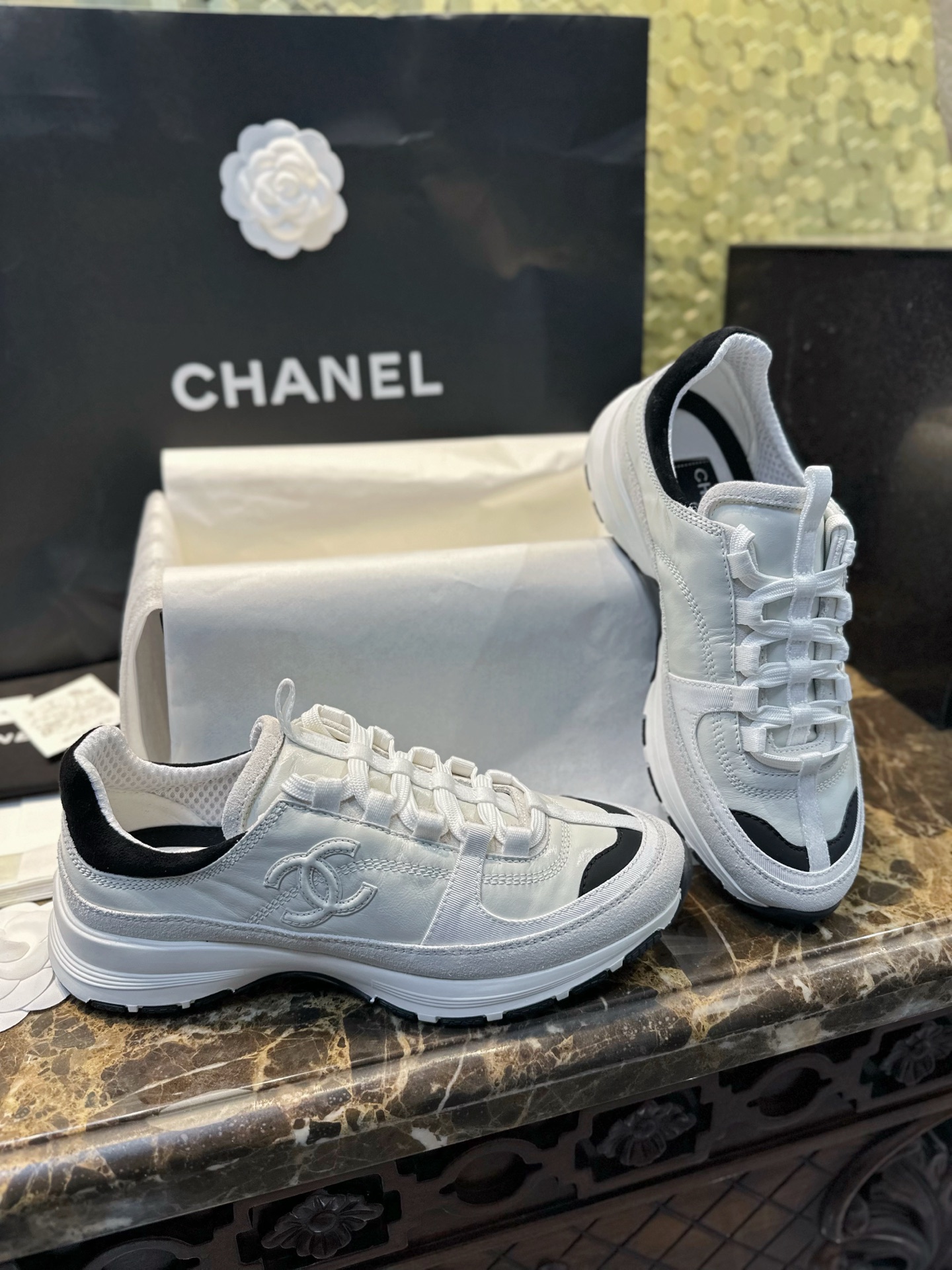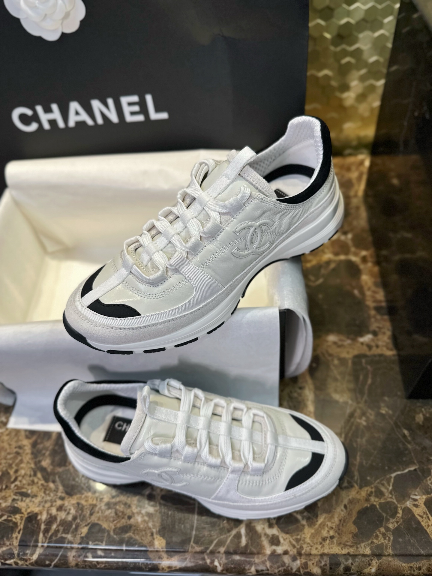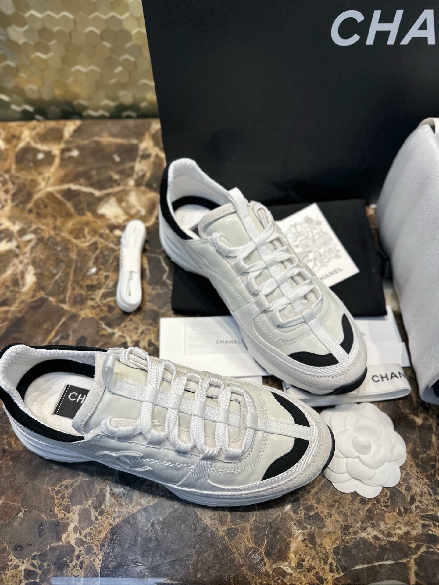 这款鞋子是AAAAA 1:1 质量 (非常棒). 使用了和原版一模一样的材料. 商标部分也保持了和香奈儿/Chanel一样. 图片拍摄是实物鞋子拍摄, 您所收到的实物保证和我们图片一模一样.