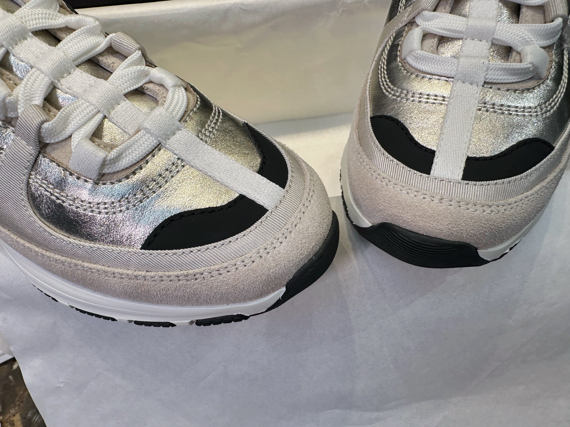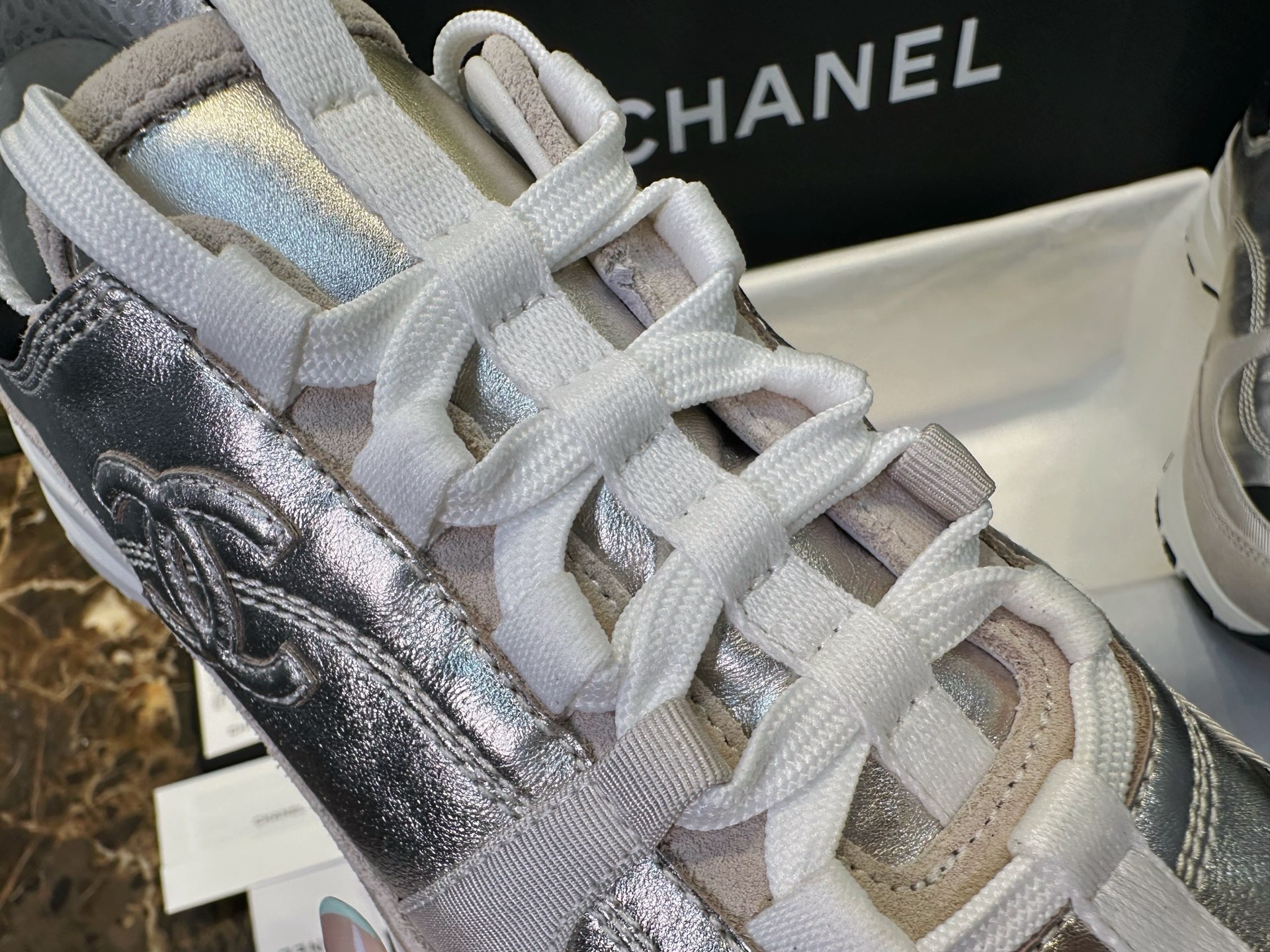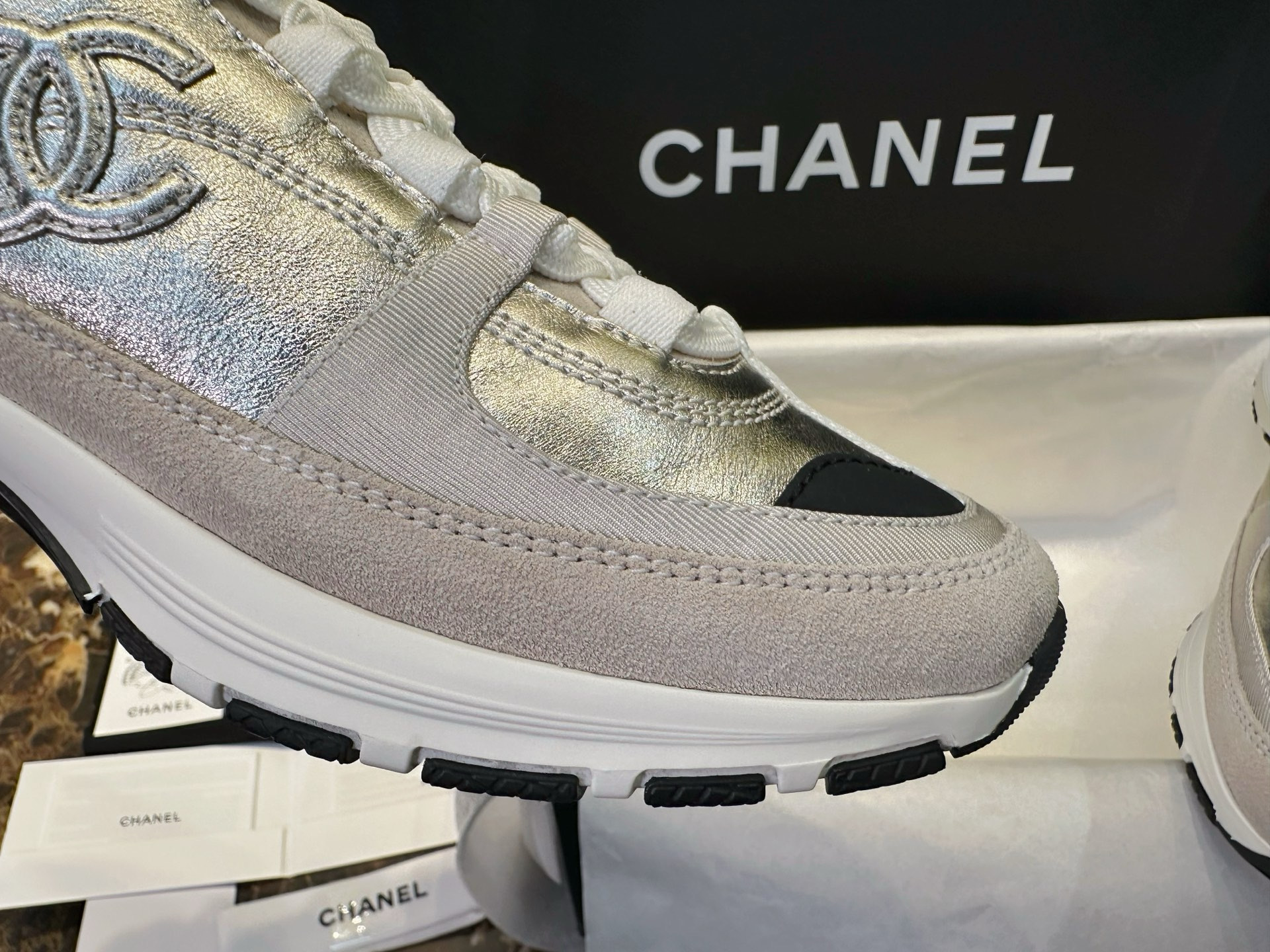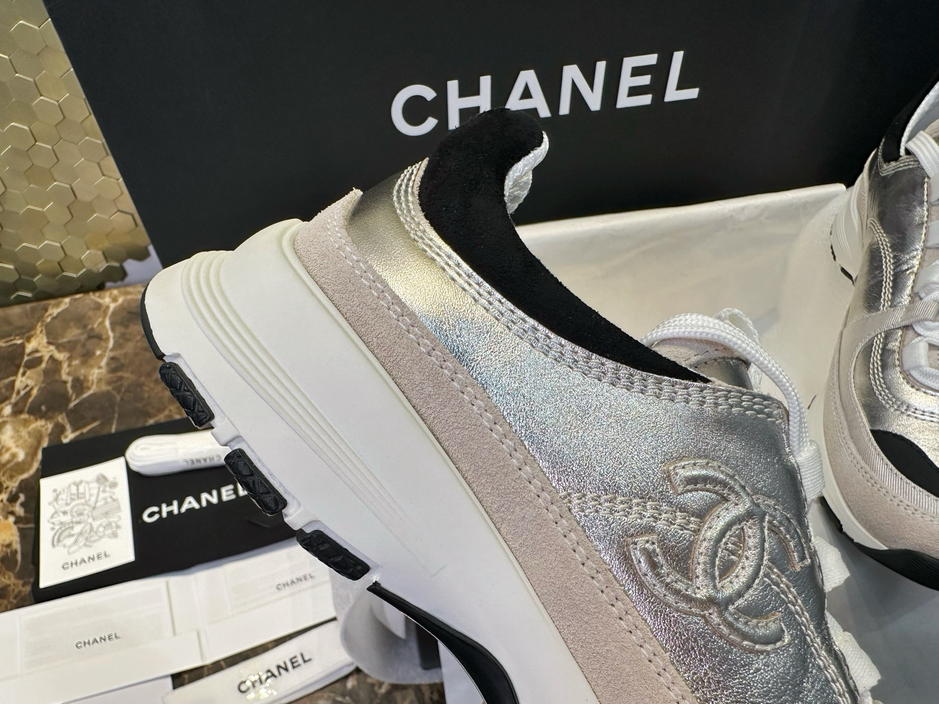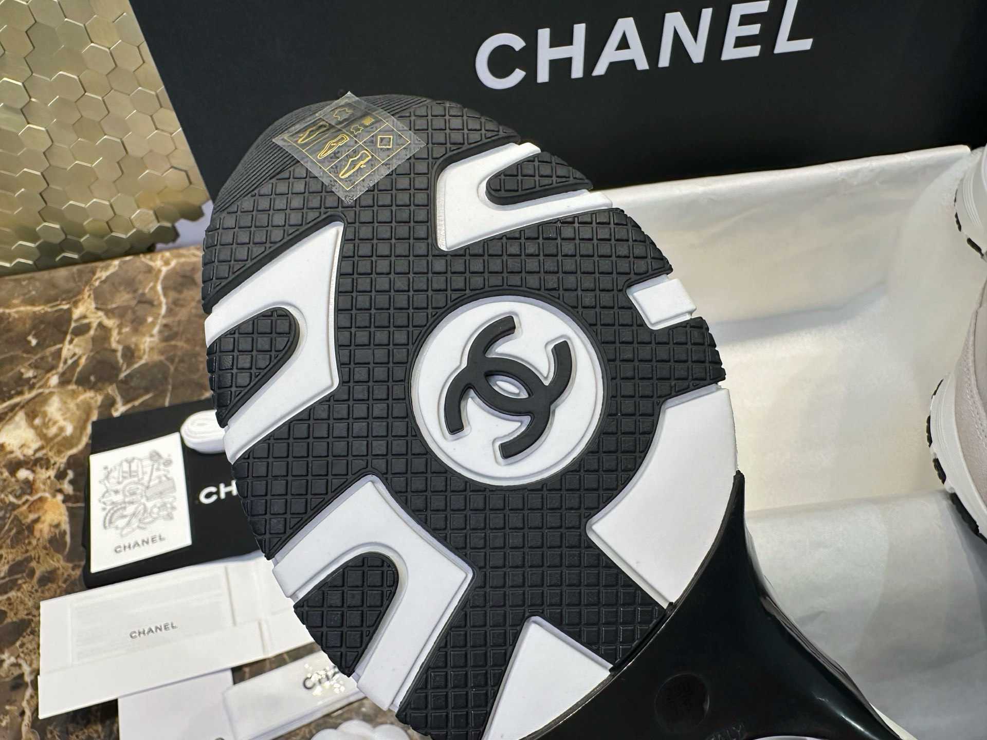 这款鞋子是AAAAA 1:1 质量 (非常棒). 使用了和原版一模一样的材料. 商标部分也保持了和香奈儿/Chanel一样. 图片拍摄是实物鞋子拍摄, 您所收到的实物保证和我们图片一模一样.