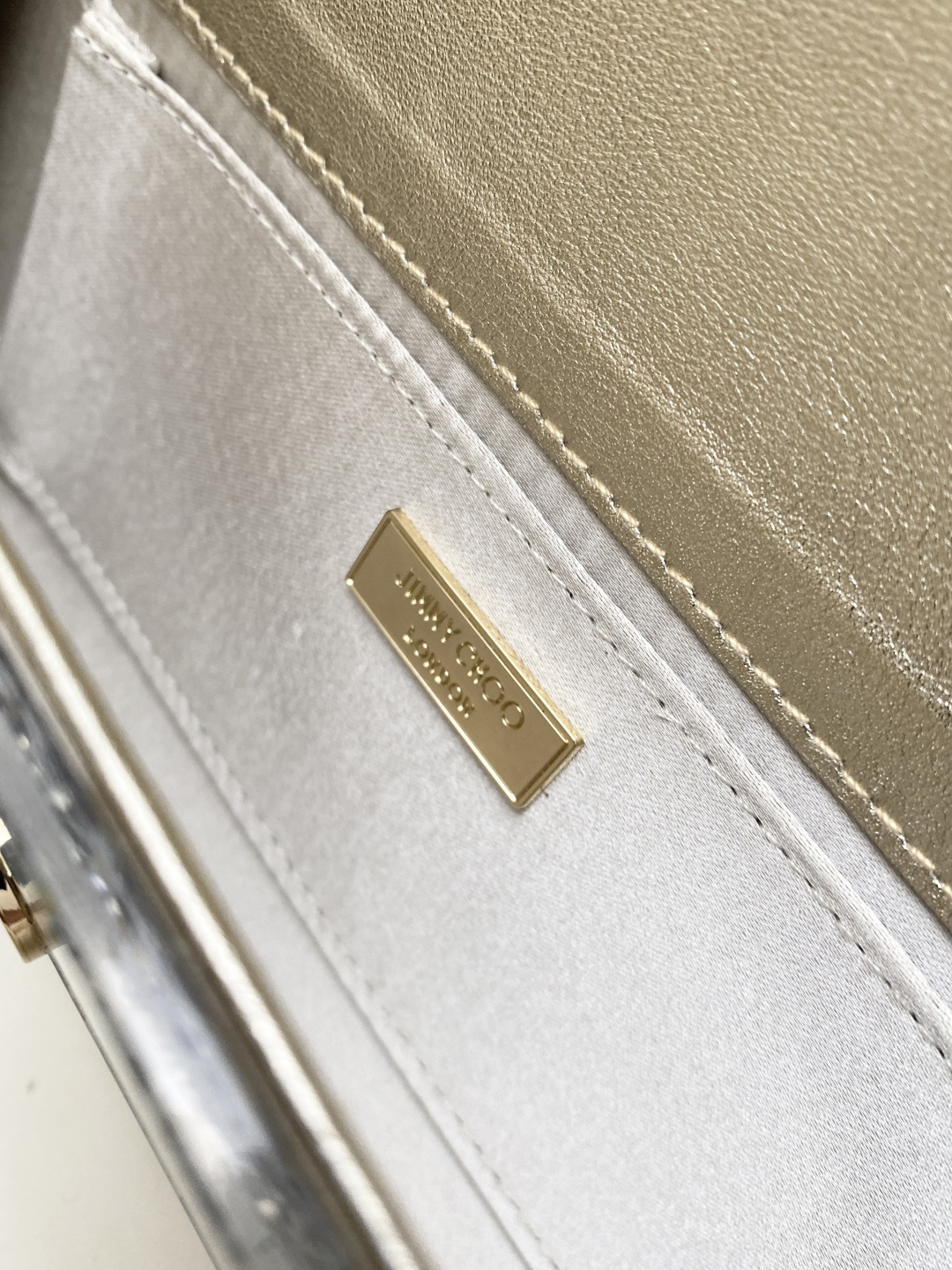 这款包包是AAAAA 1:1 质量 (非常棒). 使用了和原版一模一样的材料. 商标部分也保持了和吉米乔/JIMMY CHOO一样. 图片拍摄是实物包包拍摄, 您所收到的实物保证和我们图片一模一样.