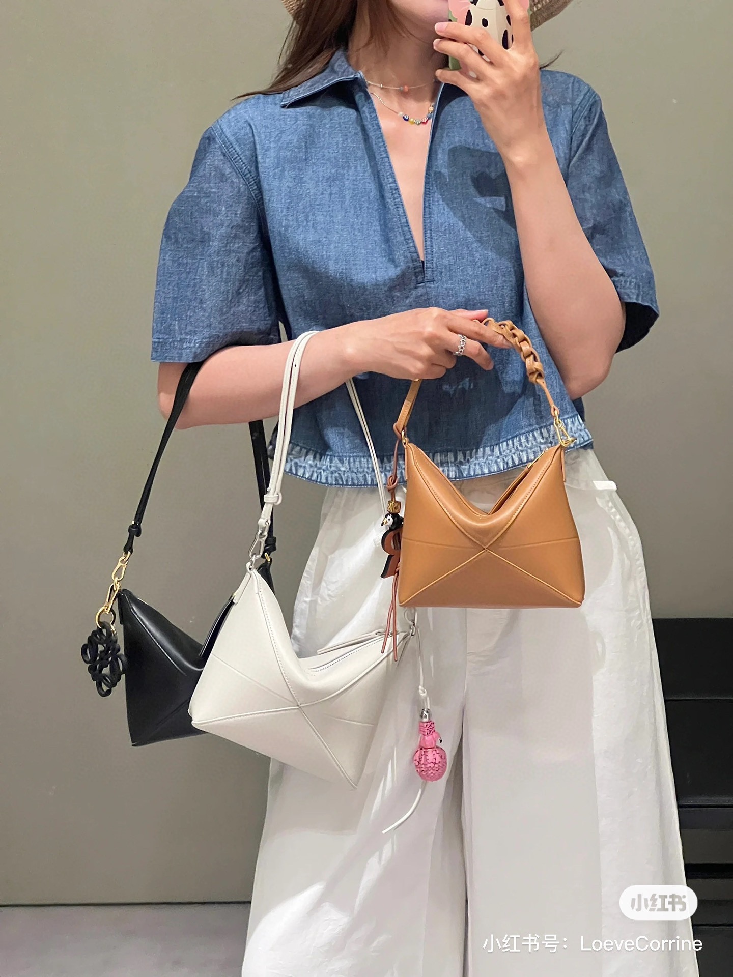 这款包包是AAAAA 1:1 质量 (非常棒). 使用了和原版一模一样的材料. 商标部分也保持了和罗意威/Loewe一样. 图片拍摄是实物包包拍摄, 您所收到的实物保证和我们图片一模一样.