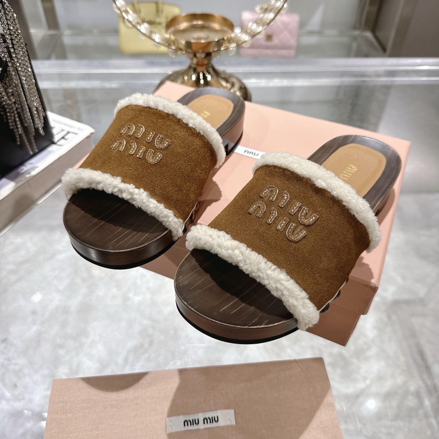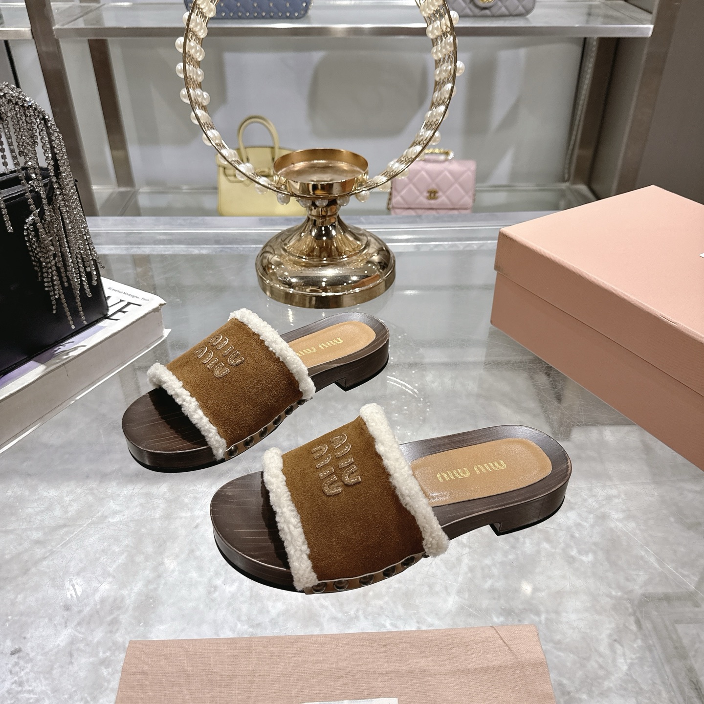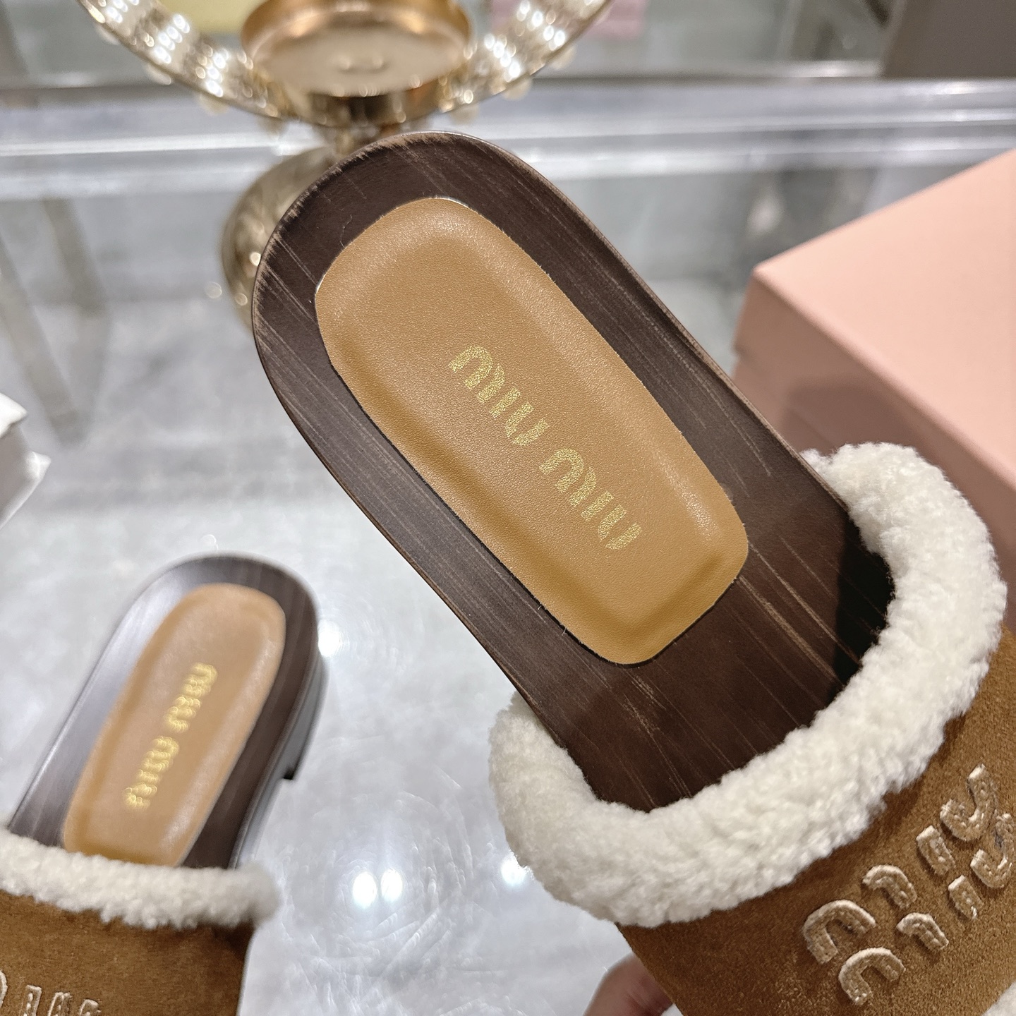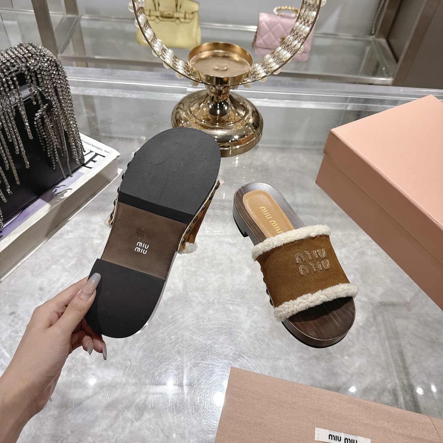 这款鞋子是AAAAA 1:1 质量 (非常棒). 使用了和原版一模一样的材料. 商标部分也保持了和缪缪/Miu Miu一样. 图片拍摄是实物鞋子拍摄, 您所收到的实物保证和我们图片一模一样.