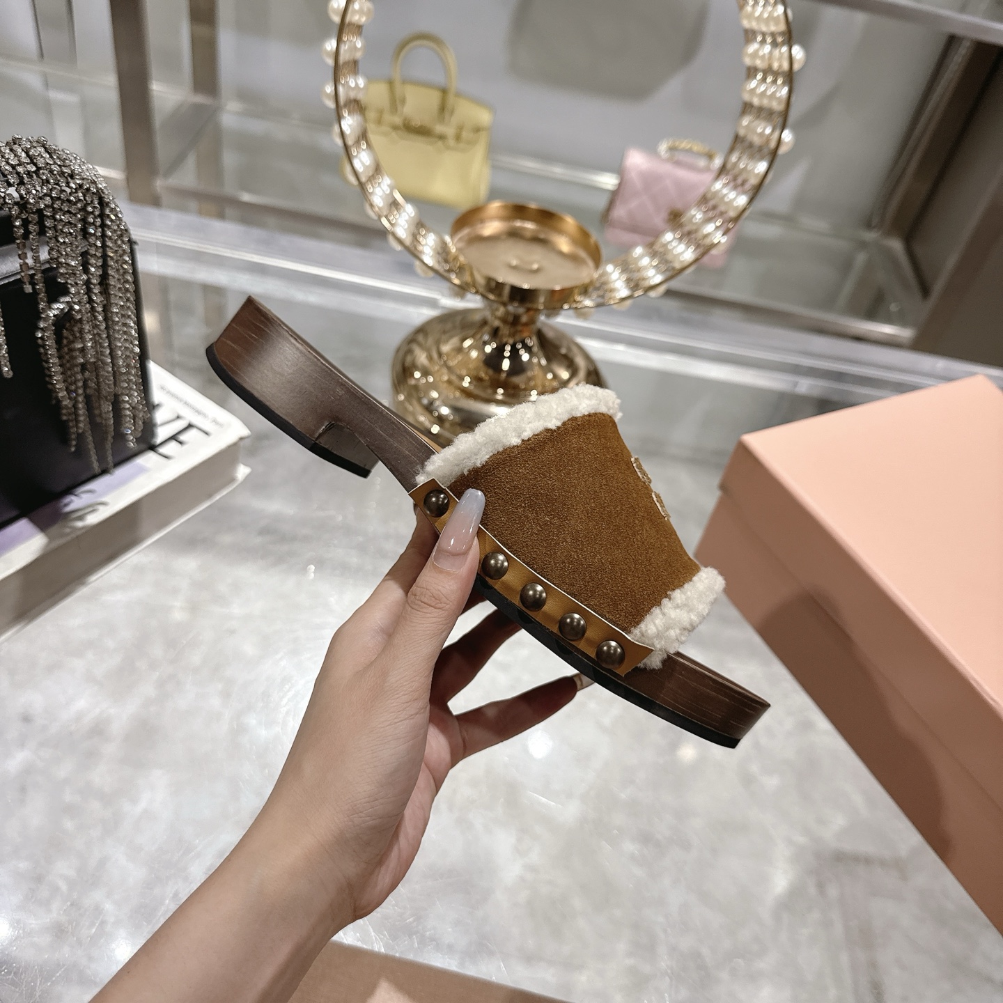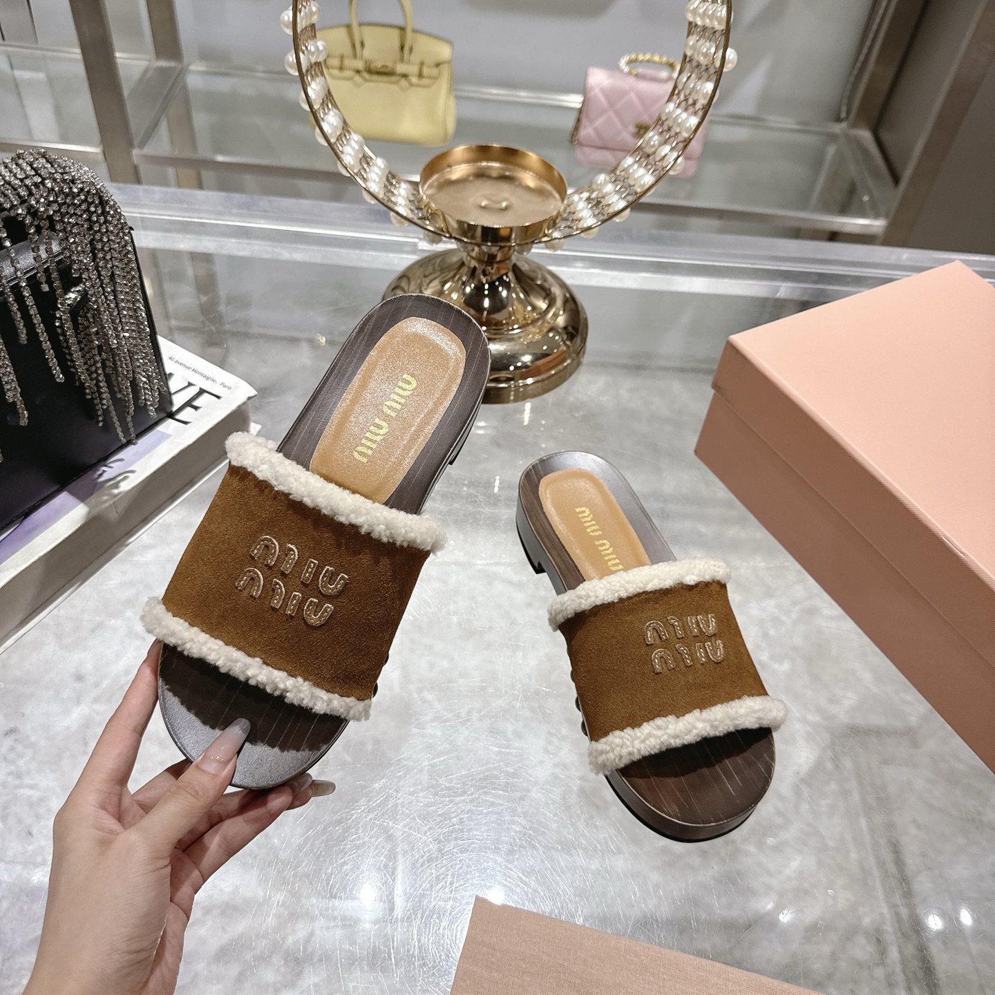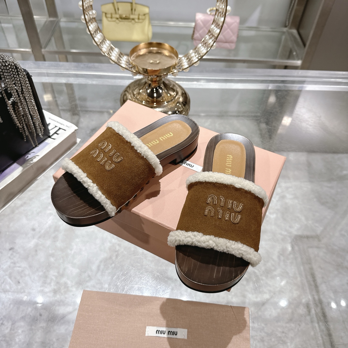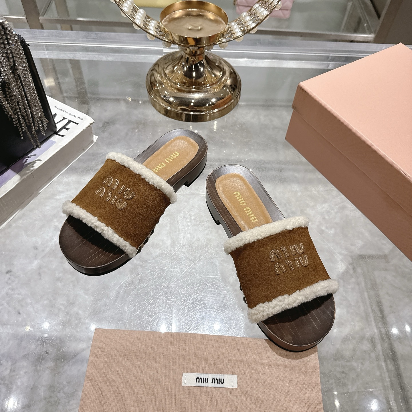 这款鞋子是AAAAA 1:1 质量 (非常棒). 使用了和原版一模一样的材料. 商标部分也保持了和缪缪/Miu Miu一样. 图片拍摄是实物鞋子拍摄, 您所收到的实物保证和我们图片一模一样.