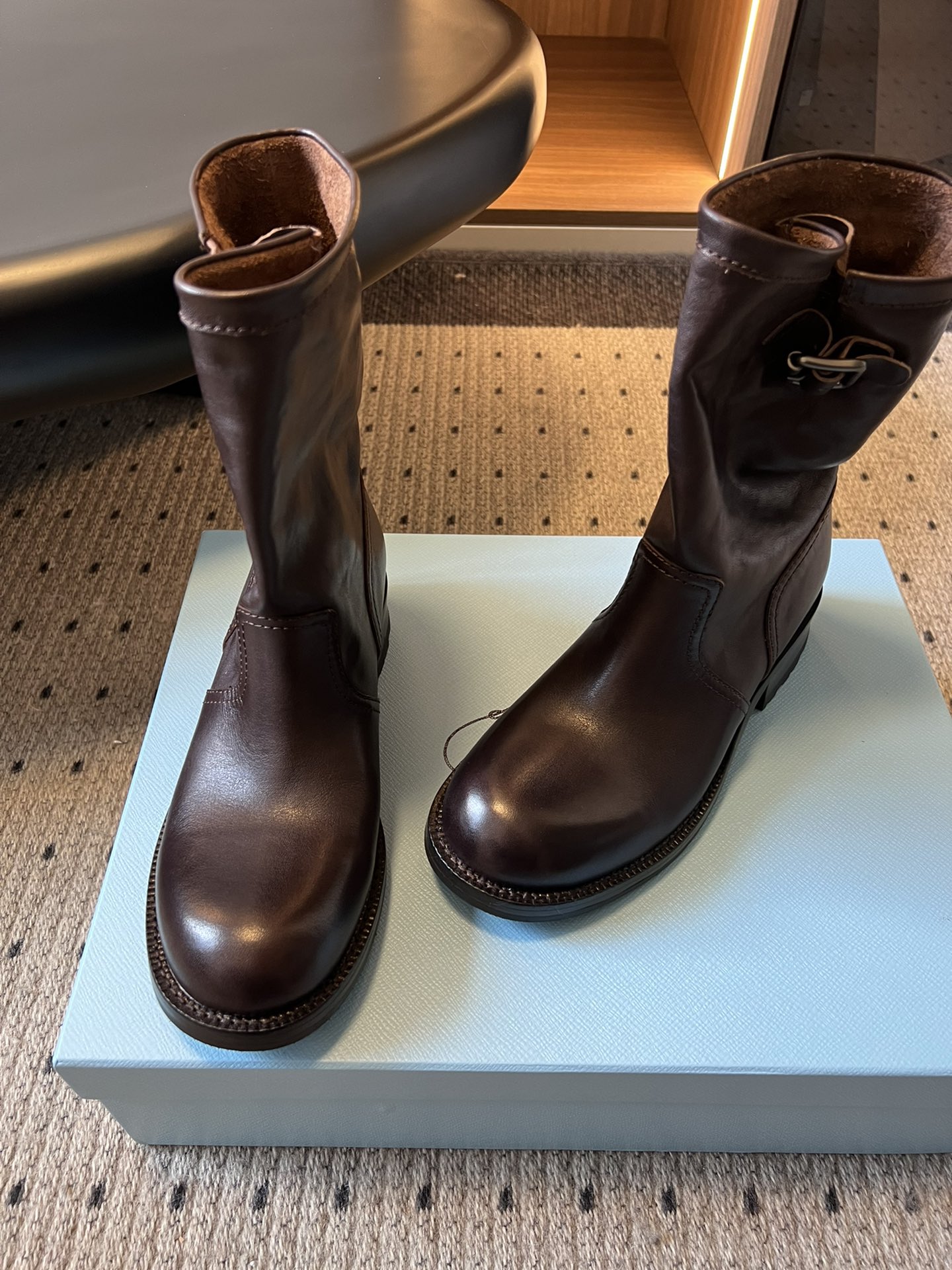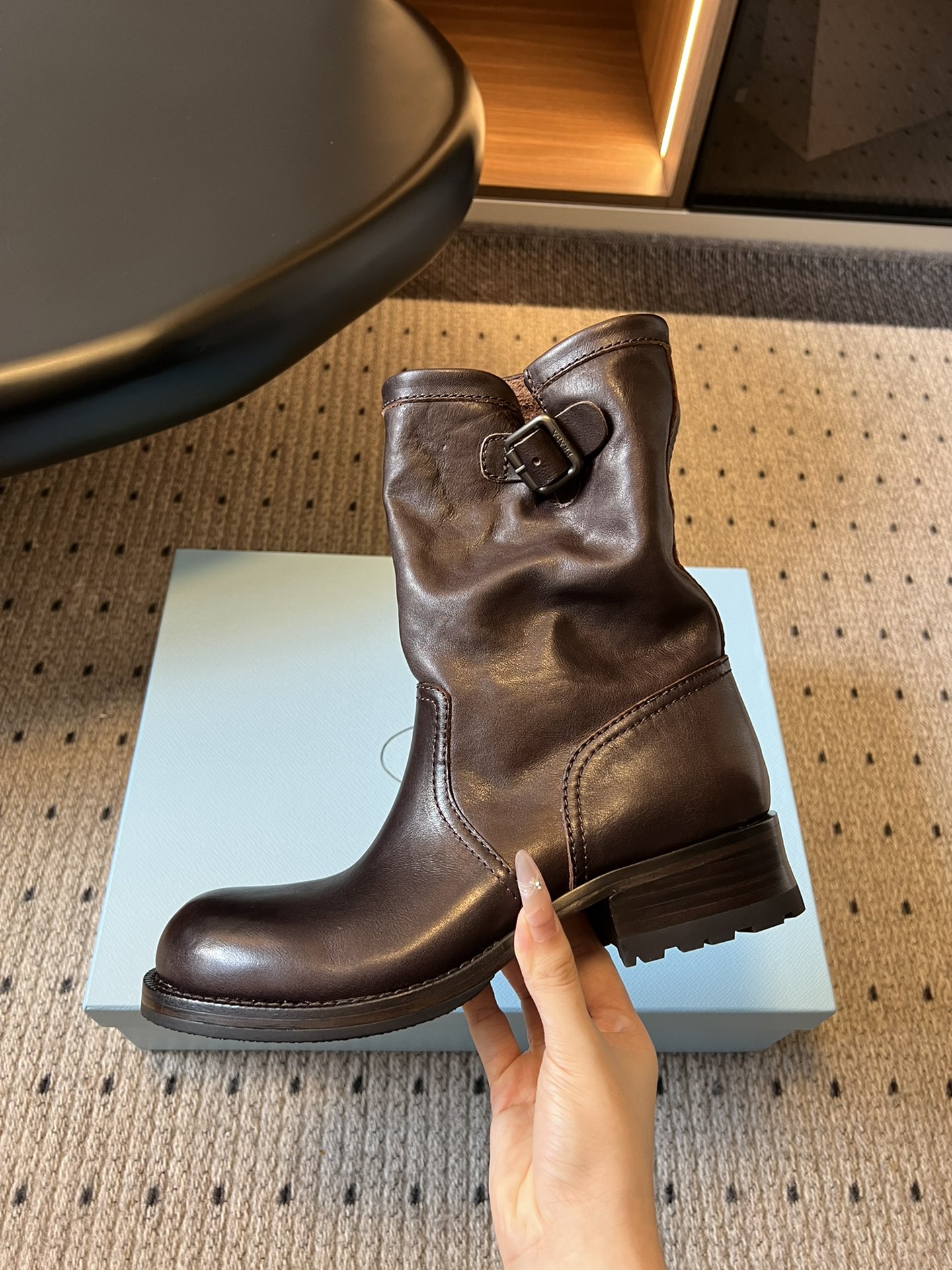 这款鞋子是AAAAA 1:1 质量 (非常棒). 使用了和原版一模一样的材料. 商标部分也保持了和普拉达/Prada一样. 图片拍摄是实物鞋子拍摄, 您所收到的实物保证和我们图片一模一样.