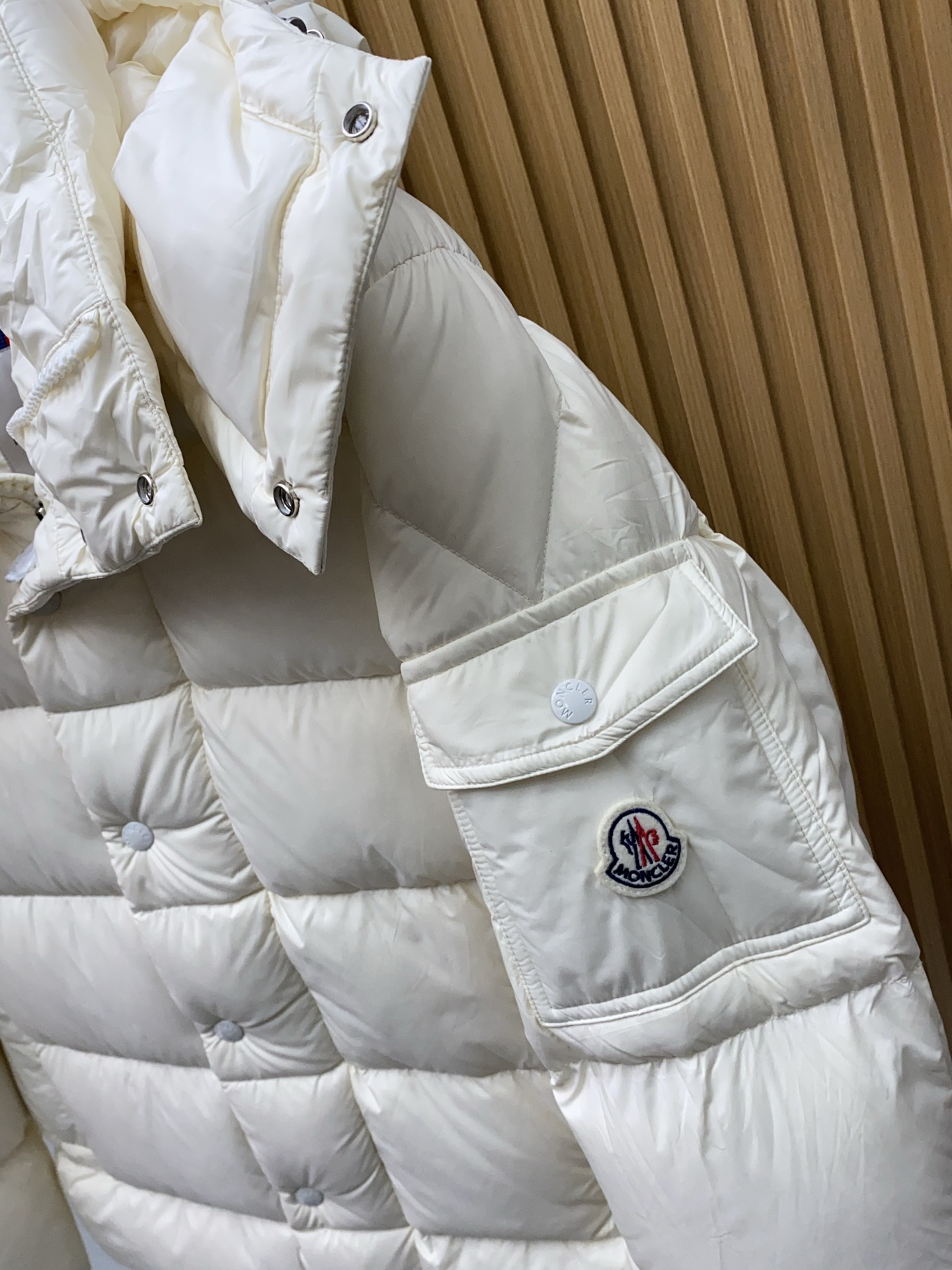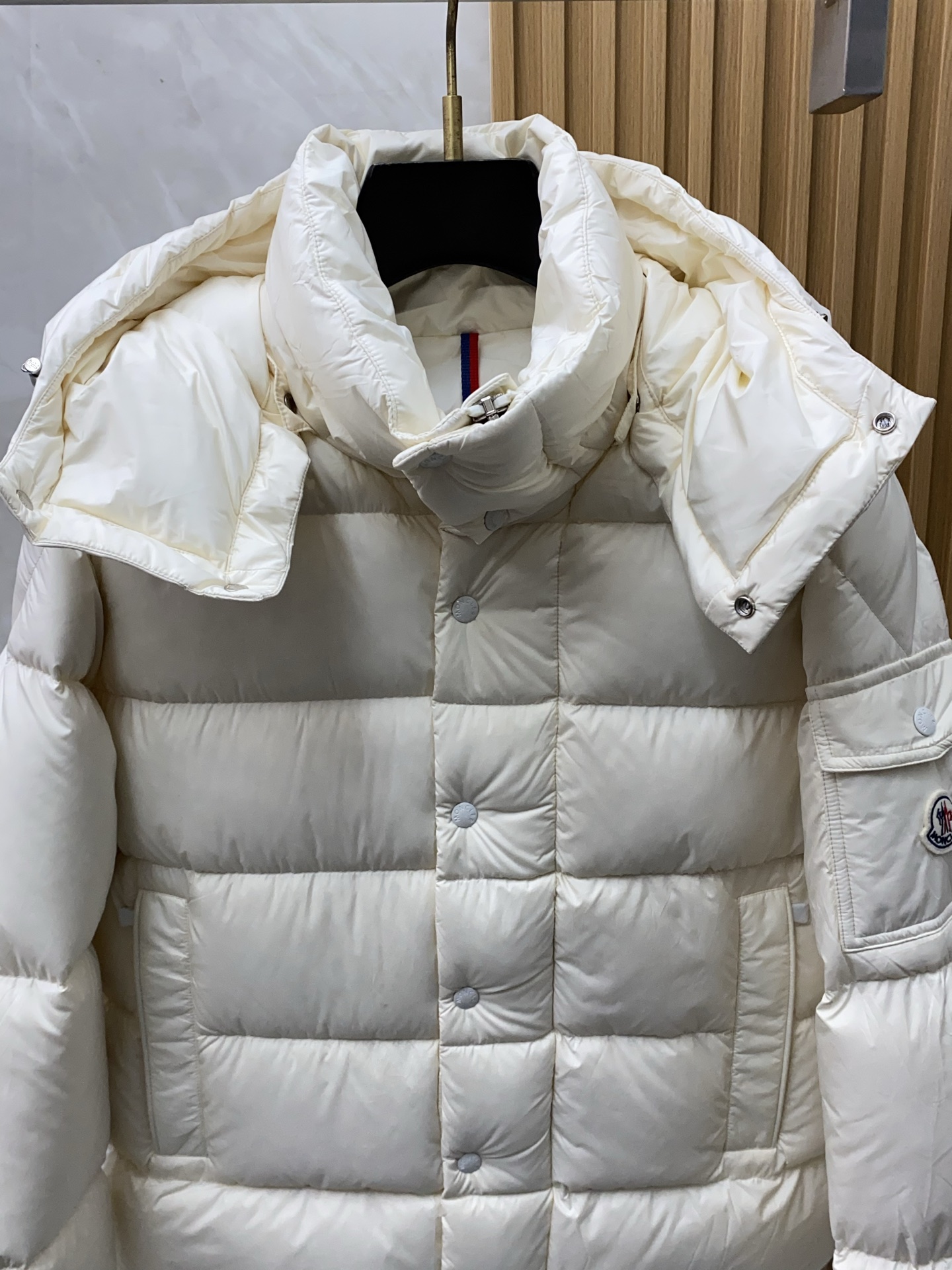 这款衣服是AAAAA 1:1 质量 (非常棒). 使用了和原版一模一样的材料. 商标部分也保持了和盟可睐/moncler一样. 图片拍摄是实物衣服拍摄, 您所收到的实物保证和我们图片一模一样.