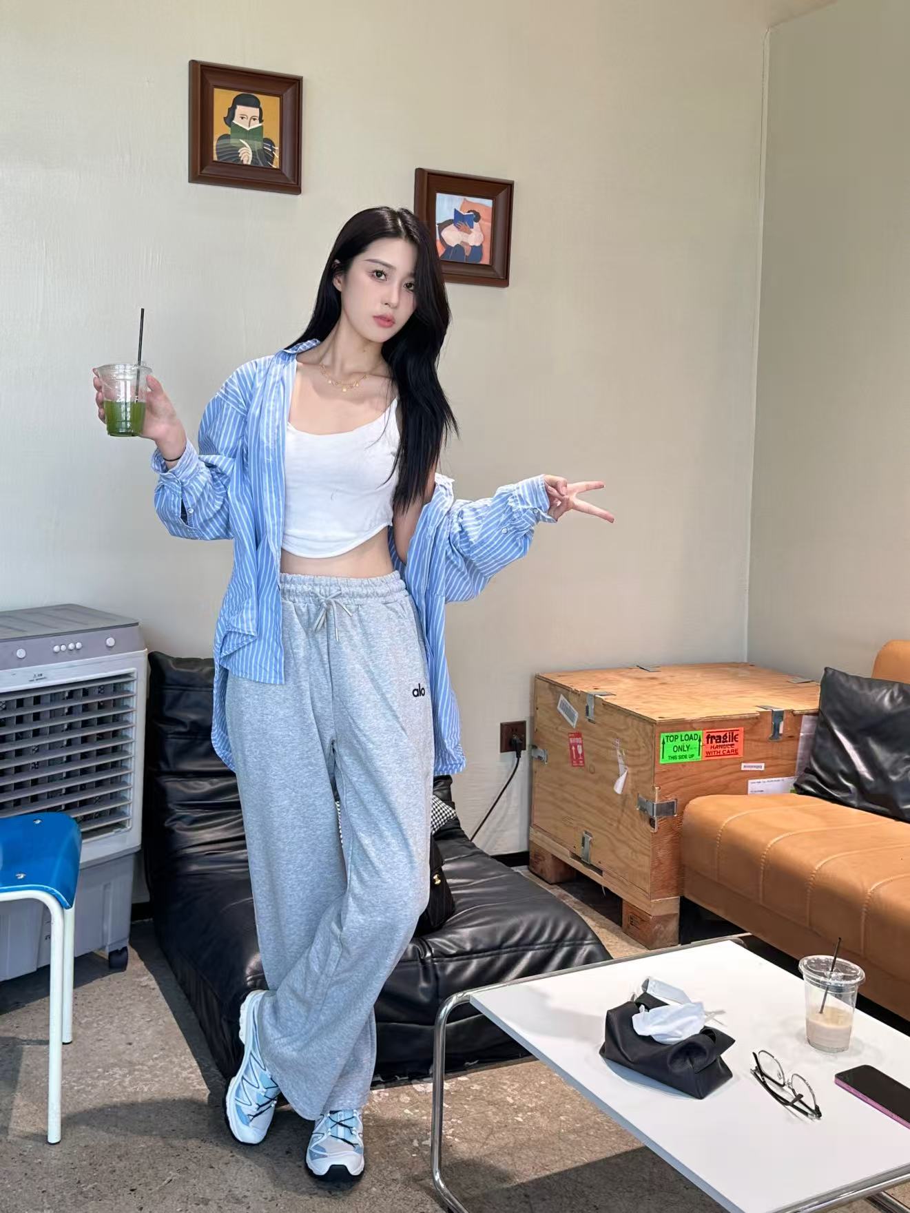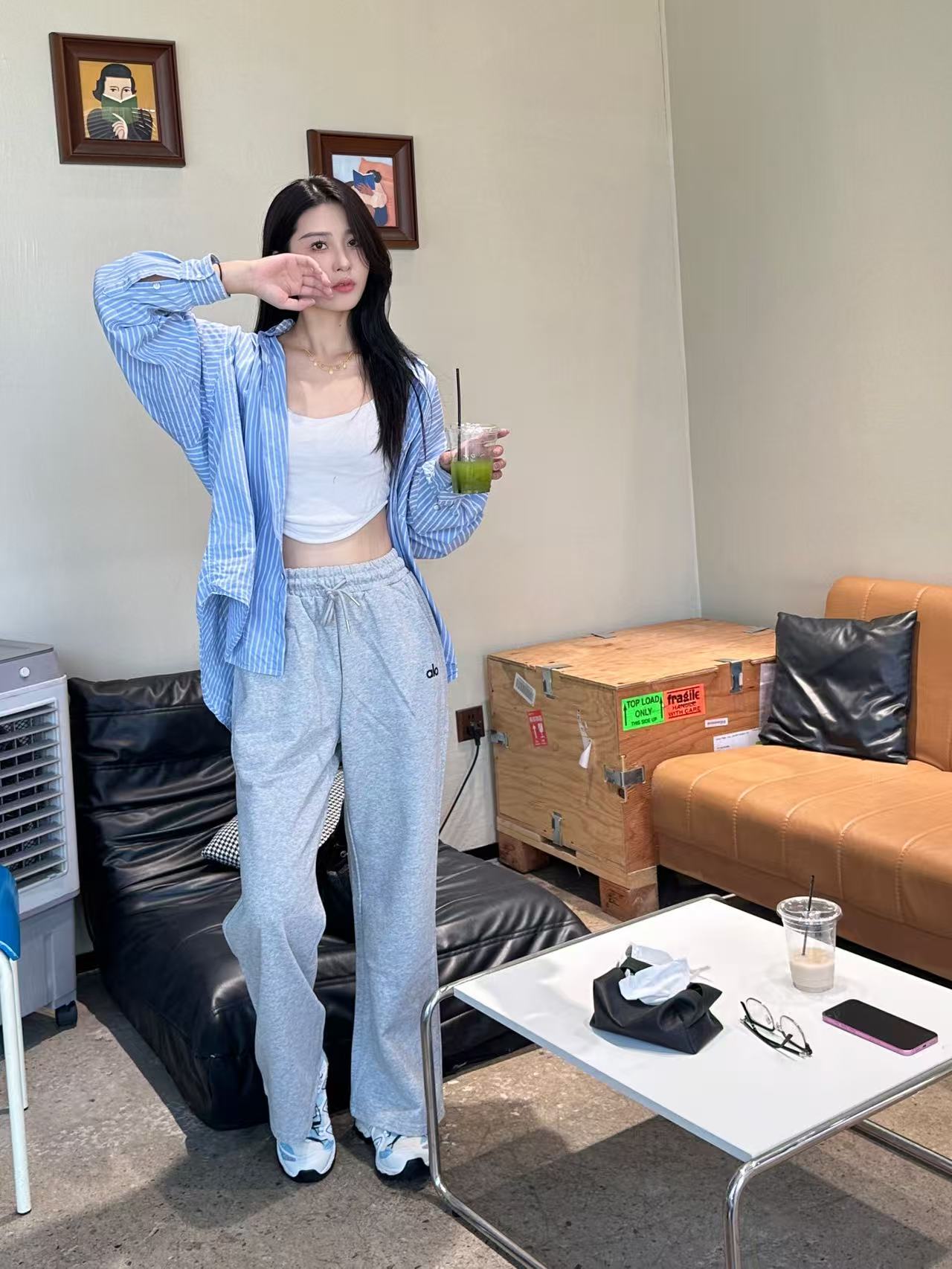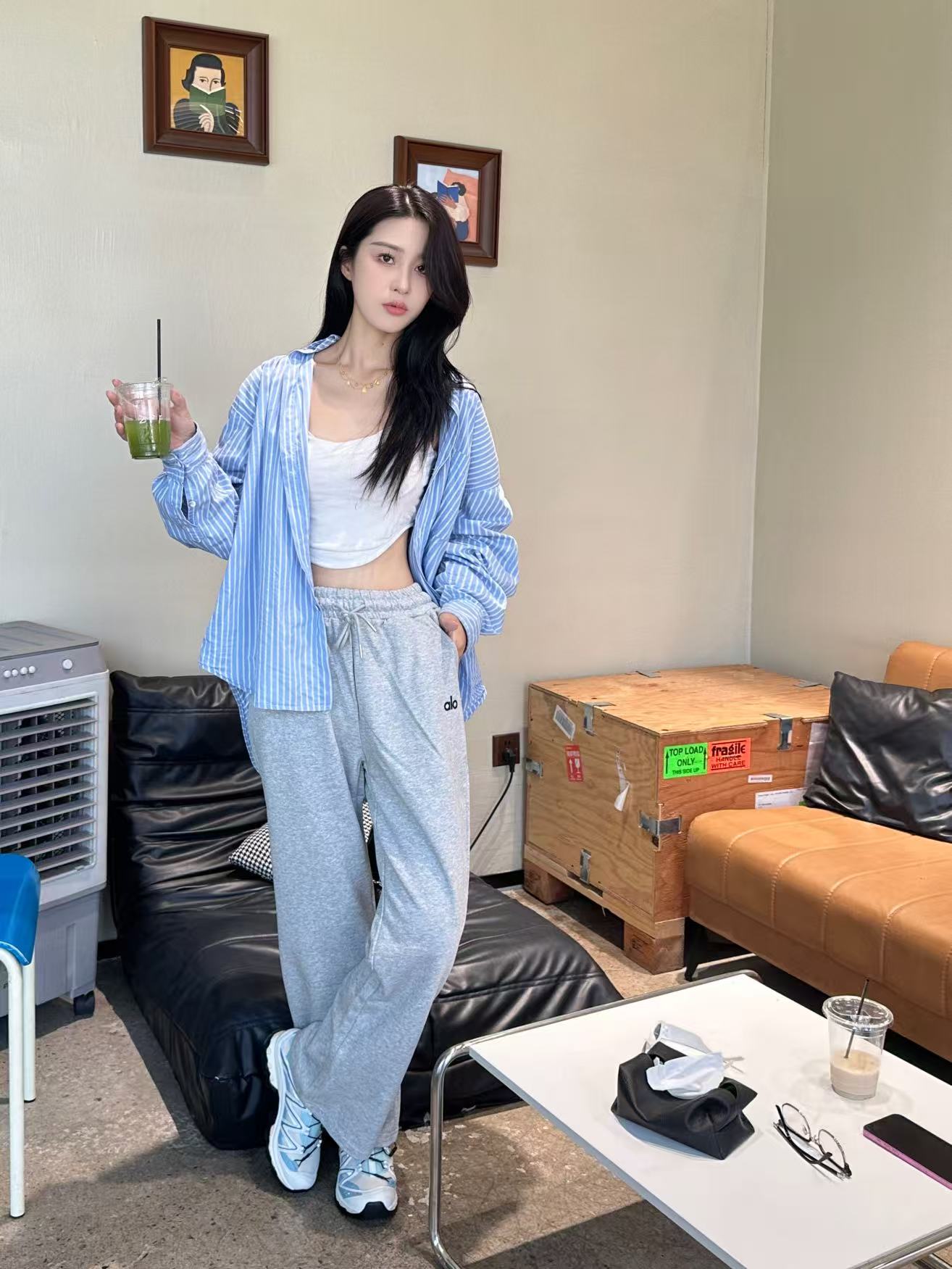 这款衣服是AAAAA 1:1 质量 (非常棒). 使用了和原版一模一样的材料. 商标部分也保持了和Alo Yoga一样. 图片拍摄是实物衣服拍摄, 您所收到的实物保证和我们图片一模一样.