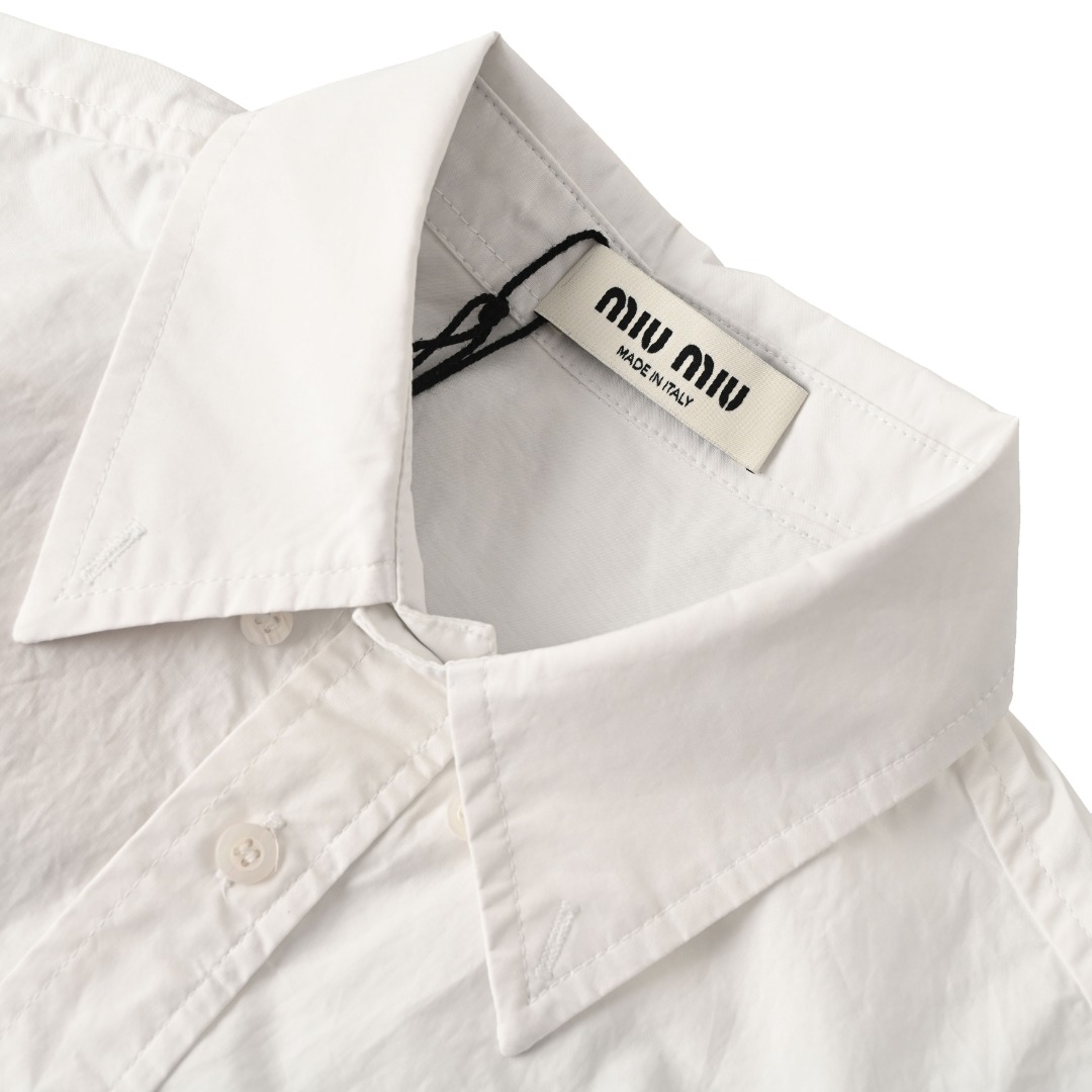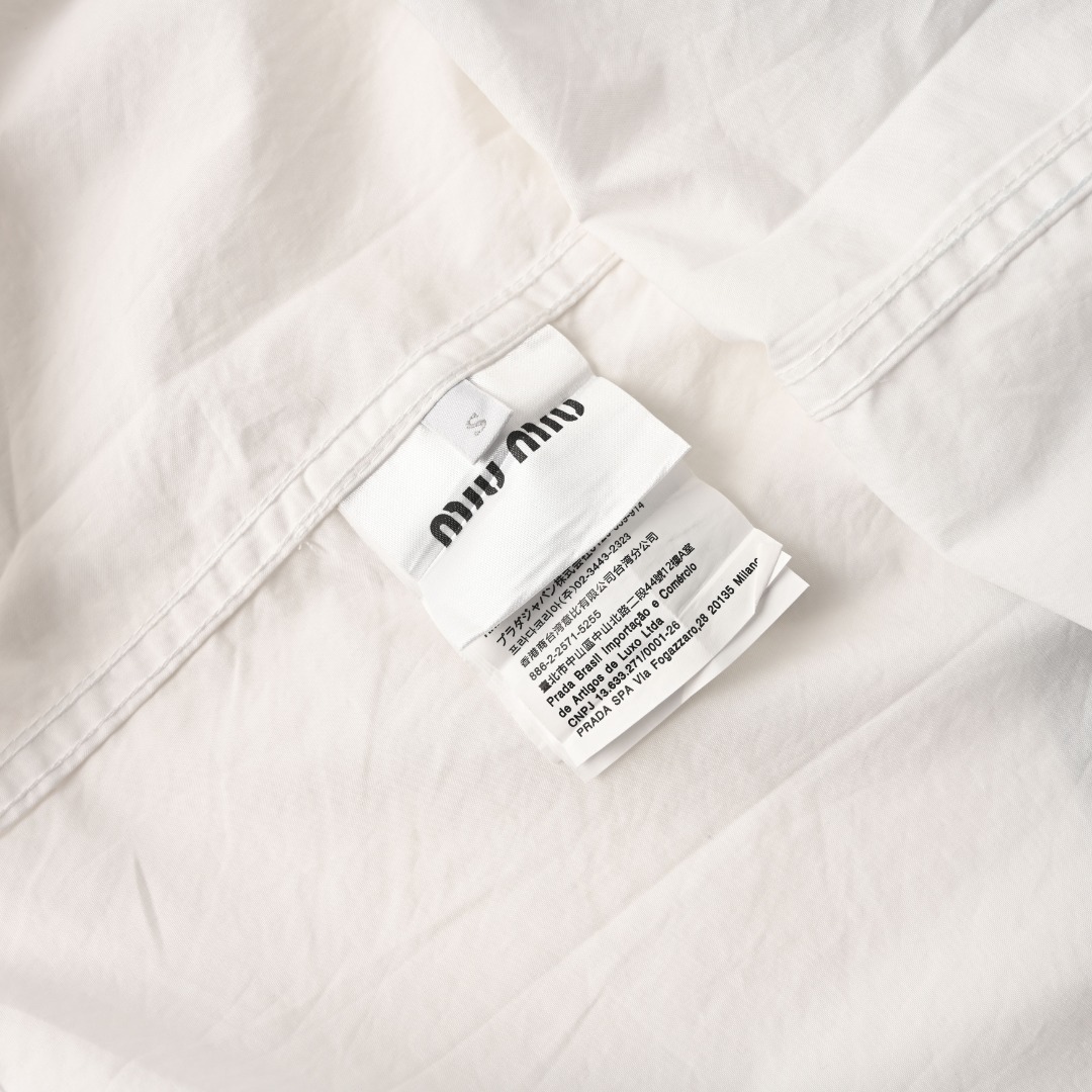 这款衣服是AAAAA 1:1 质量 (非常棒). 使用了和原版一模一样的材料. 商标部分也保持了和缪缪/Miu Miu一样. 图片拍摄是实物衣服拍摄, 您所收到的实物保证和我们图片一模一样.