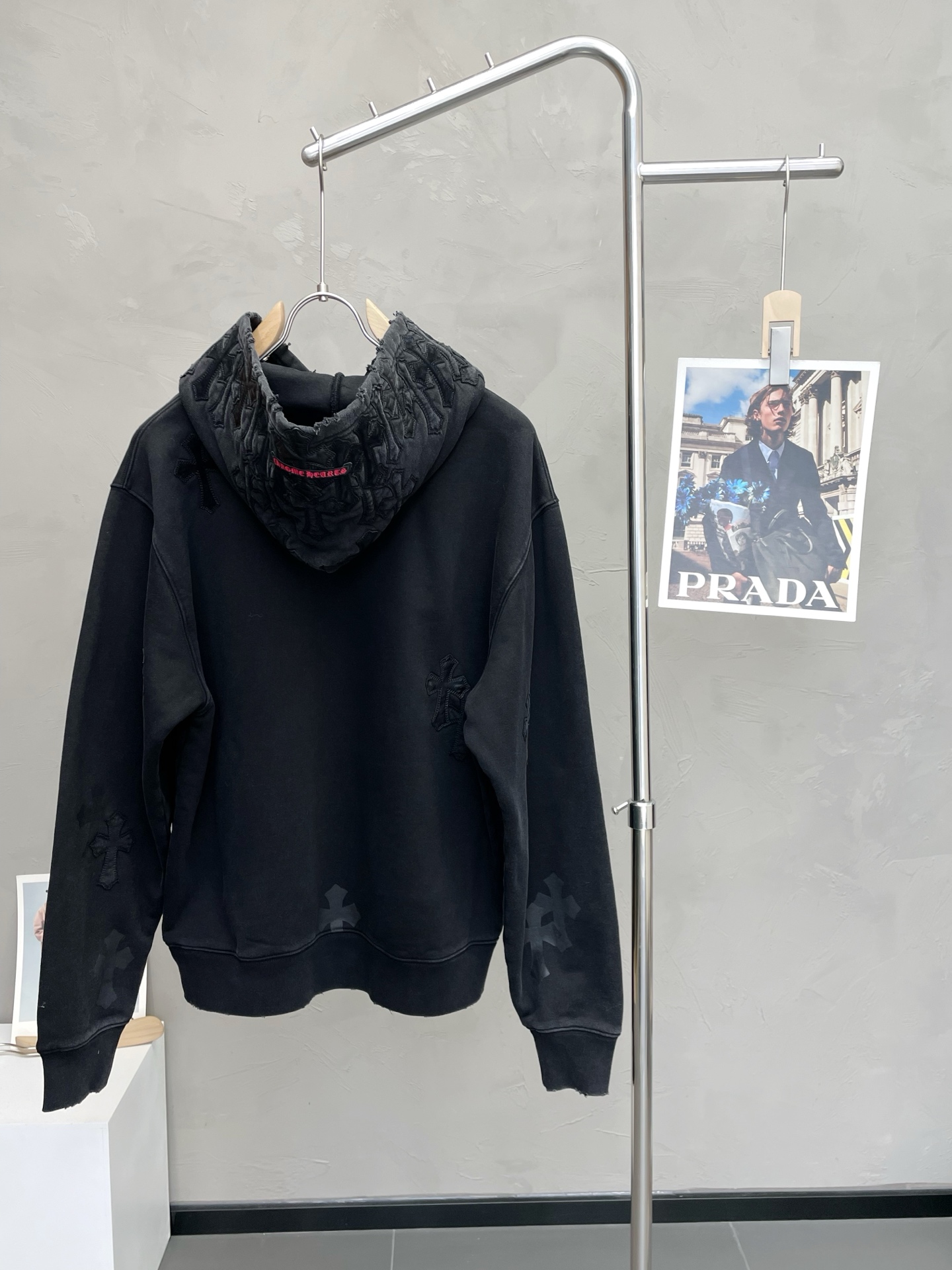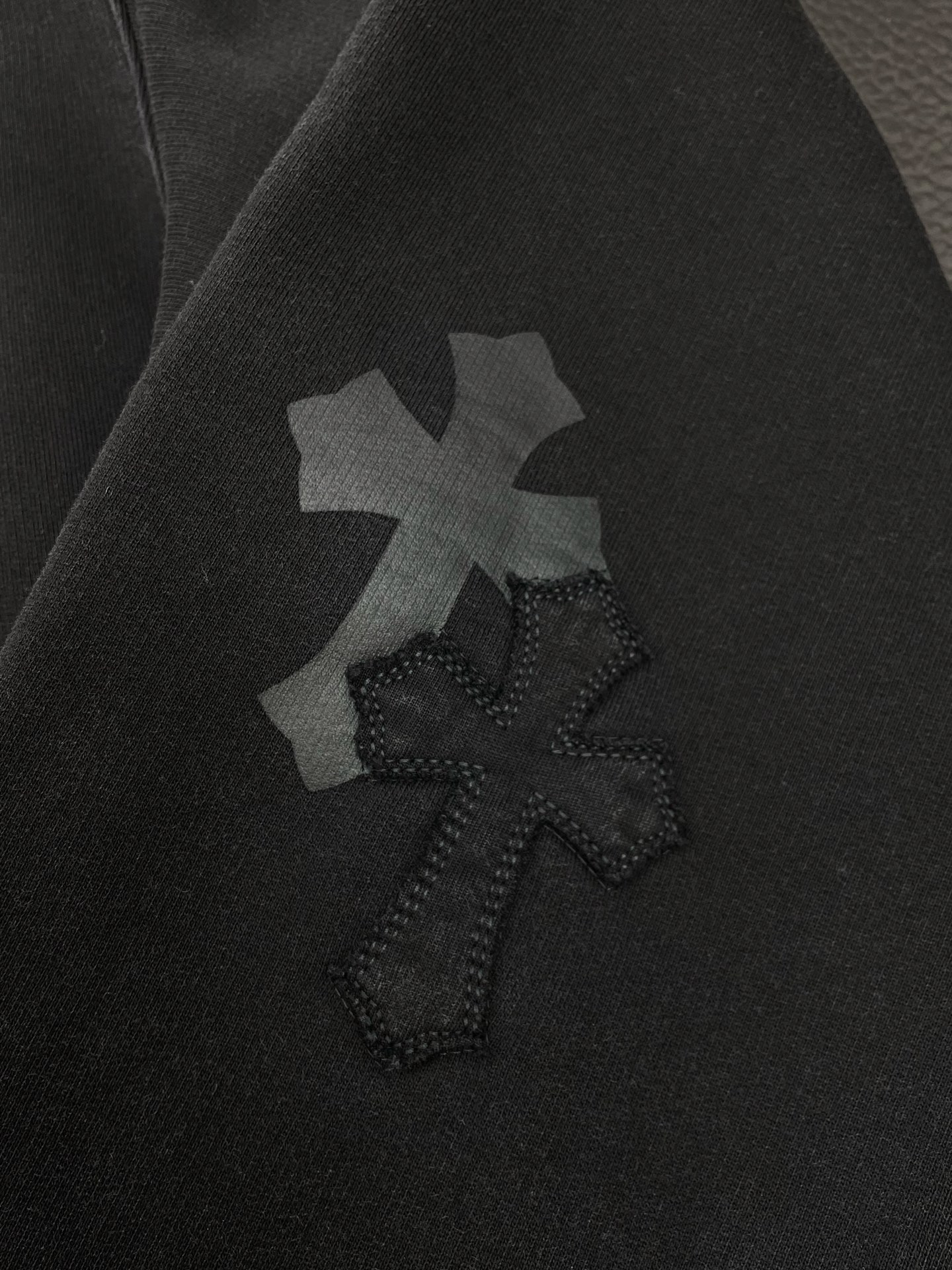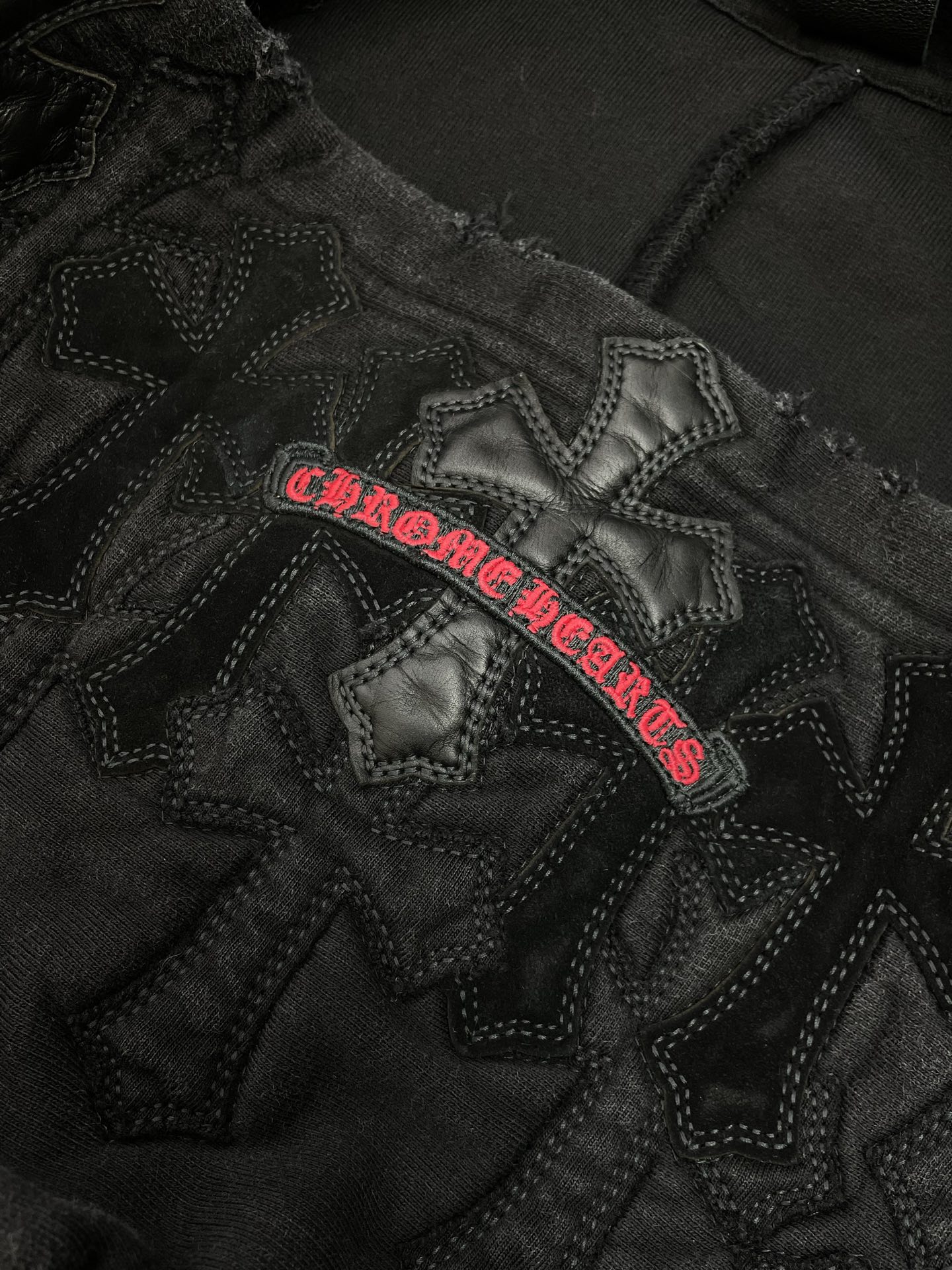 这款衣服是AAAAA 1:1 质量 (非常棒). 使用了和原版一模一样的材料. 商标部分也保持了和克罗心/Chrome Hearts一样. 图片拍摄是实物衣服拍摄, 您所收到的实物保证和我们图片一模一样.