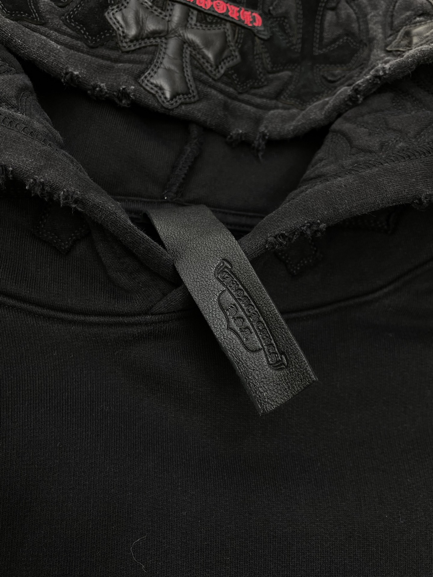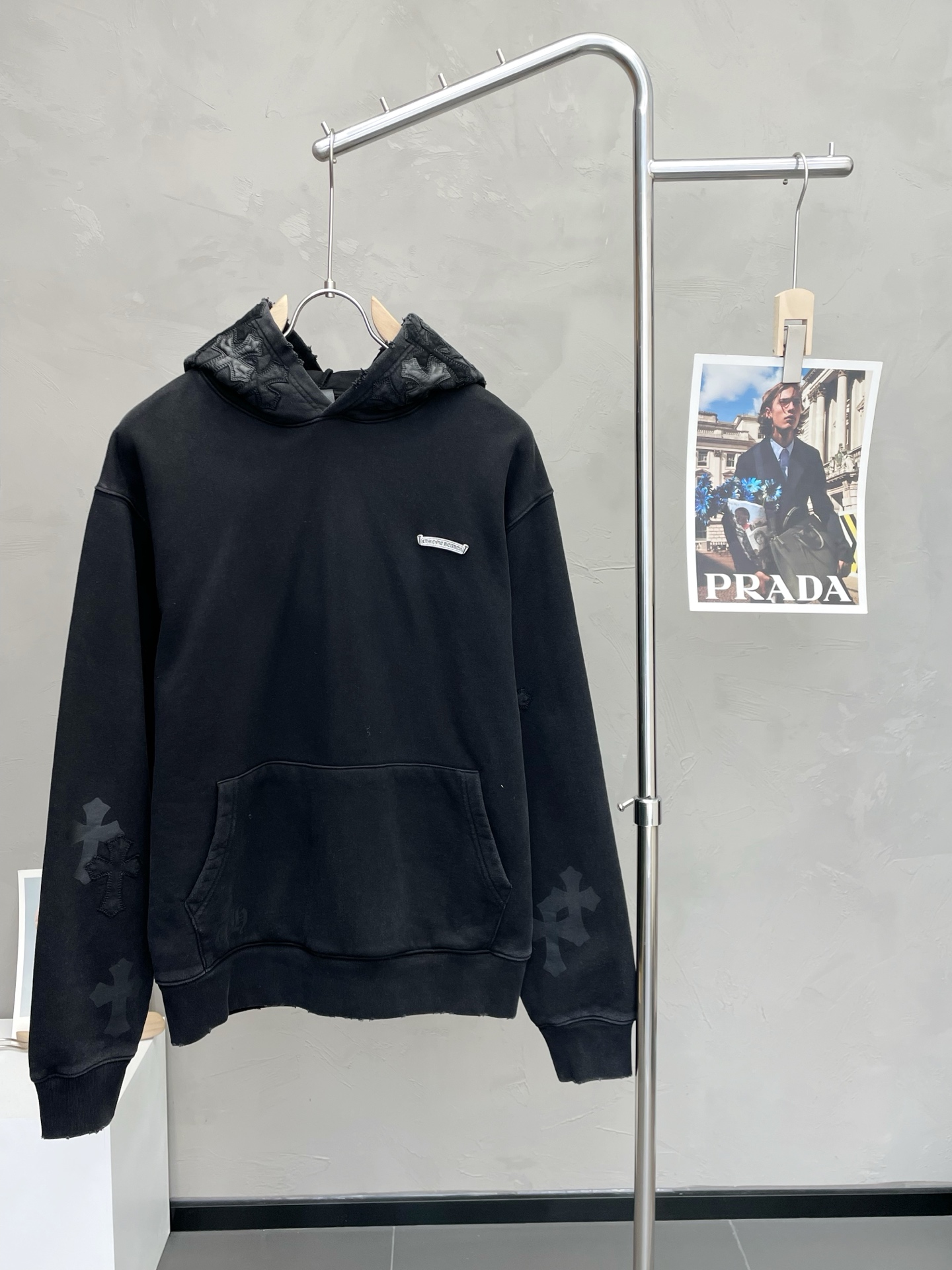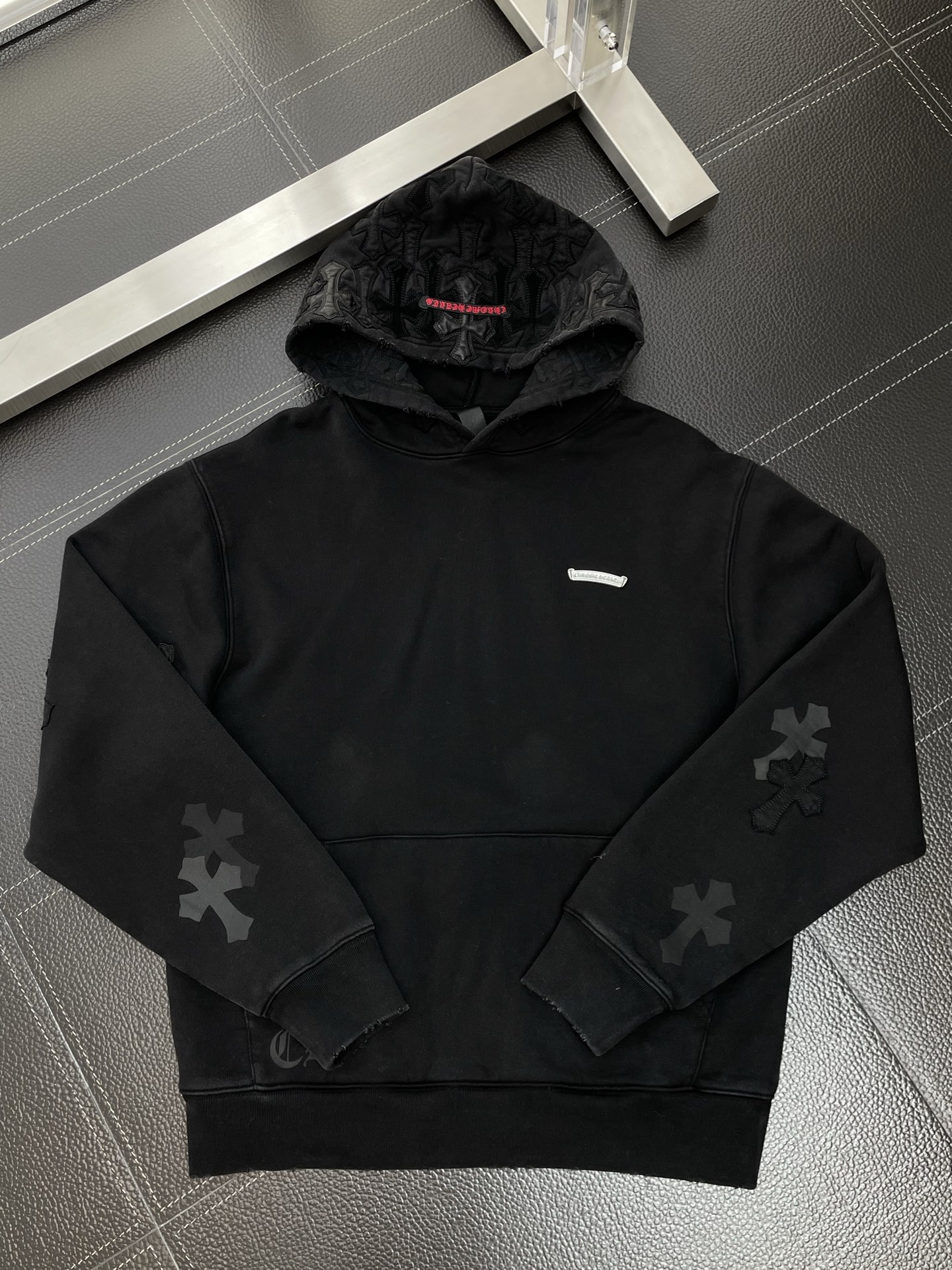 这款衣服是AAAAA 1:1 质量 (非常棒). 使用了和原版一模一样的材料. 商标部分也保持了和克罗心/Chrome Hearts一样. 图片拍摄是实物衣服拍摄, 您所收到的实物保证和我们图片一模一样.