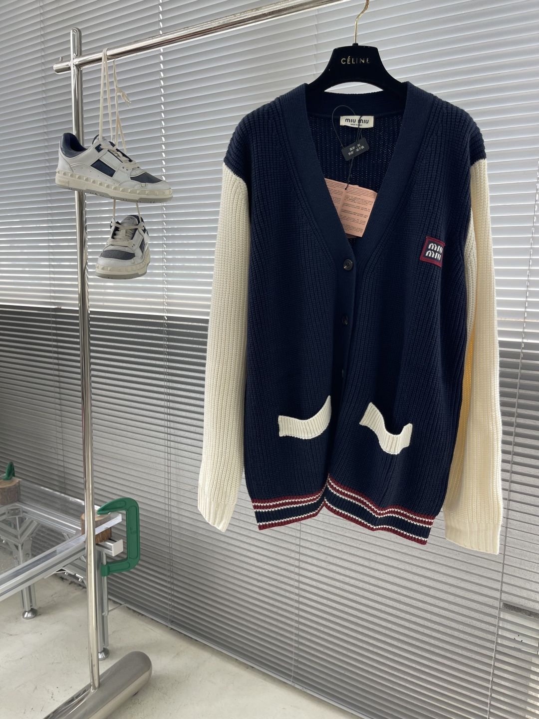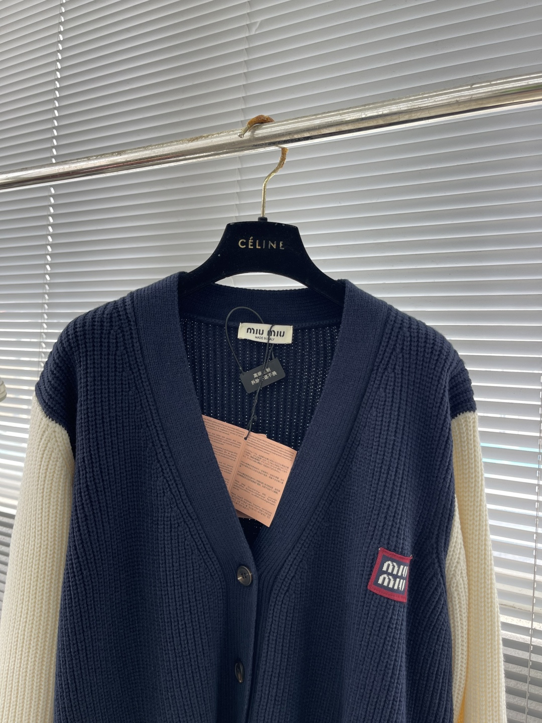 这款衣服是AAAAA 1:1 质量 (非常棒). 使用了和原版一模一样的材料. 商标部分也保持了和缪缪/Miu Miu一样. 图片拍摄是实物衣服拍摄, 您所收到的实物保证和我们图片一模一样.