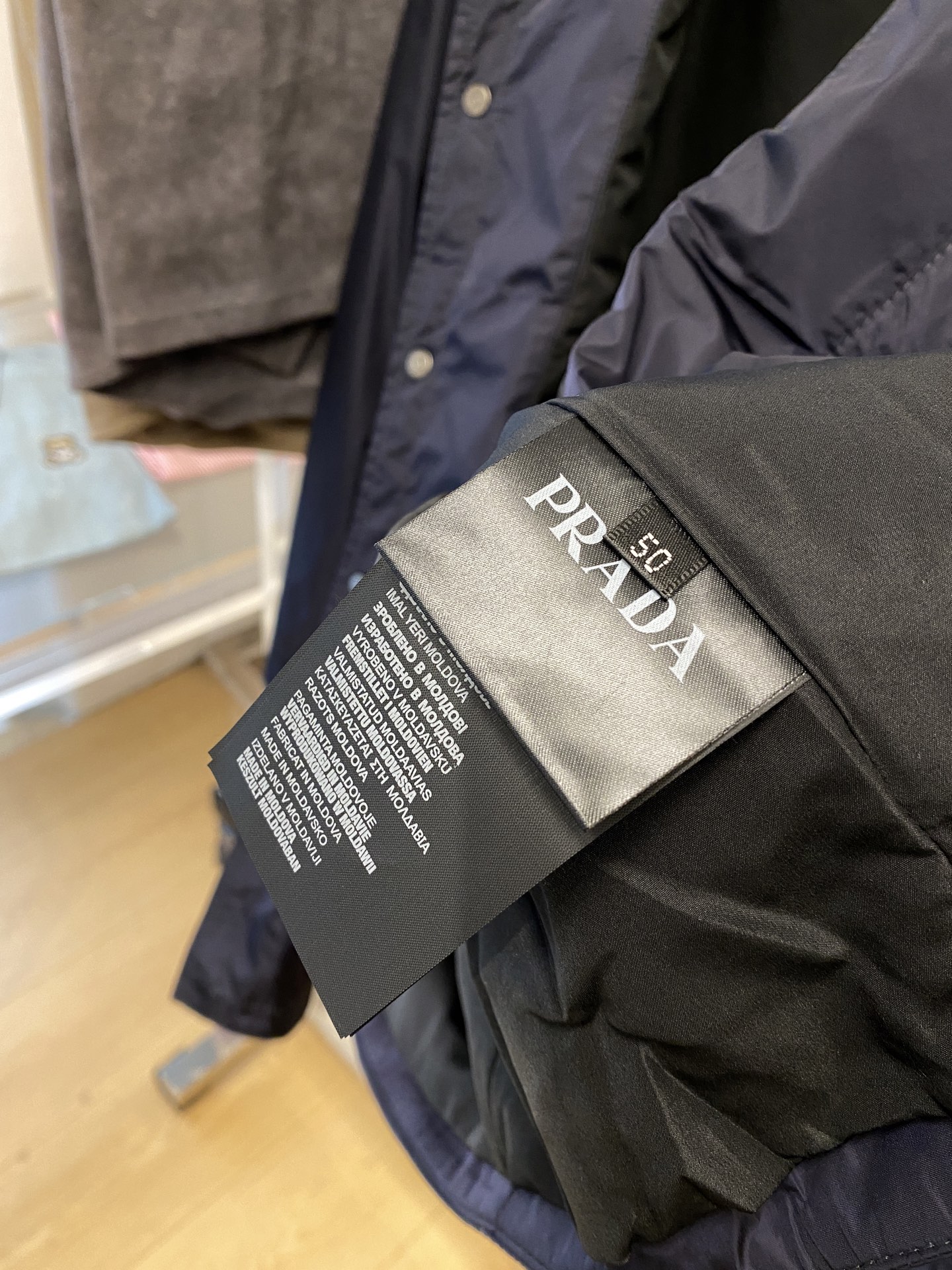 这款衣服是AAAAA 1:1 质量 (非常棒). 使用了和原版一模一样的材料. 商标部分也保持了和普拉达/Prada一样. 图片拍摄是实物衣服拍摄, 您所收到的实物保证和我们图片一模一样.