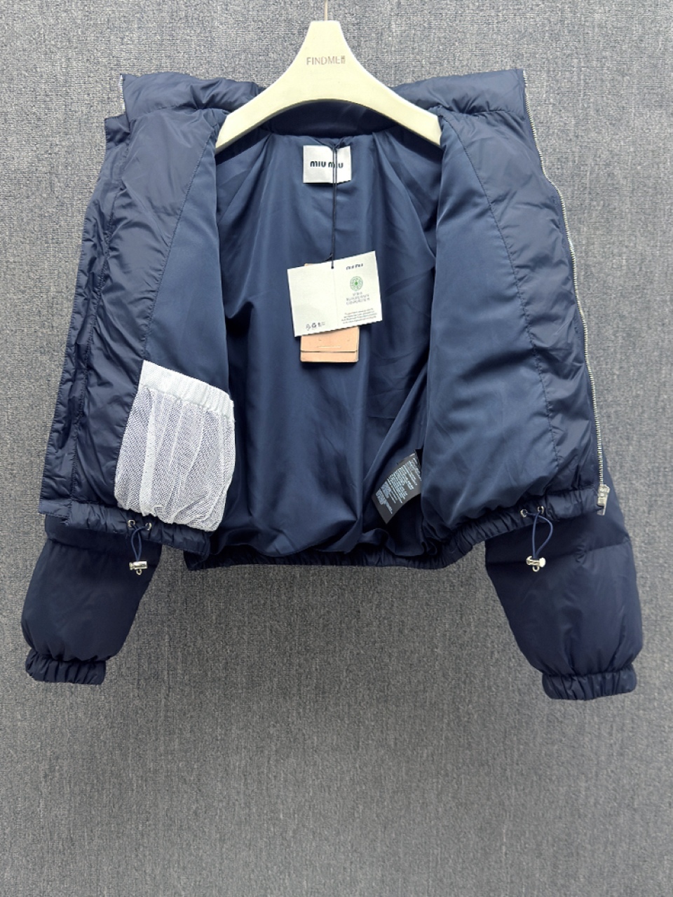 这款衣服是AAAAA 1:1 质量 (非常棒). 使用了和原版一模一样的材料. 商标部分也保持了和缪缪/Miu Miu一样. 图片拍摄是实物衣服拍摄, 您所收到的实物保证和我们图片一模一样.
