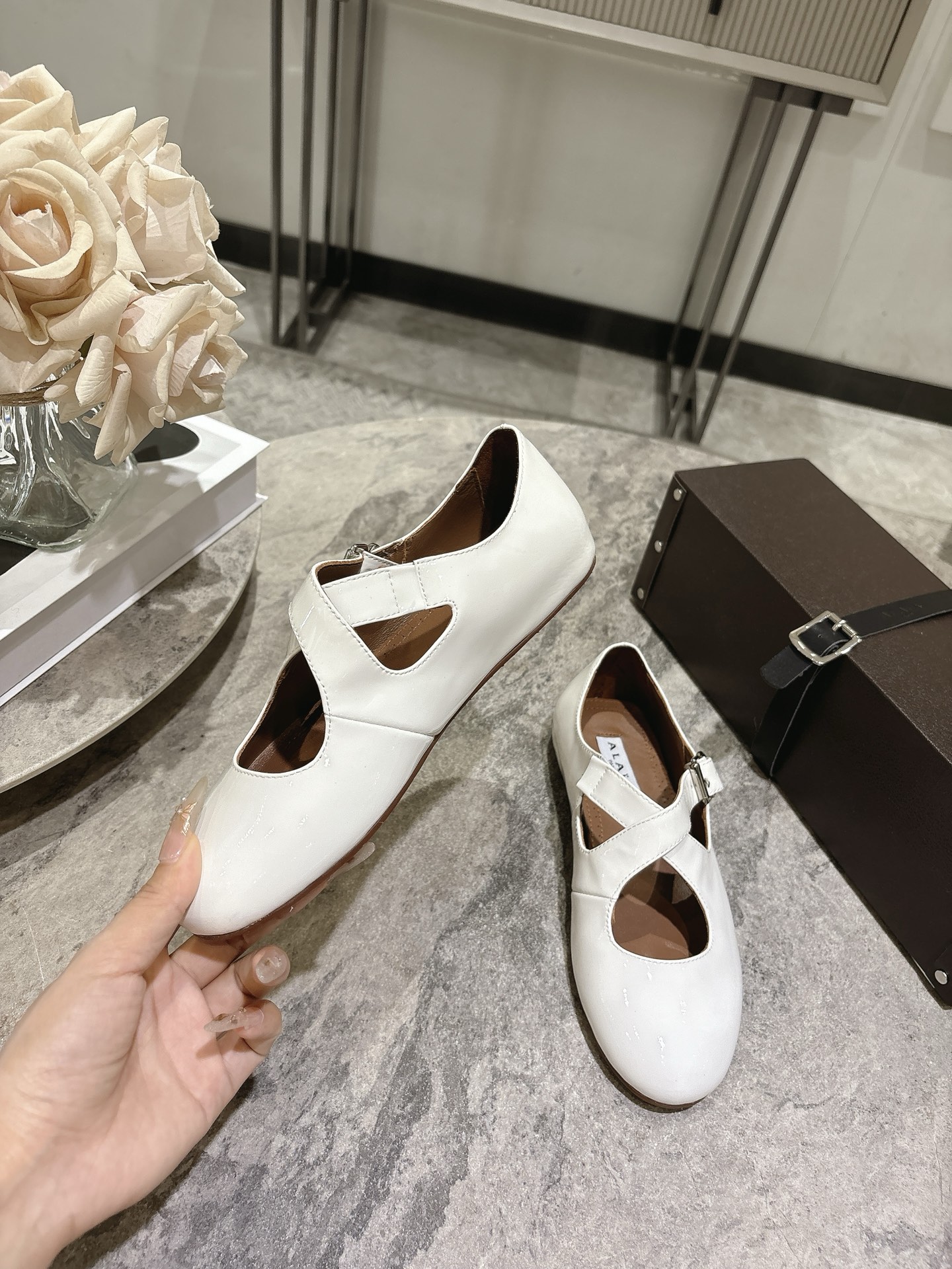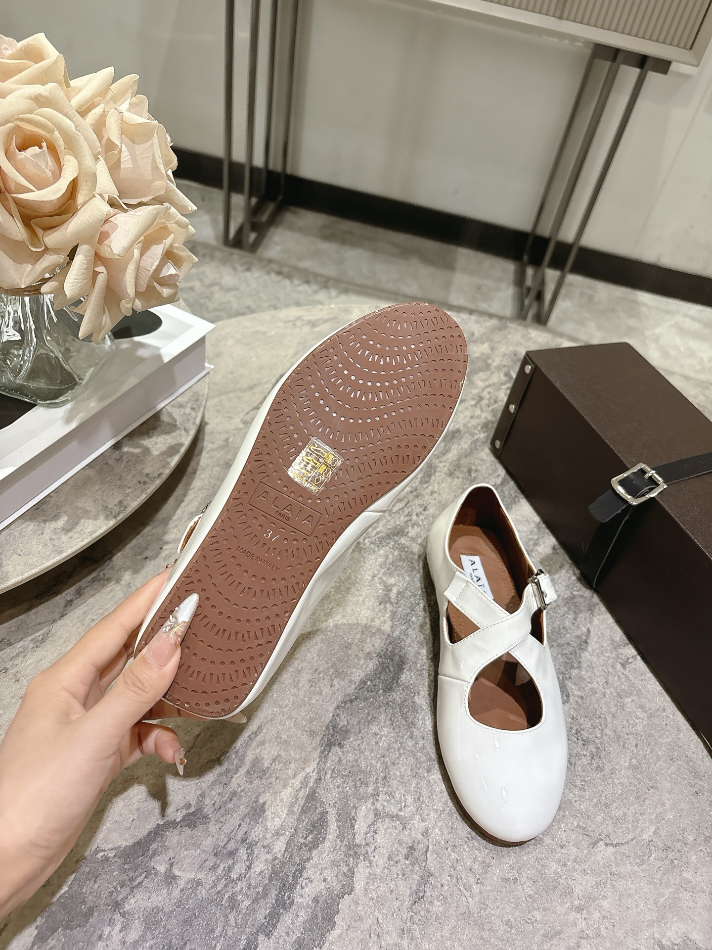 这款鞋子是AAAAA 1:1 质量 (非常棒). 使用了和原版一模一样的材料. 商标部分也保持了和Alaia一样. 图片拍摄是实物鞋子拍摄, 您所收到的实物保证和我们图片一模一样.
