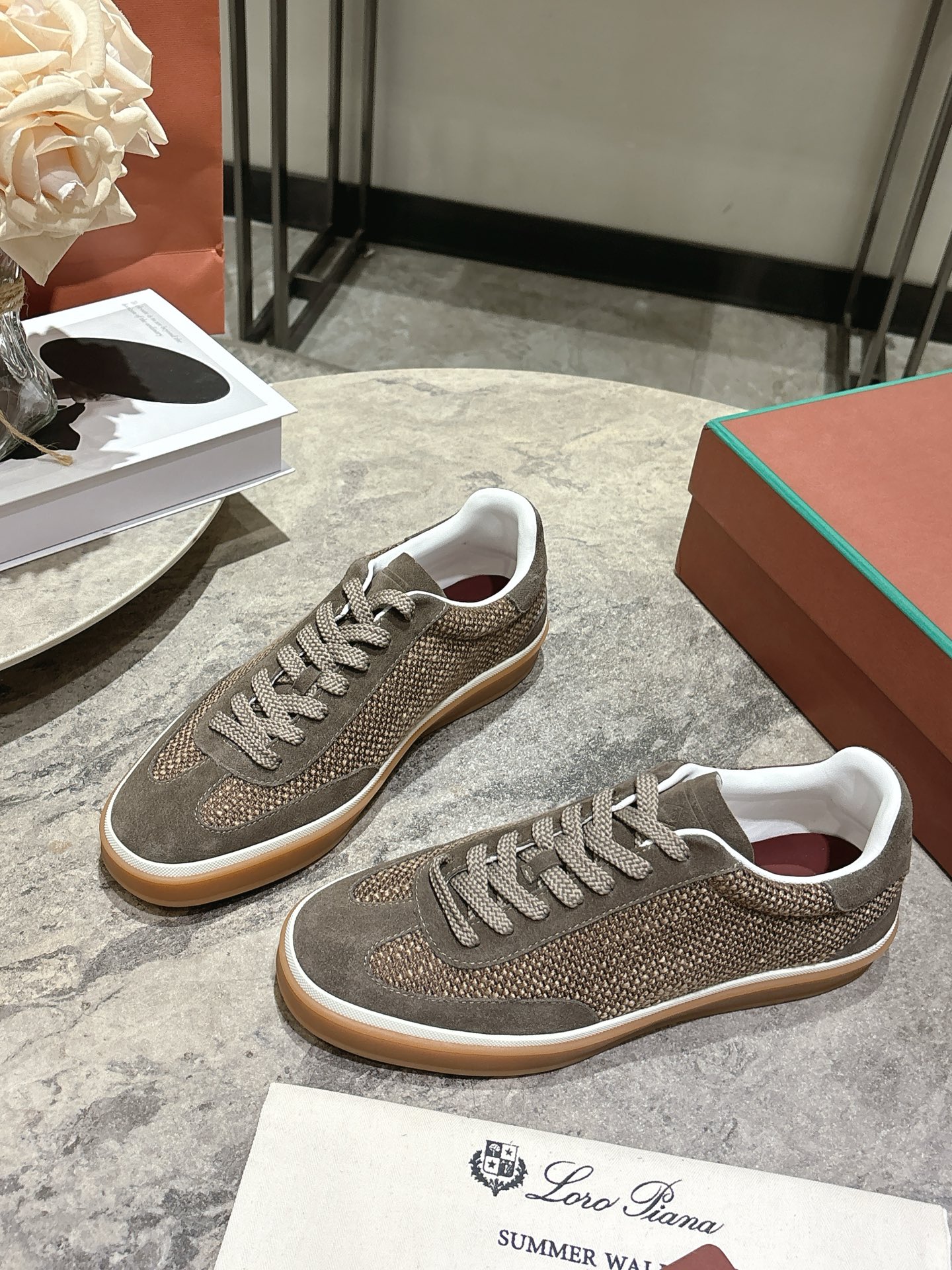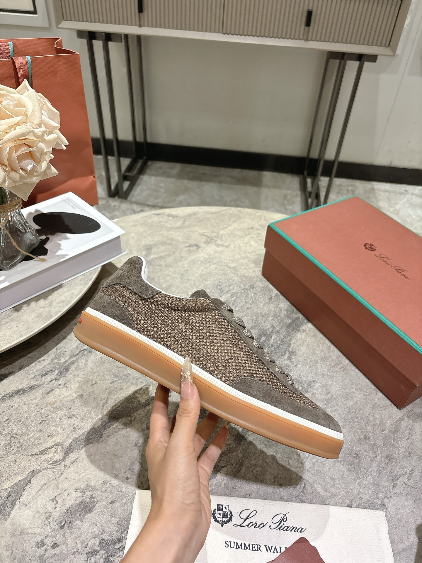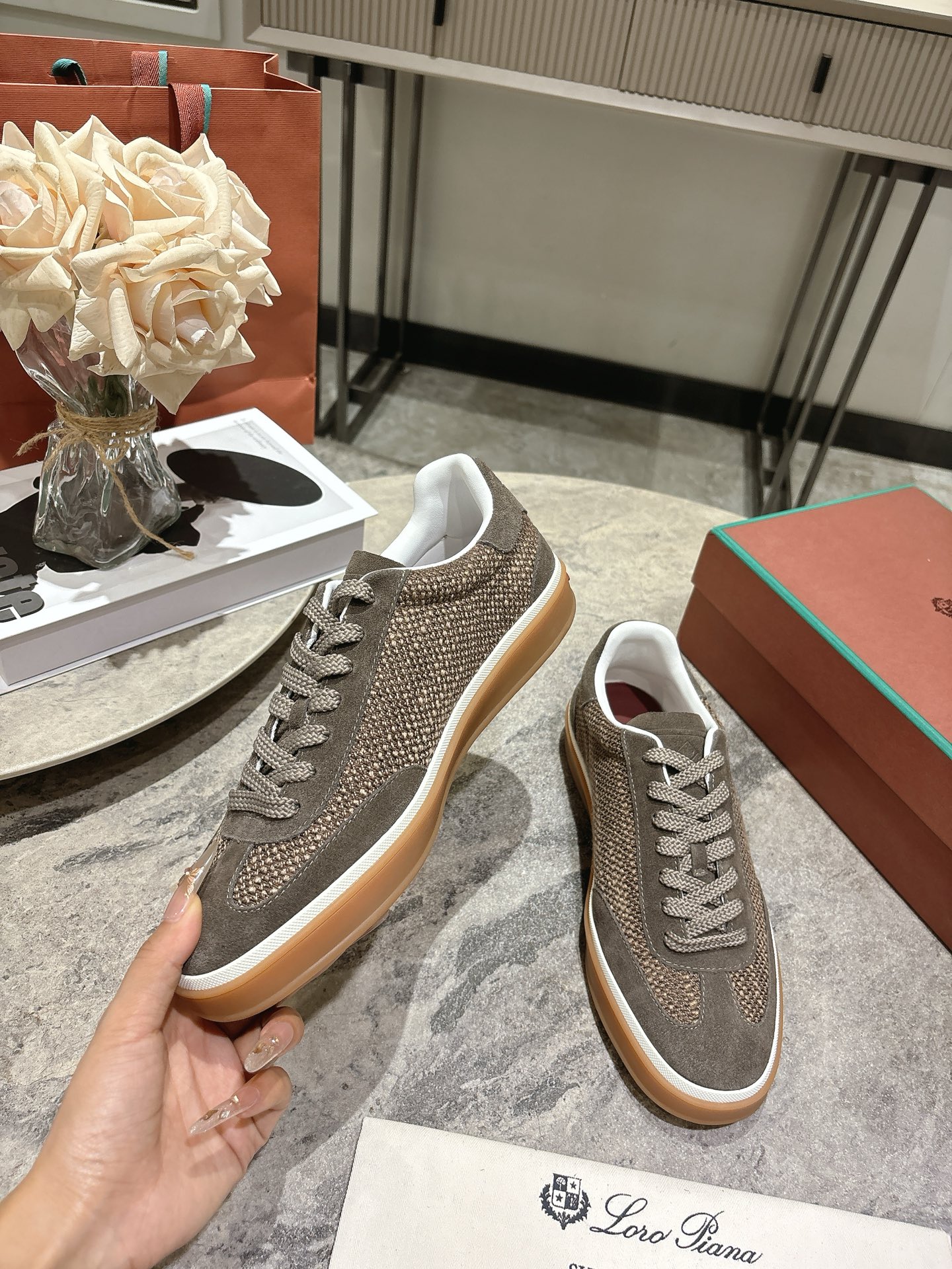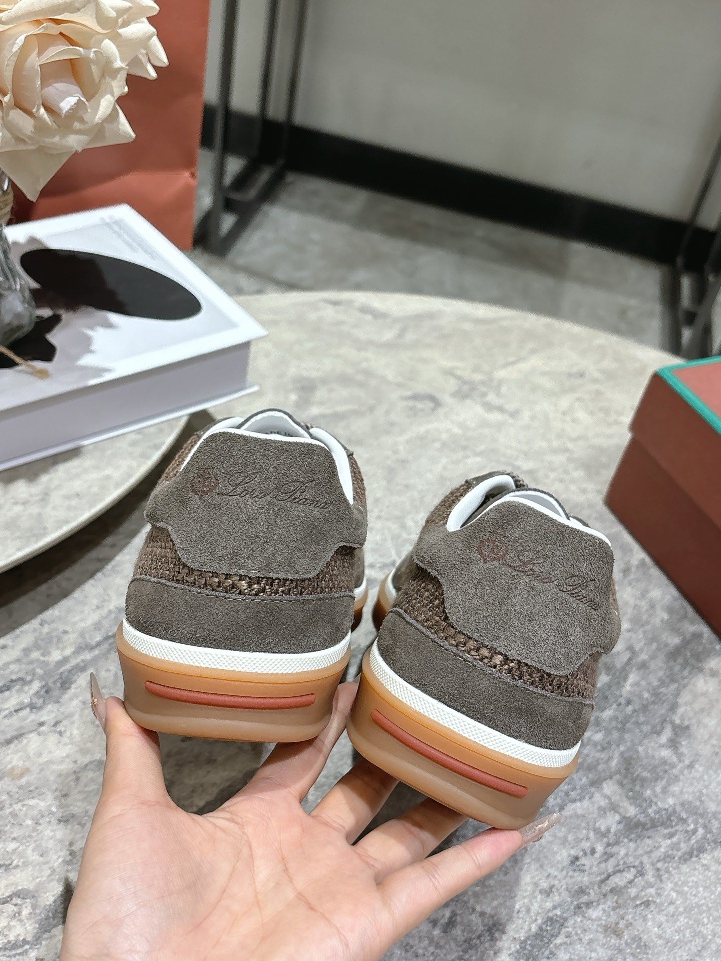 这款鞋子是AAAAA 1:1 质量 (非常棒). 使用了和原版一模一样的材料. 商标部分也保持了和洛罗皮亚纳/Loro Piana一样. 图片拍摄是实物鞋子拍摄, 您所收到的实物保证和我们图片一模一样.