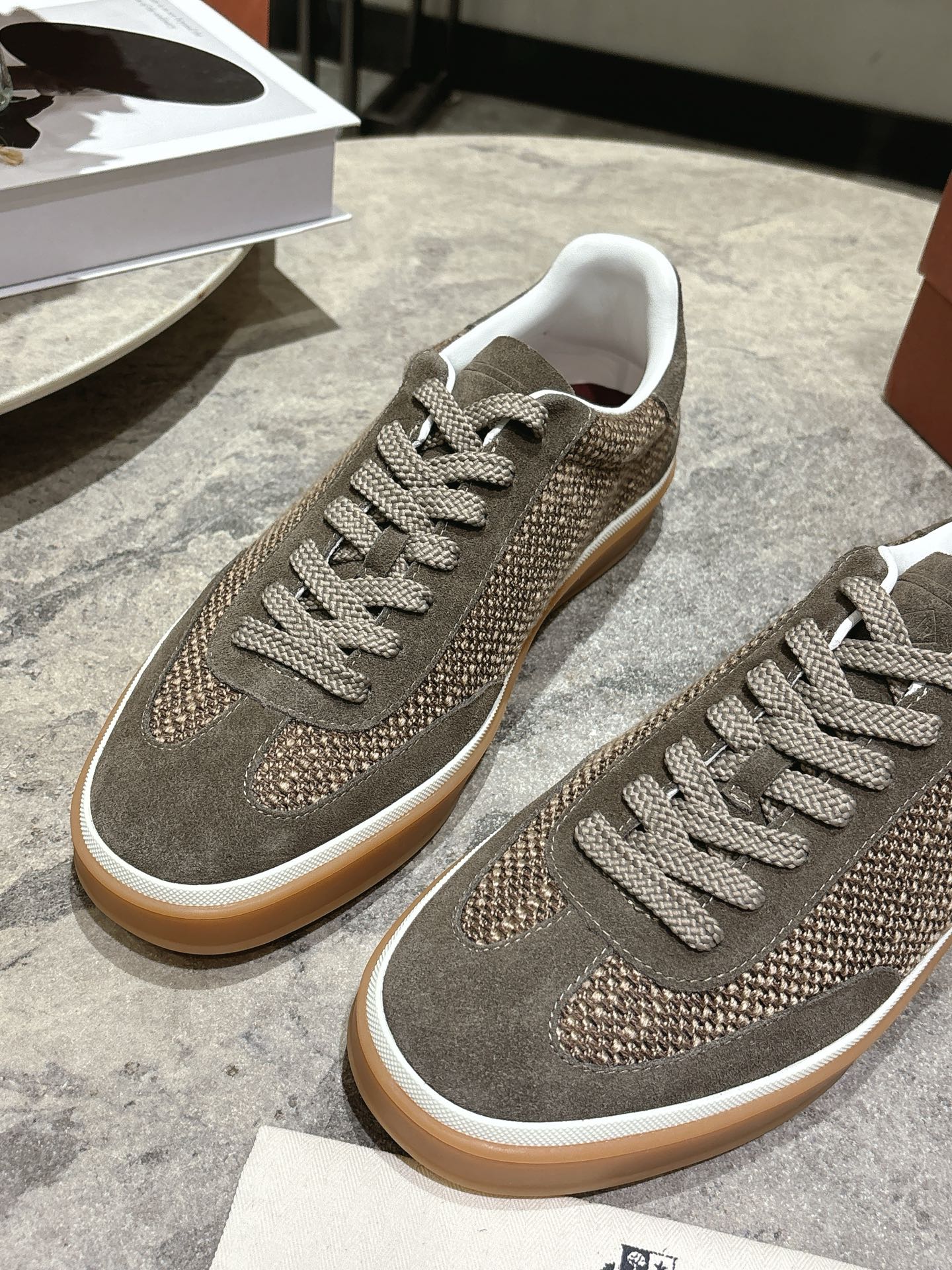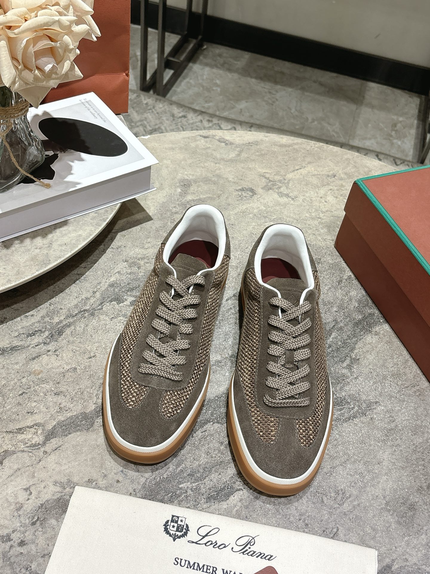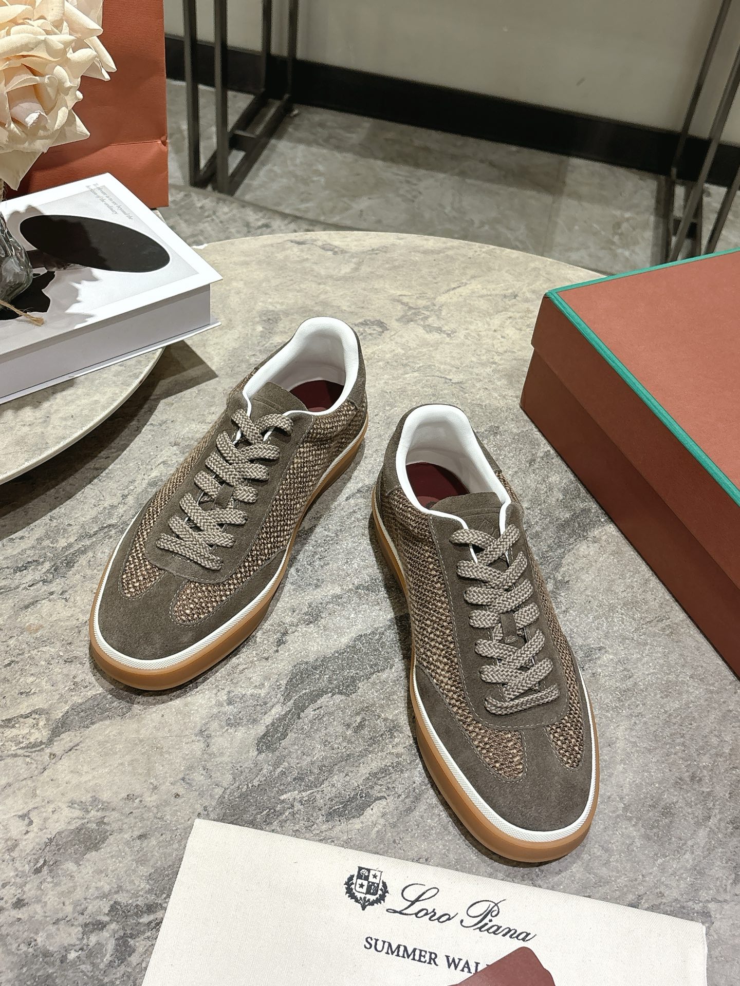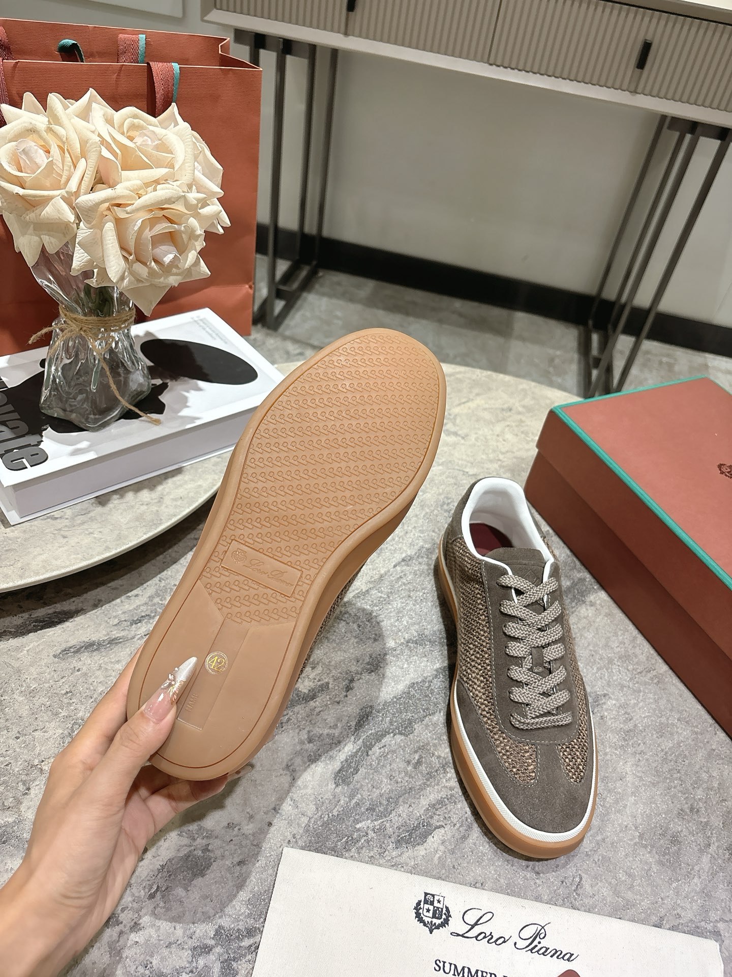 这款鞋子是AAAAA 1:1 质量 (非常棒). 使用了和原版一模一样的材料. 商标部分也保持了和洛罗皮亚纳/Loro Piana一样. 图片拍摄是实物鞋子拍摄, 您所收到的实物保证和我们图片一模一样.
