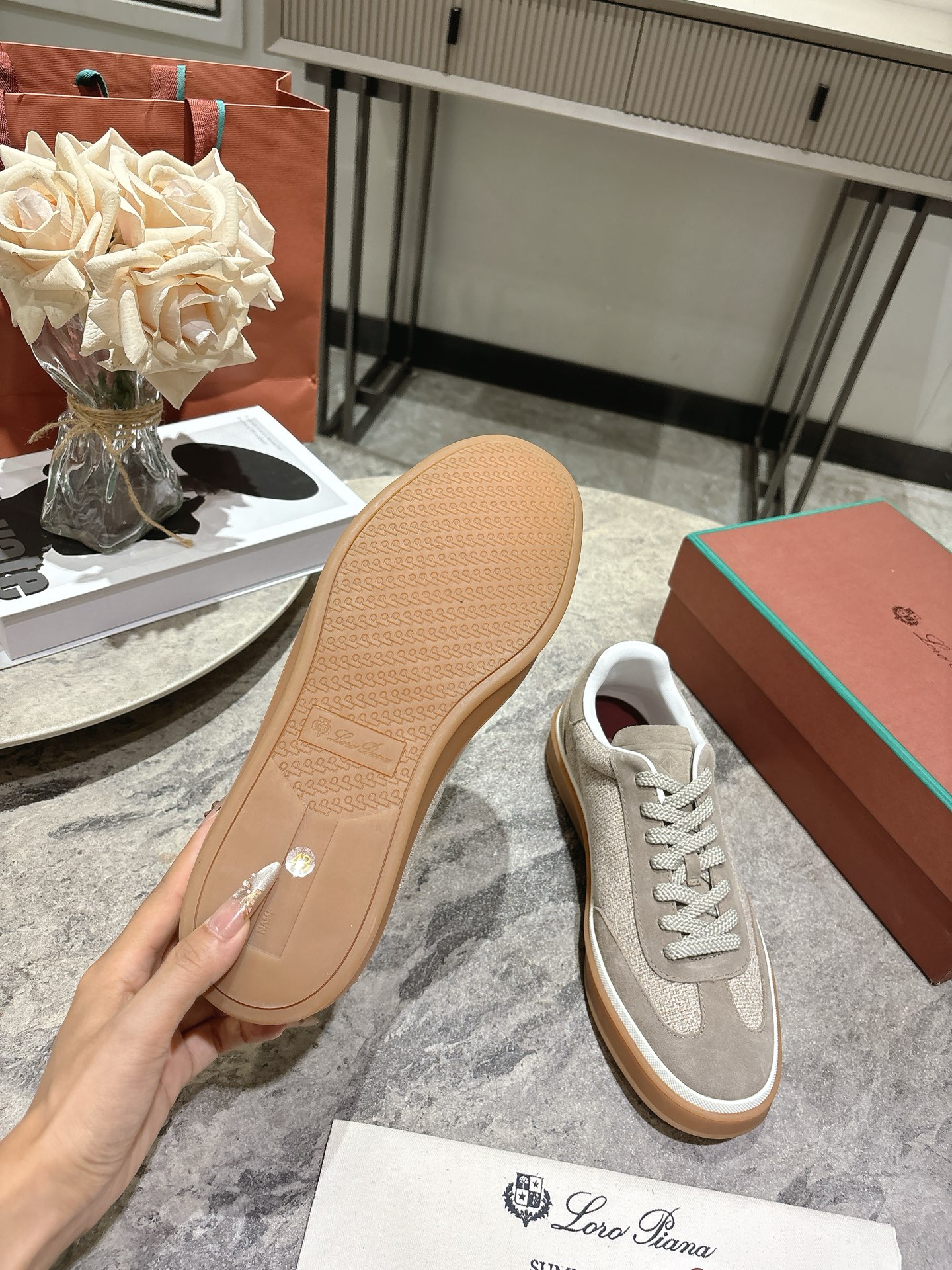 这款鞋子是AAAAA 1:1 质量 (非常棒). 使用了和原版一模一样的材料. 商标部分也保持了和洛罗皮亚纳/Loro Piana一样. 图片拍摄是实物鞋子拍摄, 您所收到的实物保证和我们图片一模一样.