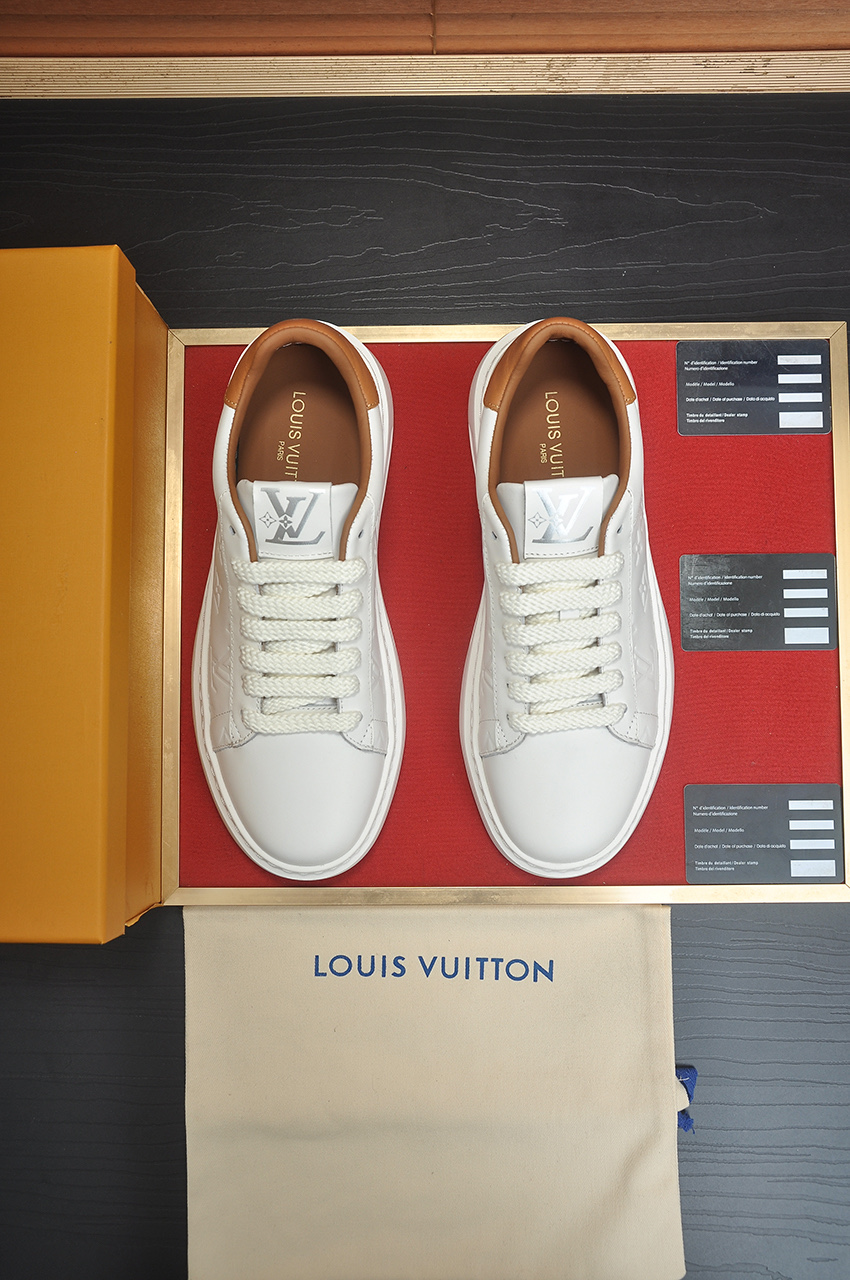 这款鞋子是AAAAA 1:1 质量 (非常棒). 使用了和原版一模一样的材料. 商标部分也保持了和路易威登/Louis Vuitton一样. 图片拍摄是实物鞋子拍摄, 您所收到的实物保证和我们图片一模一样.