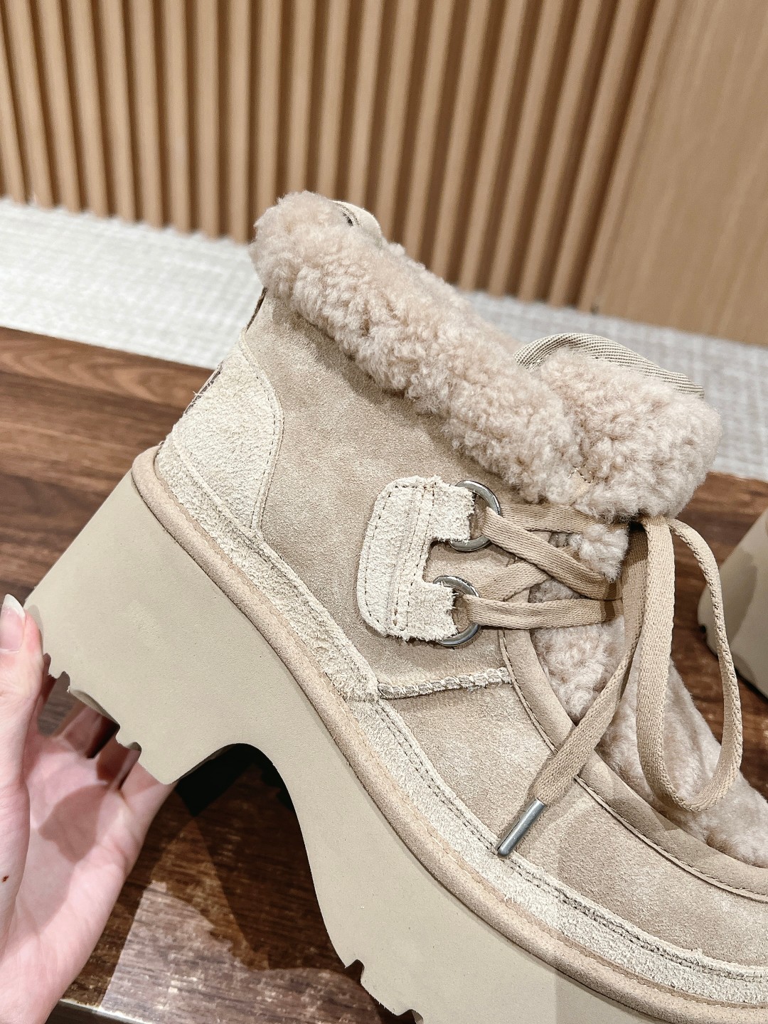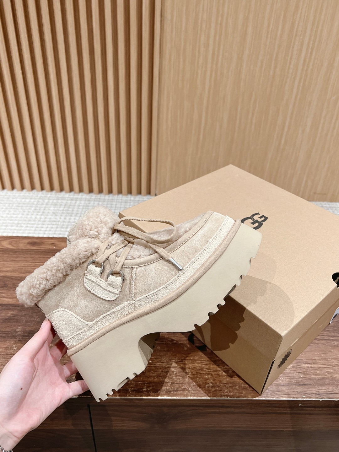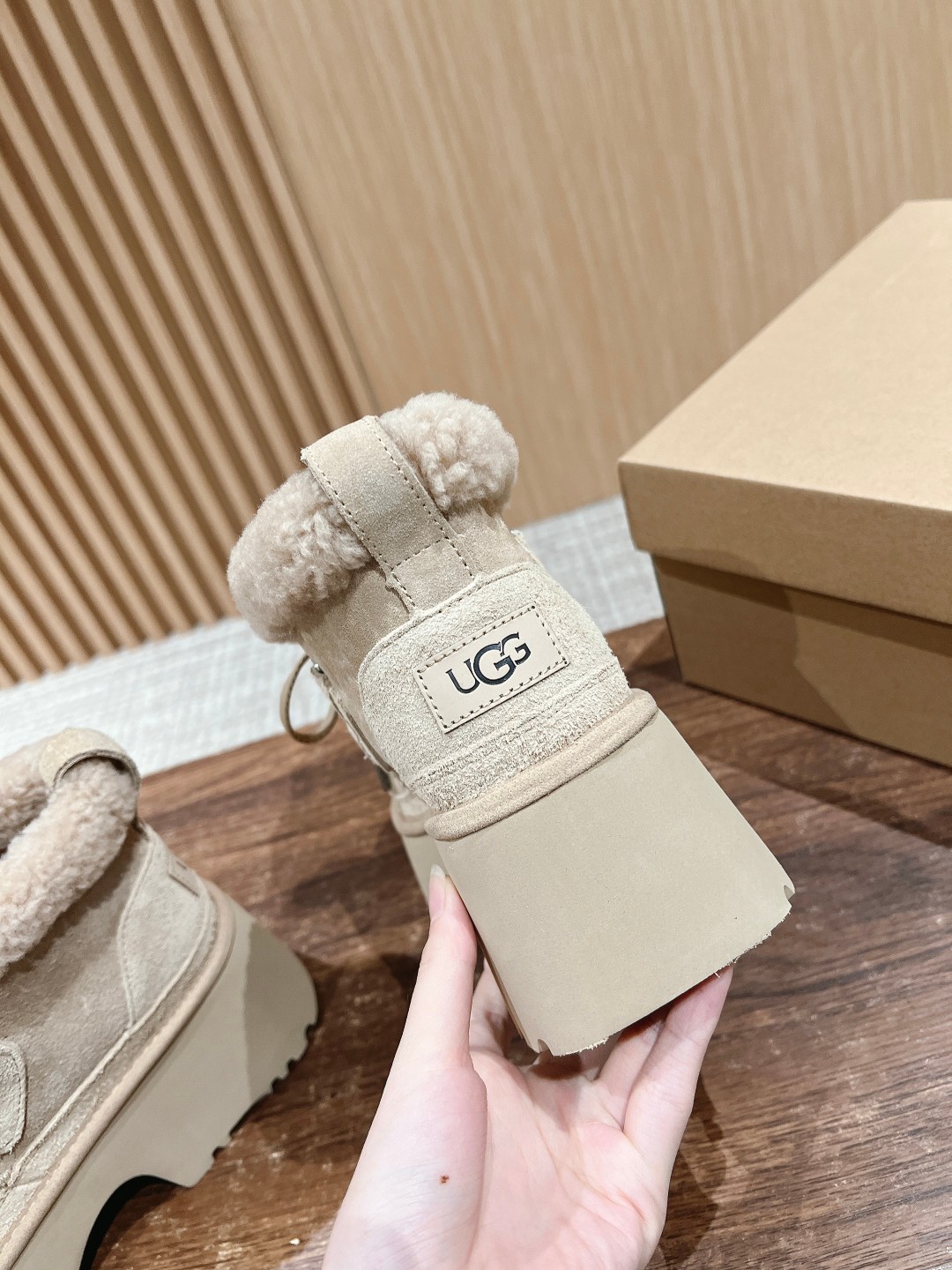这款鞋子是AAAAA 1:1 质量 (非常棒). 使用了和原版一模一样的材料. 商标部分也保持了和UGG雪地靴一样. 图片拍摄是实物鞋子拍摄, 您所收到的实物保证和我们图片一模一样.