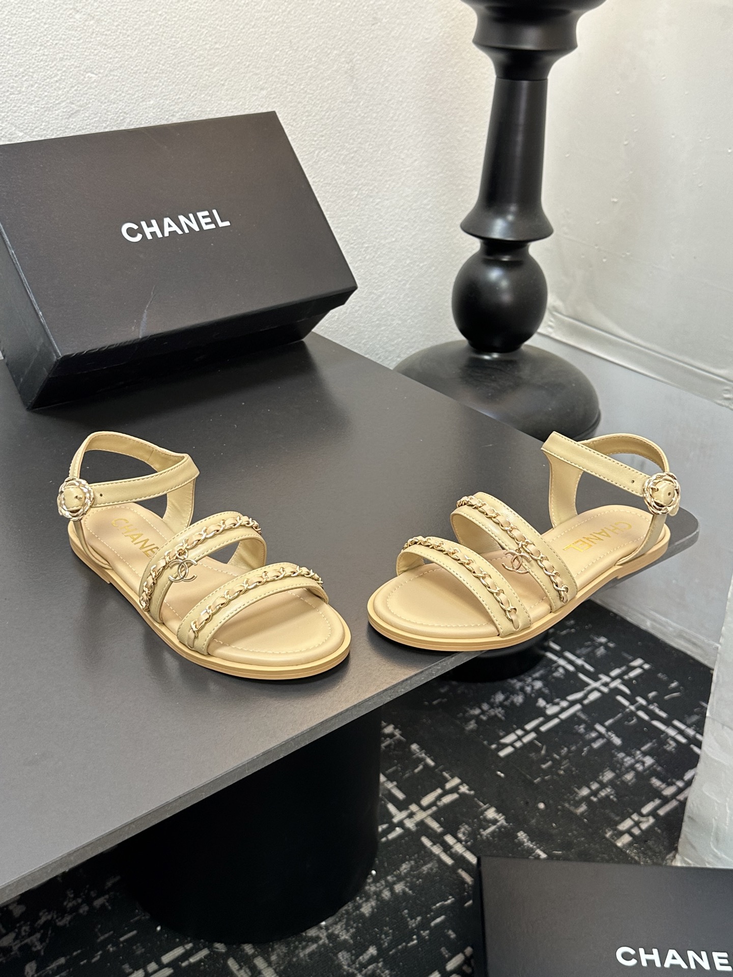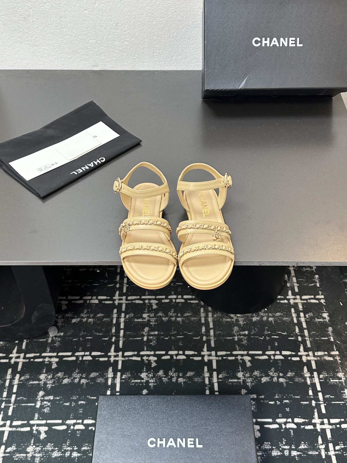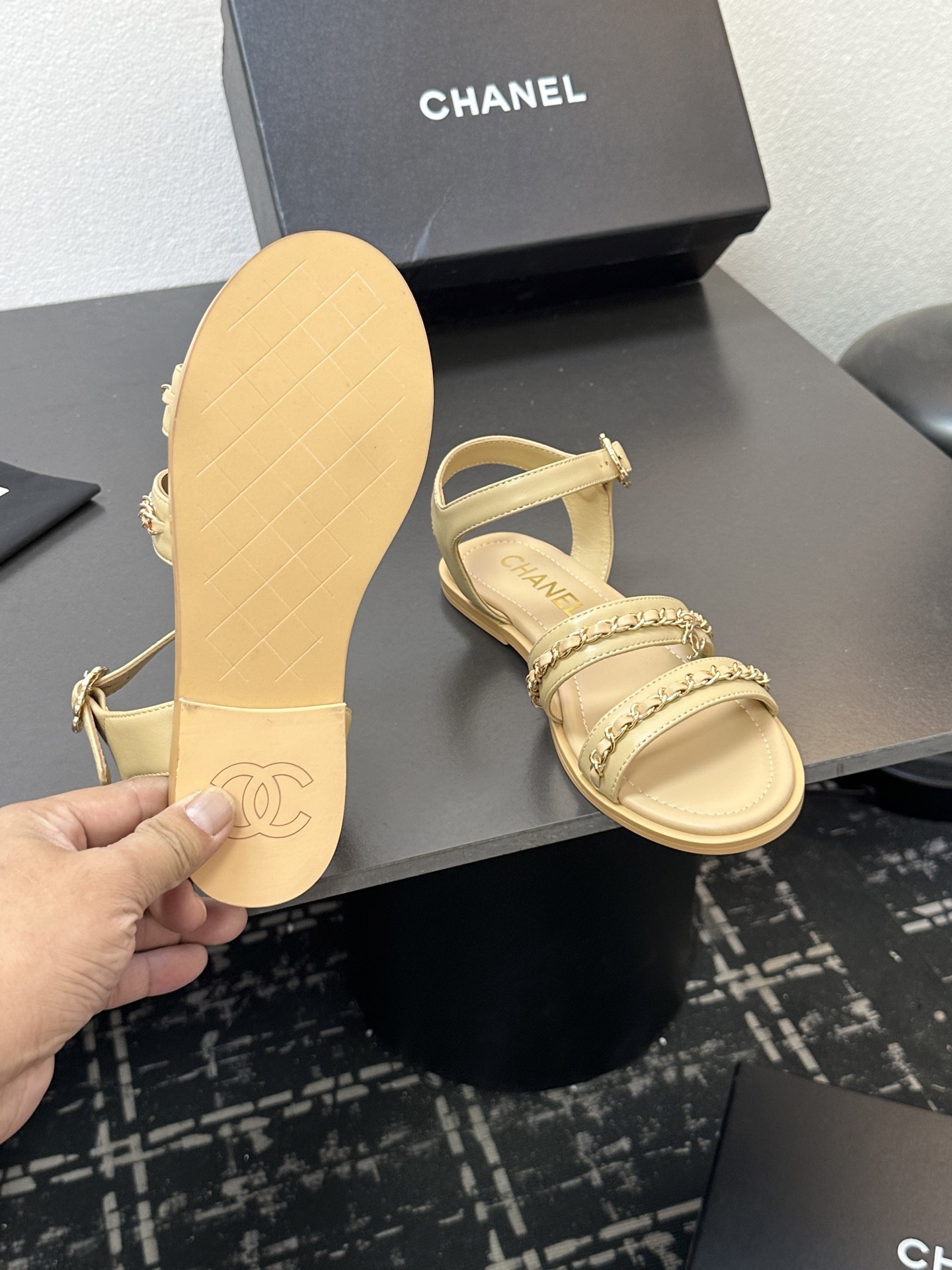 这款鞋子是AAAAA 1:1 质量 (非常棒). 使用了和原版一模一样的材料. 商标部分也保持了和香奈儿/Chanel一样. 图片拍摄是实物鞋子拍摄, 您所收到的实物保证和我们图片一模一样.