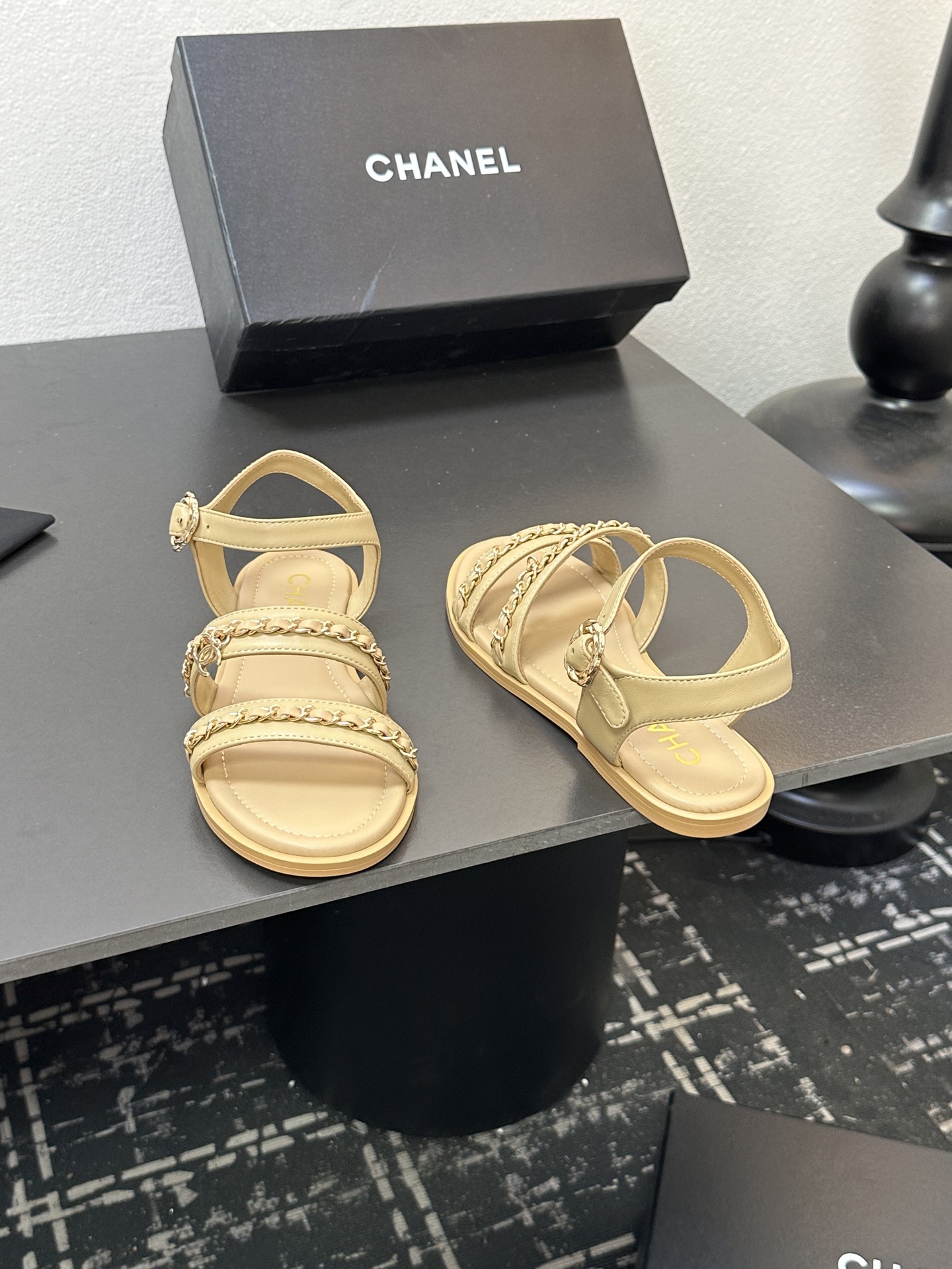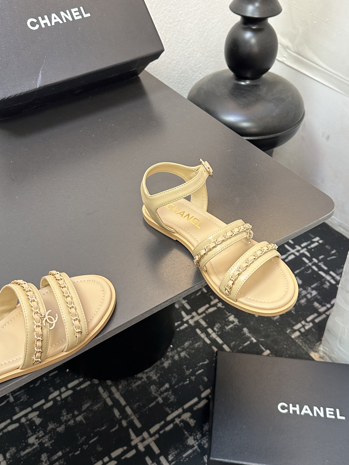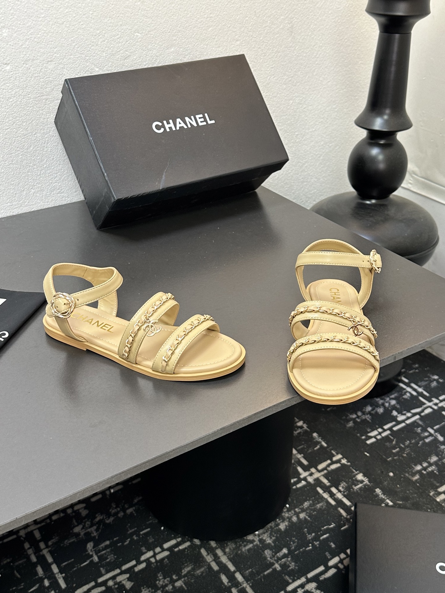 这款鞋子是AAAAA 1:1 质量 (非常棒). 使用了和原版一模一样的材料. 商标部分也保持了和香奈儿/Chanel一样. 图片拍摄是实物鞋子拍摄, 您所收到的实物保证和我们图片一模一样.