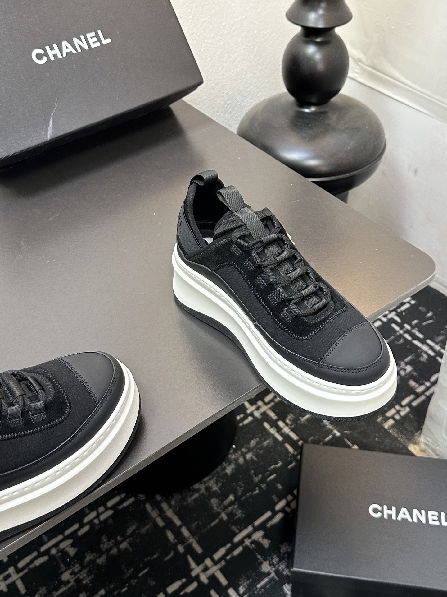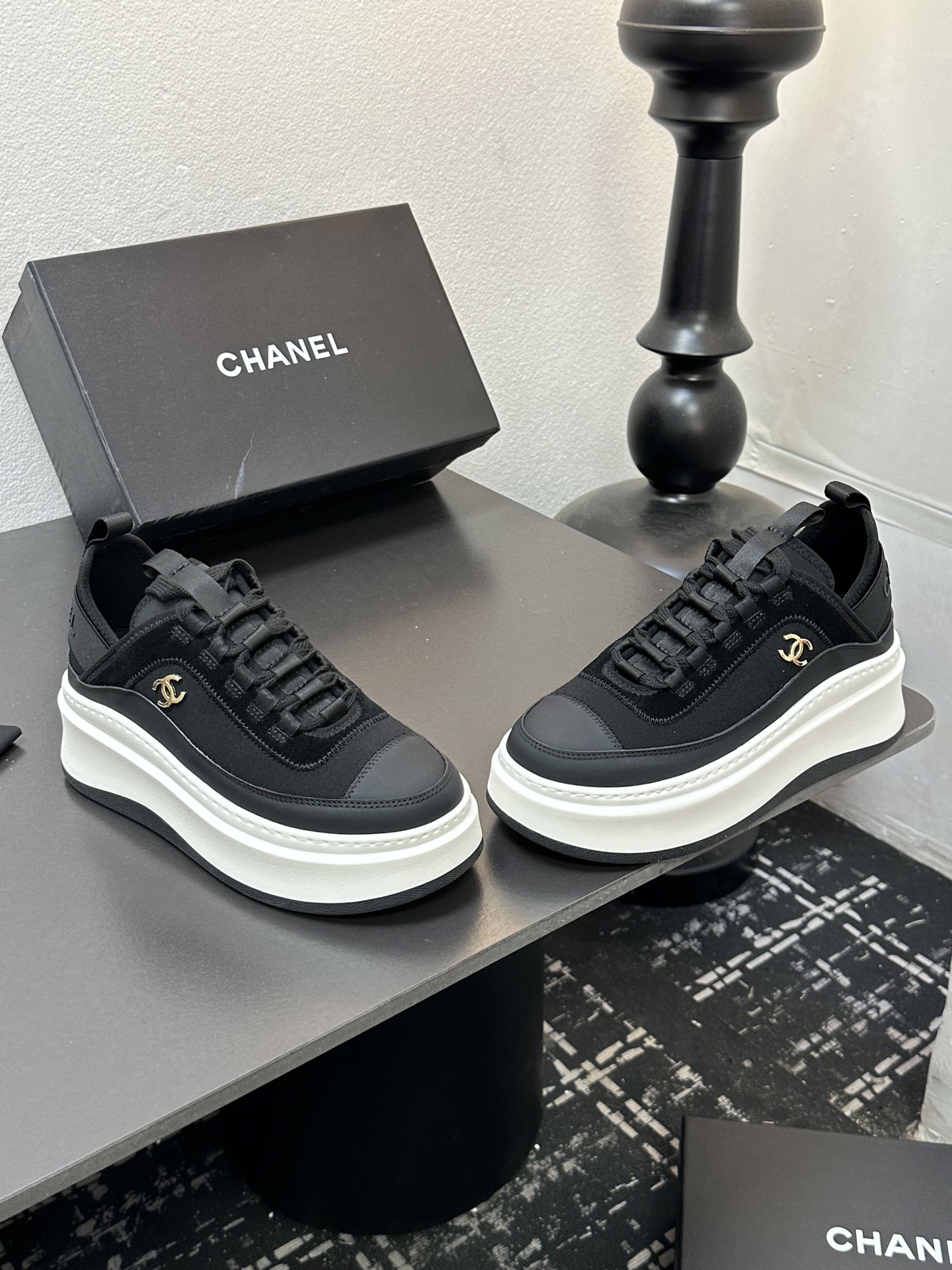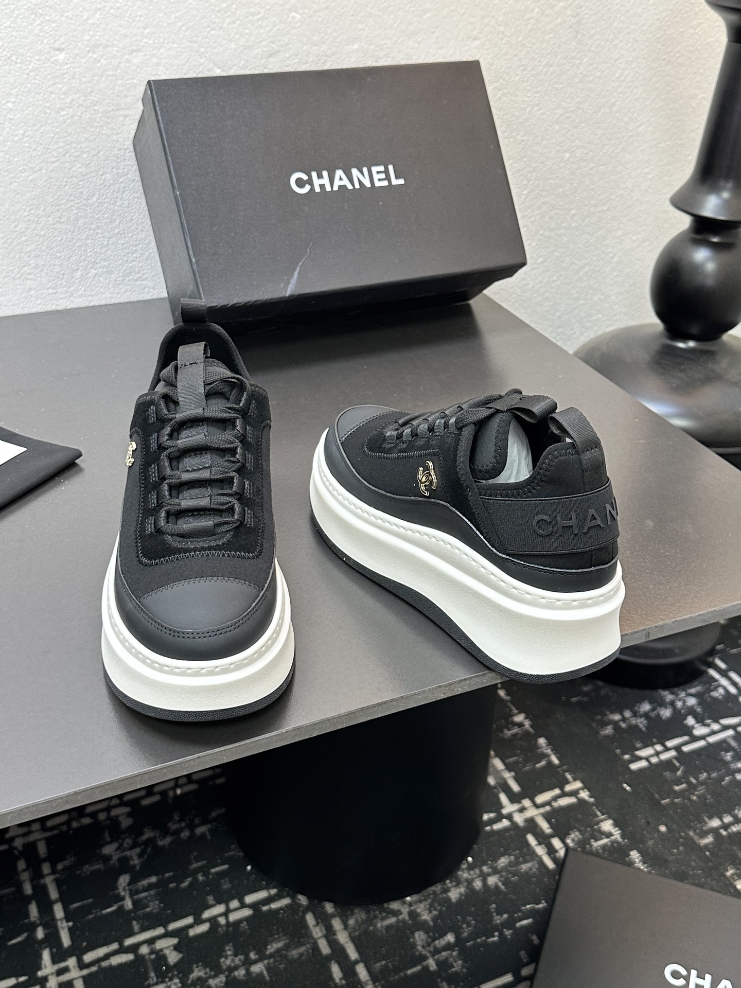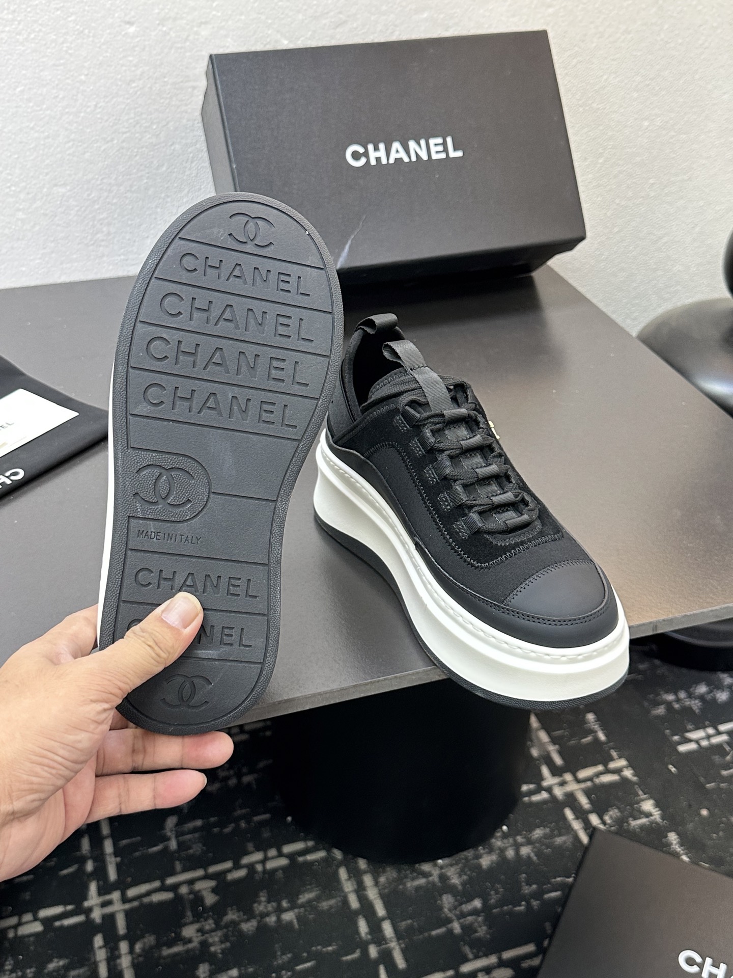 这款鞋子是AAAAA 1:1 质量 (非常棒). 使用了和原版一模一样的材料. 商标部分也保持了和香奈儿/Chanel一样. 图片拍摄是实物鞋子拍摄, 您所收到的实物保证和我们图片一模一样.