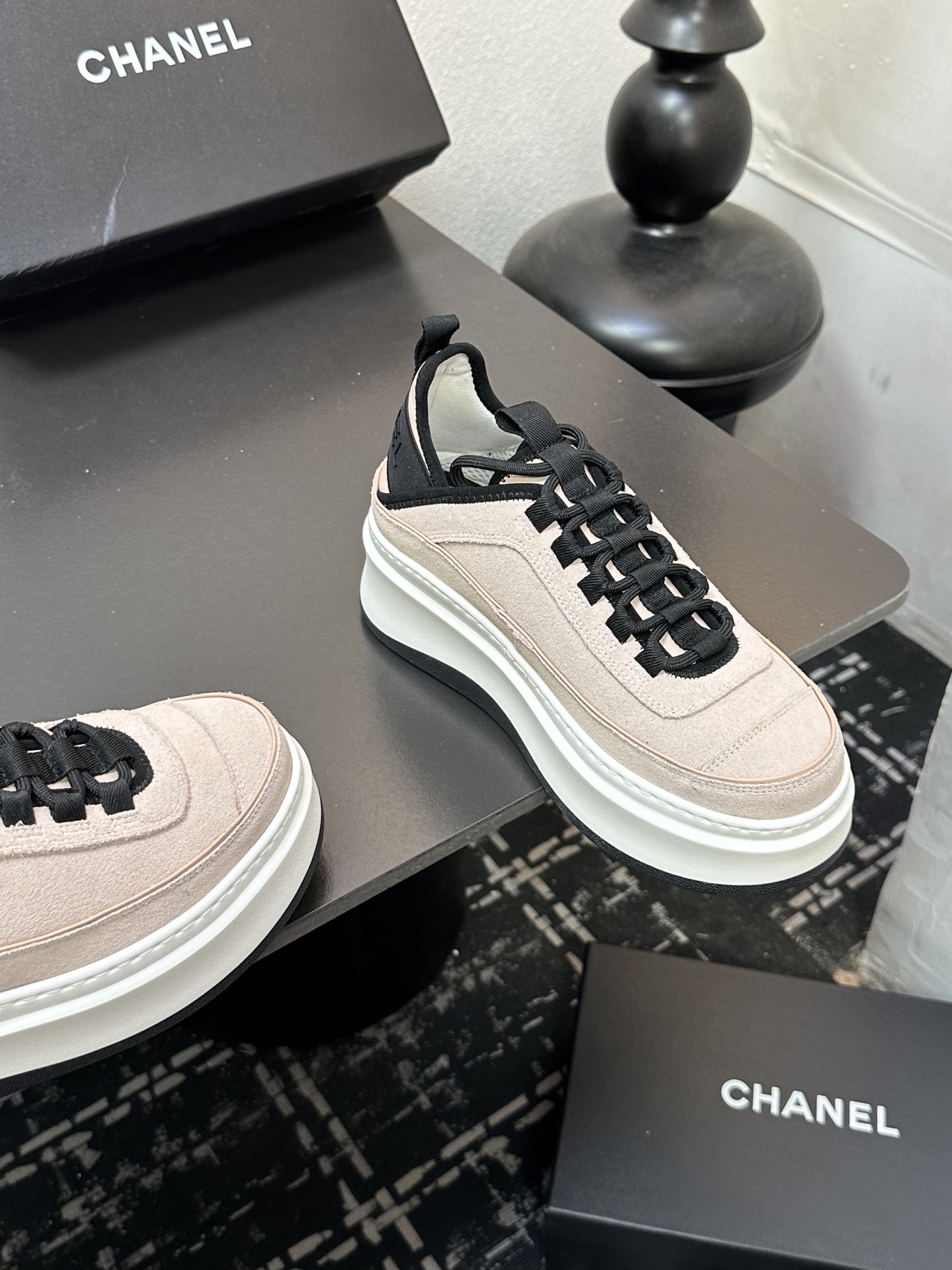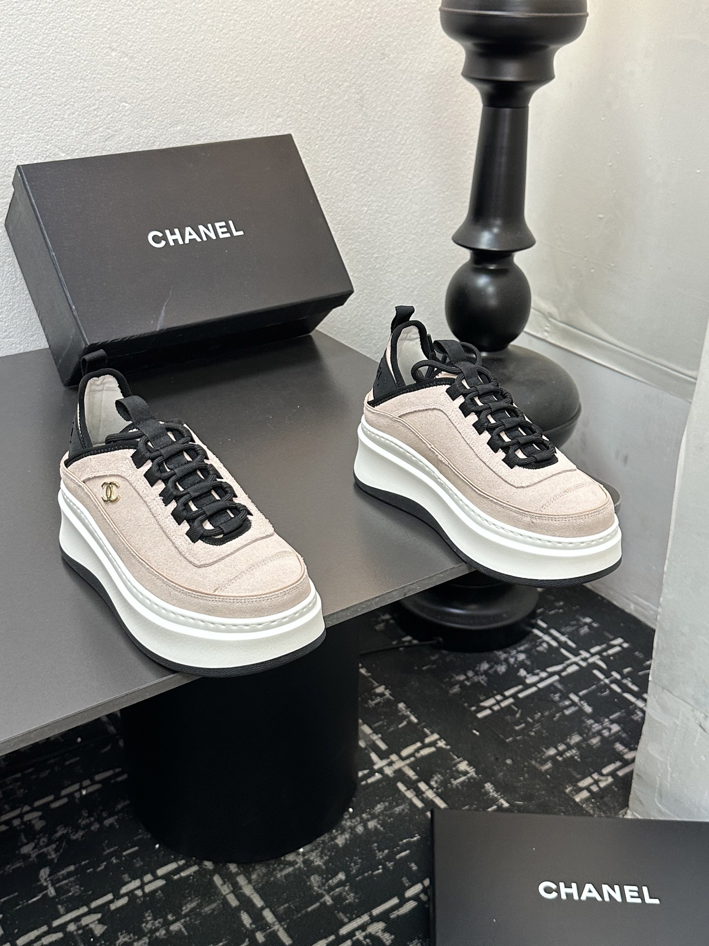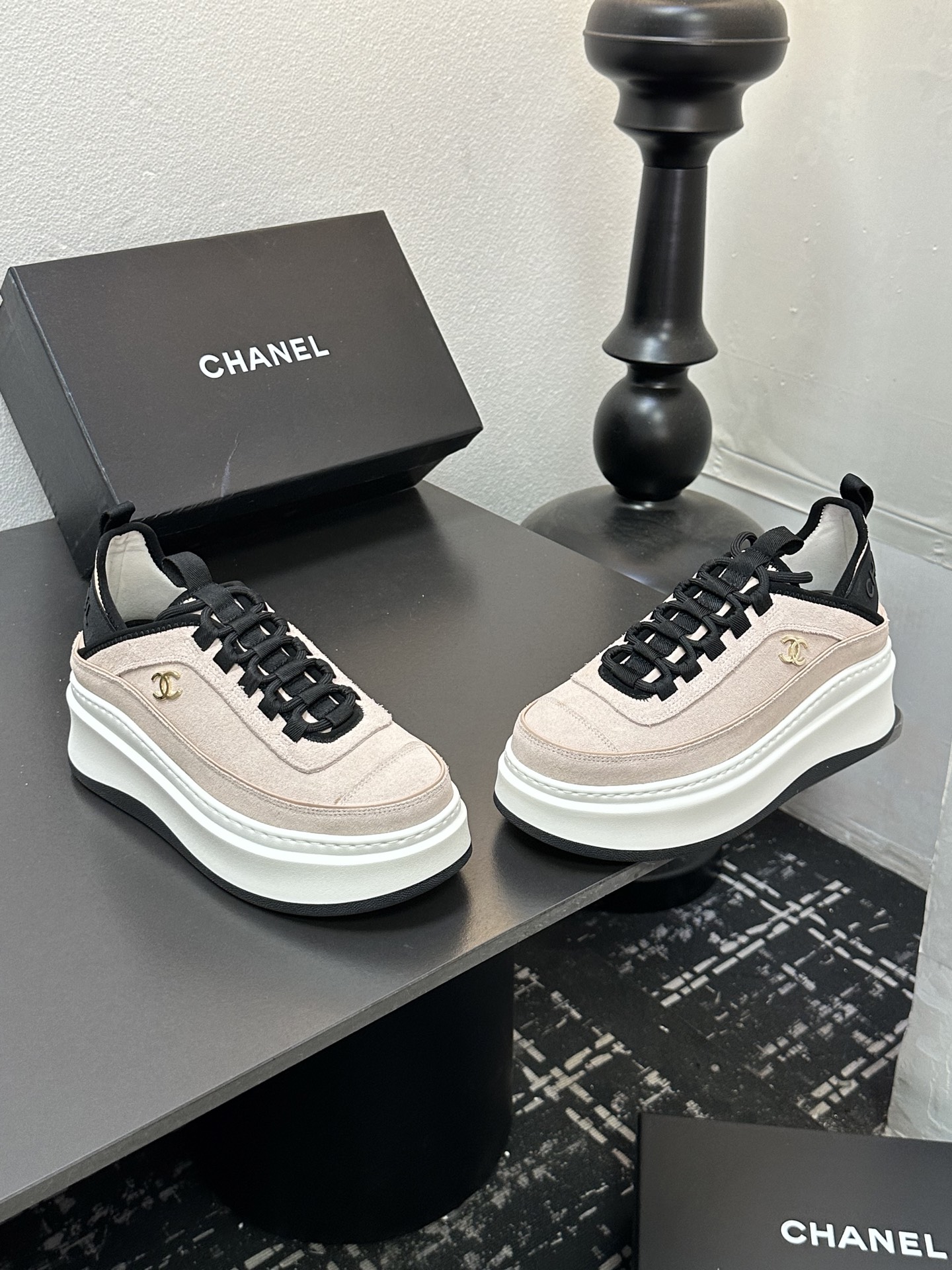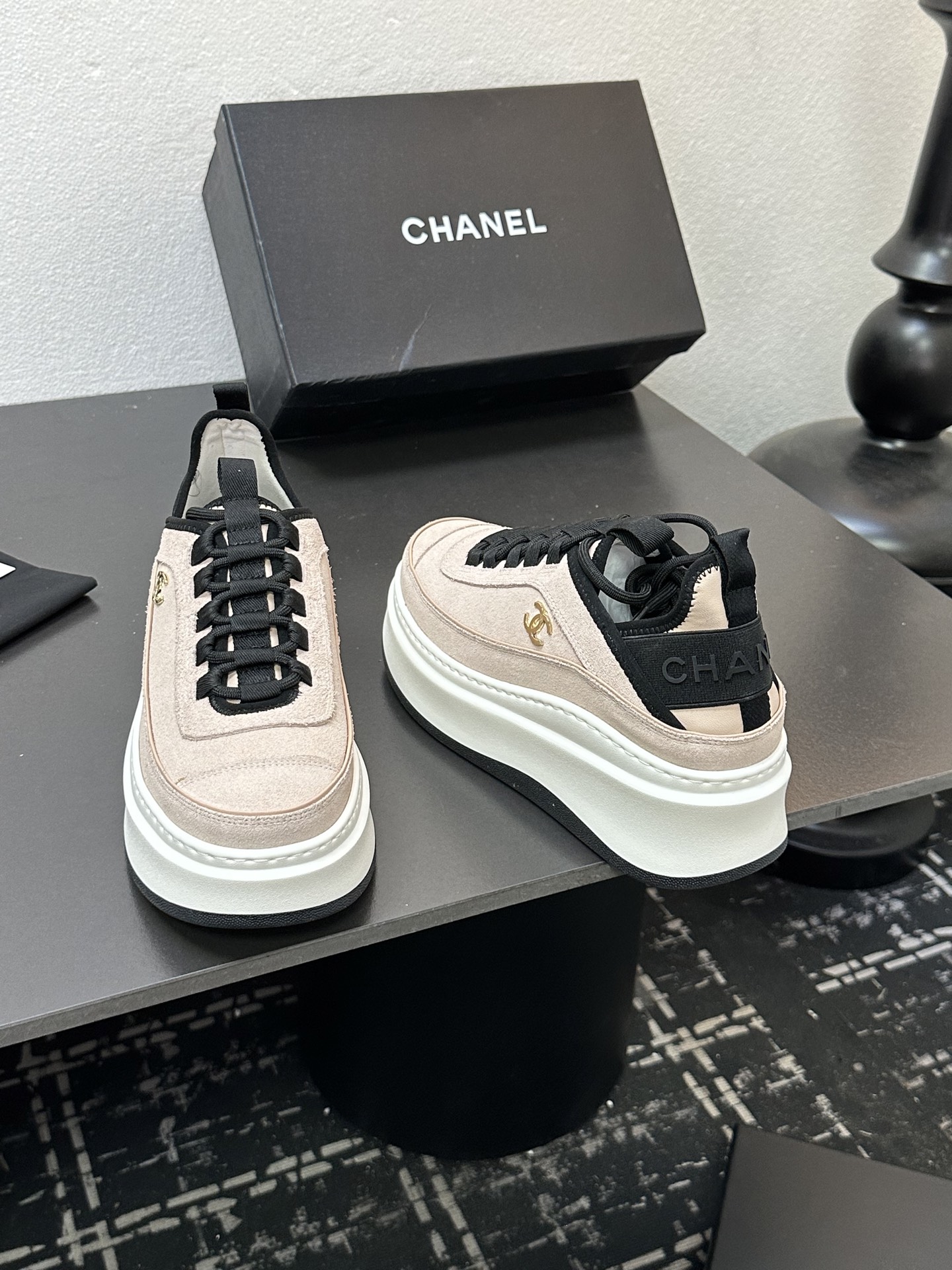 这款鞋子是AAAAA 1:1 质量 (非常棒). 使用了和原版一模一样的材料. 商标部分也保持了和香奈儿/Chanel一样. 图片拍摄是实物鞋子拍摄, 您所收到的实物保证和我们图片一模一样.