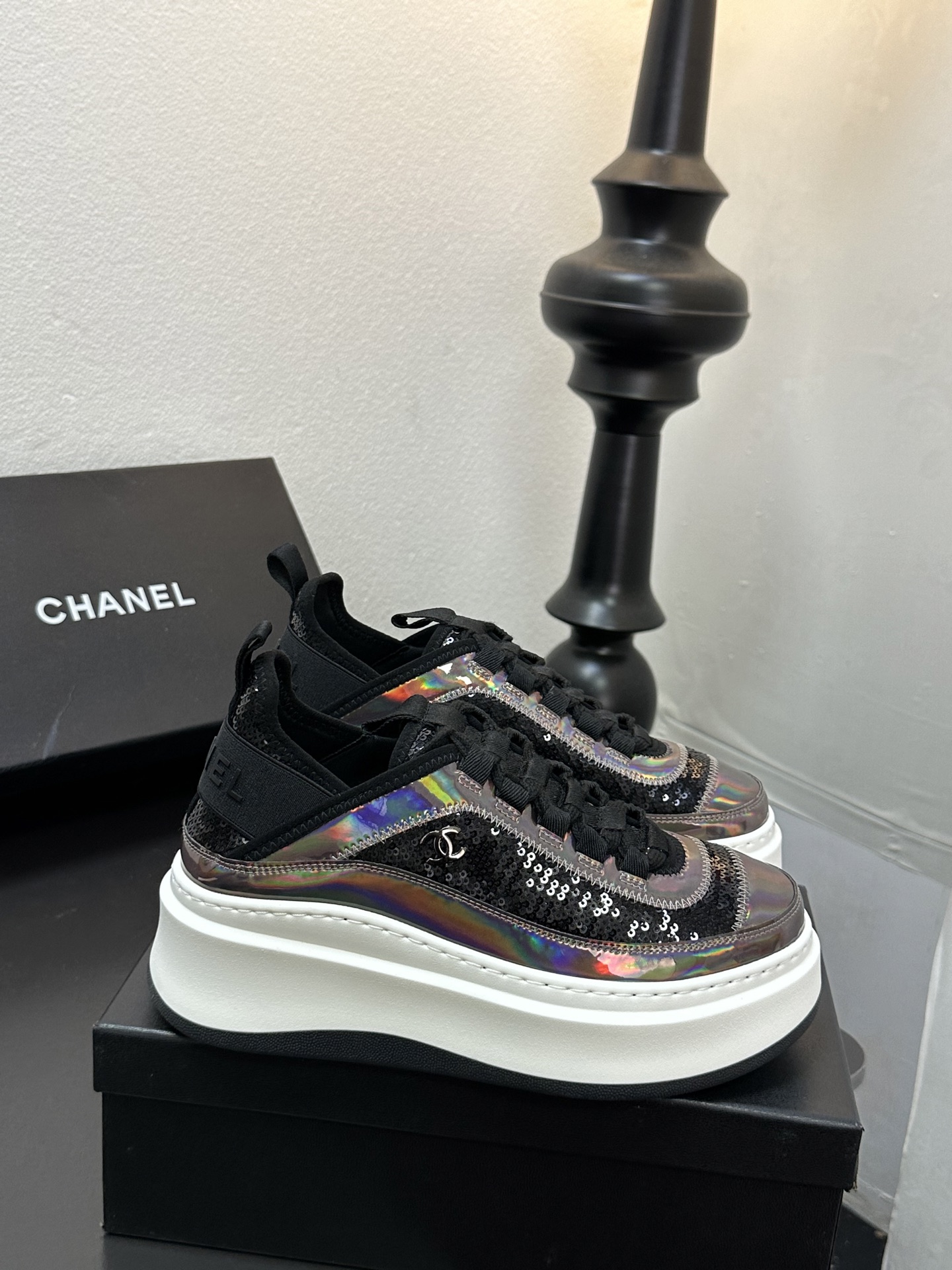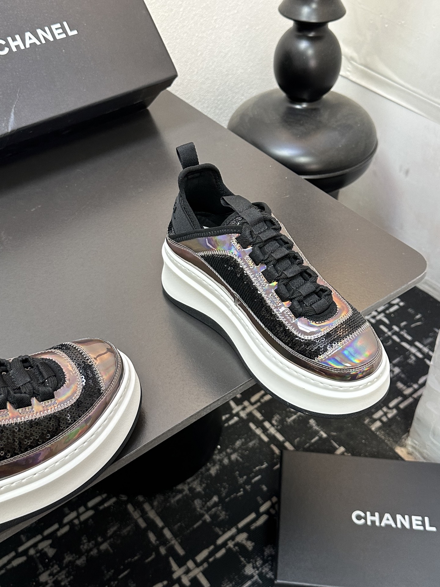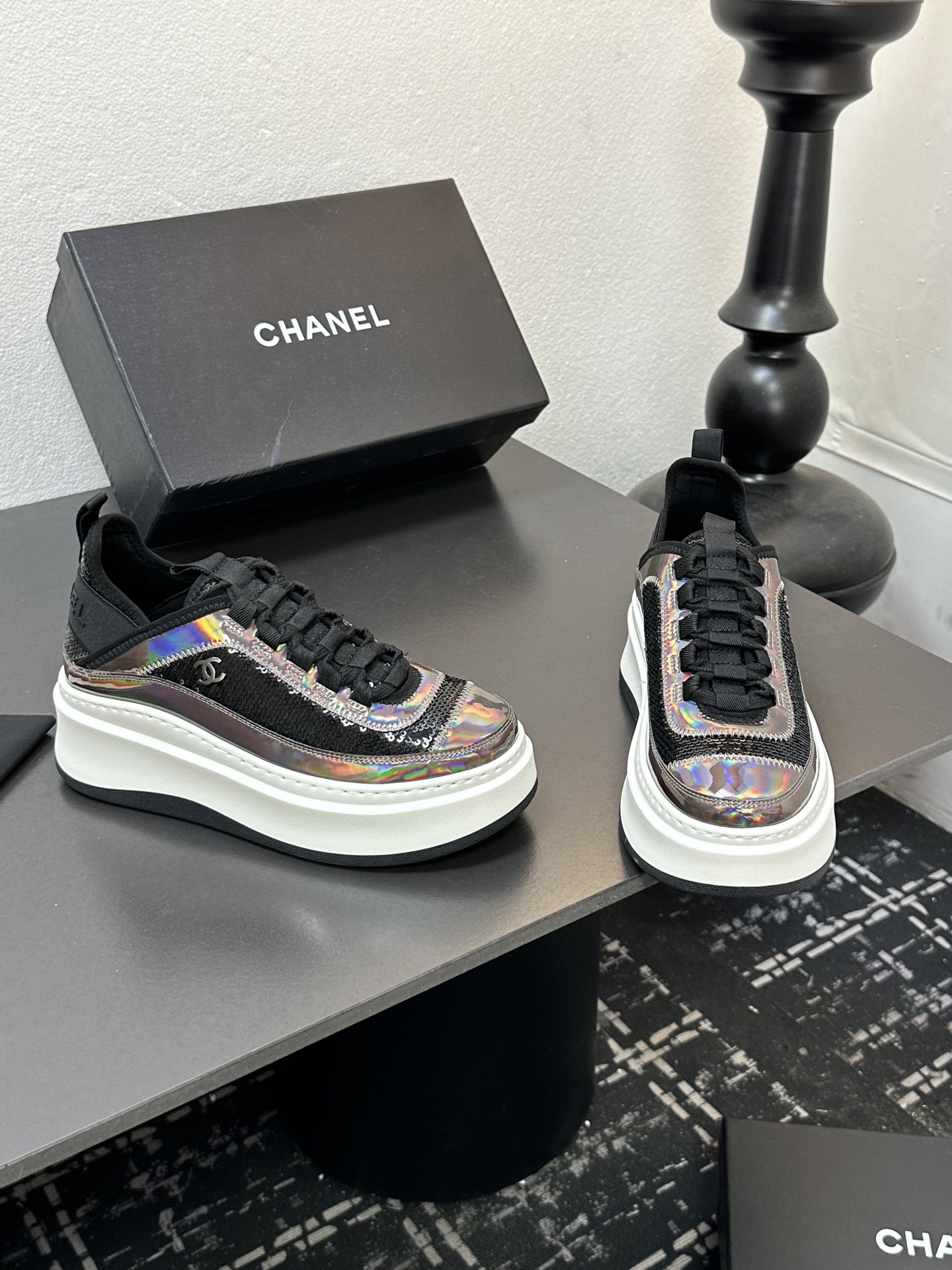 这款鞋子是AAAAA 1:1 质量 (非常棒). 使用了和原版一模一样的材料. 商标部分也保持了和香奈儿/Chanel一样. 图片拍摄是实物鞋子拍摄, 您所收到的实物保证和我们图片一模一样.