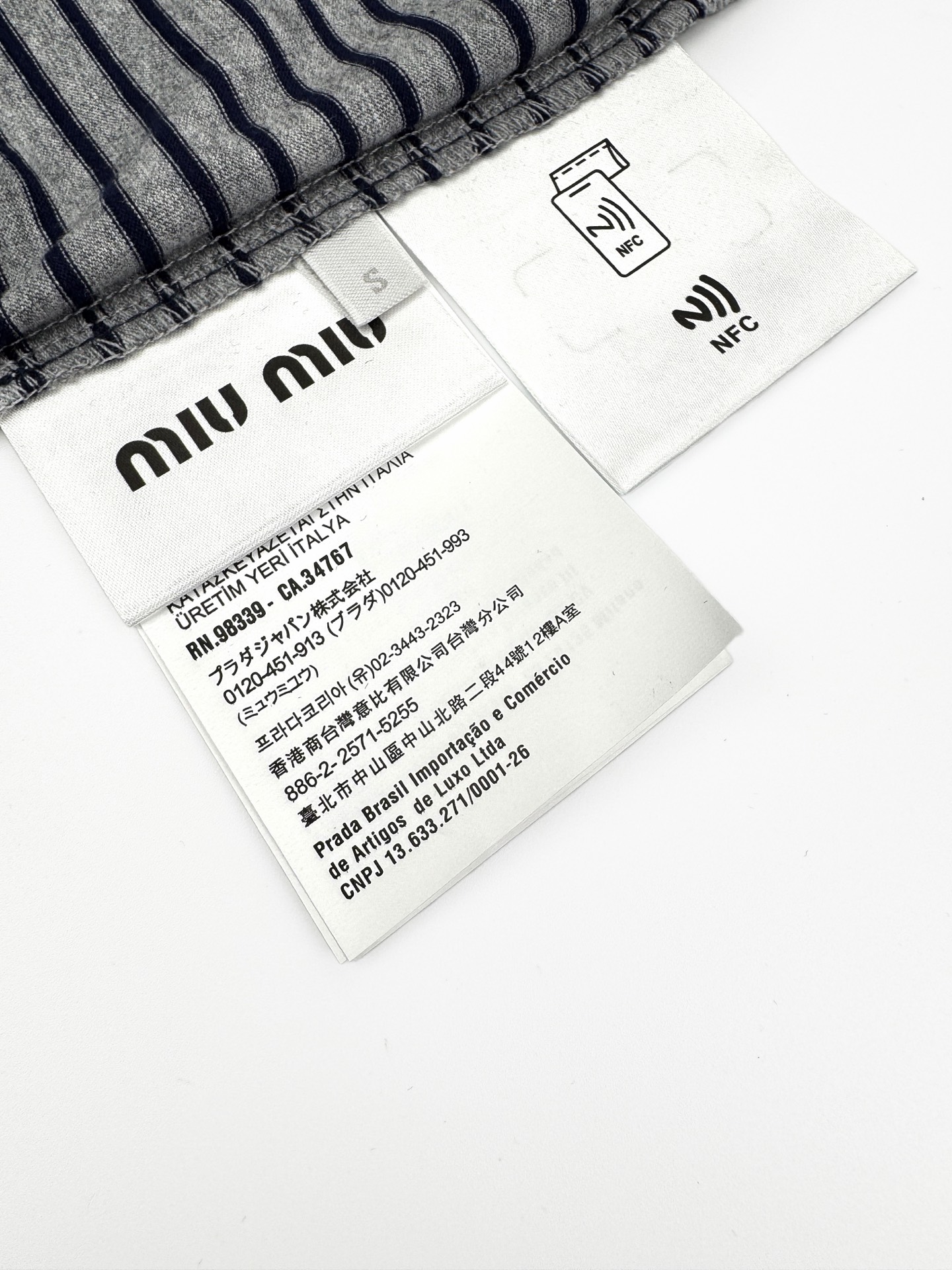这款衣服是AAAAA 1:1 质量 (非常棒). 使用了和原版一模一样的材料. 商标部分也保持了和缪缪/Miu Miu一样. 图片拍摄是实物衣服拍摄, 您所收到的实物保证和我们图片一模一样.