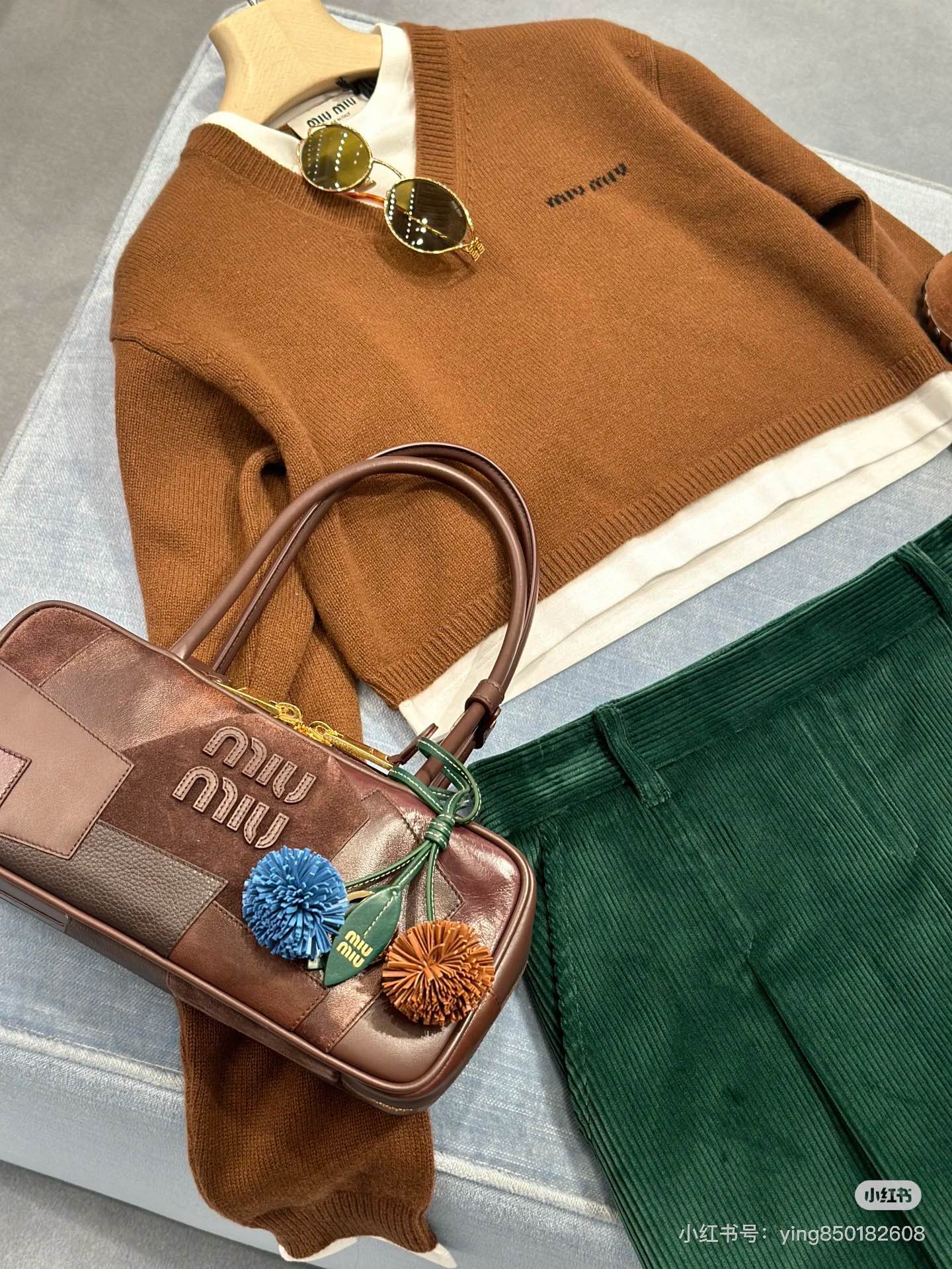 这款衣服是AAAAA 1:1 质量 (非常棒). 使用了和原版一模一样的材料. 商标部分也保持了和缪缪/Miu Miu一样. 图片拍摄是实物衣服拍摄, 您所收到的实物保证和我们图片一模一样.