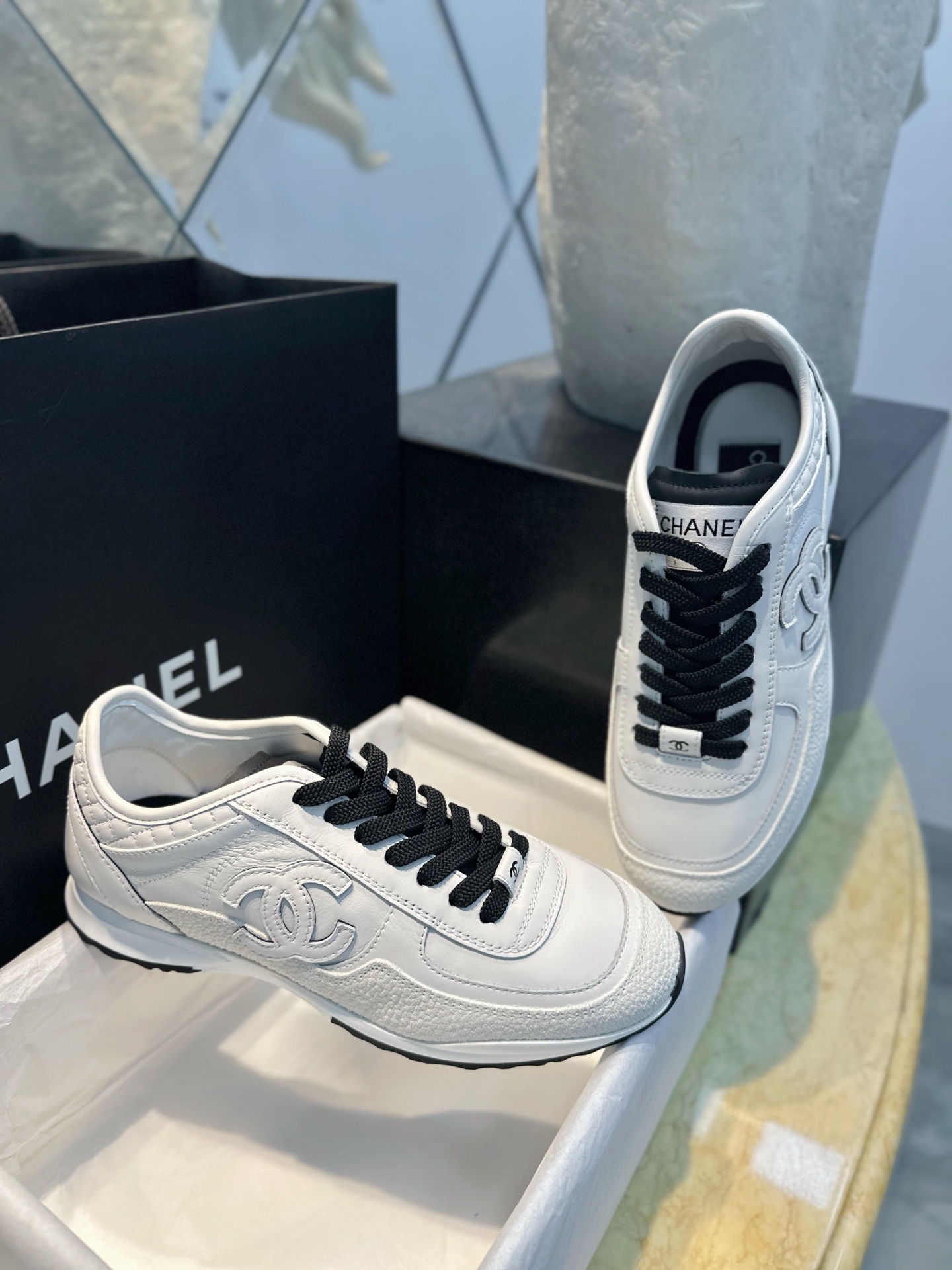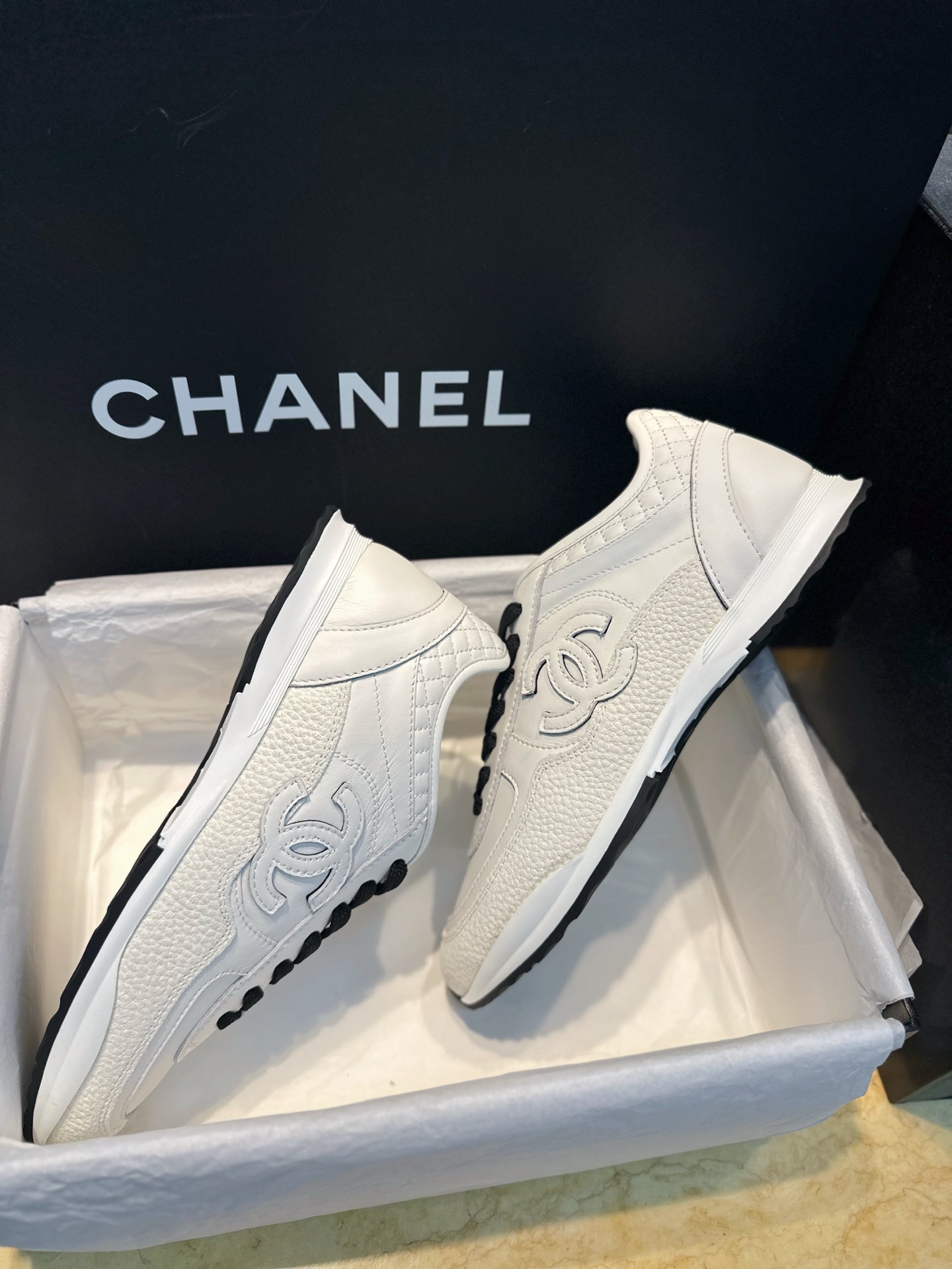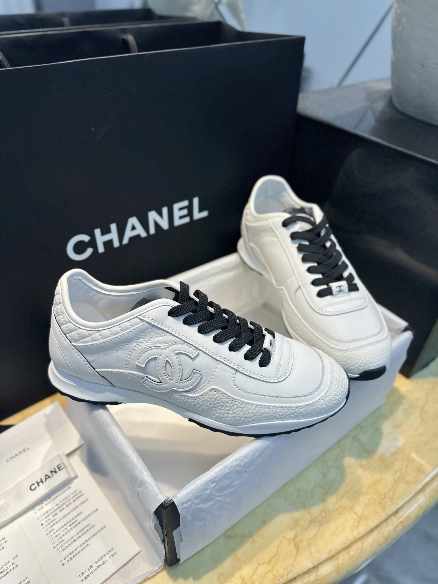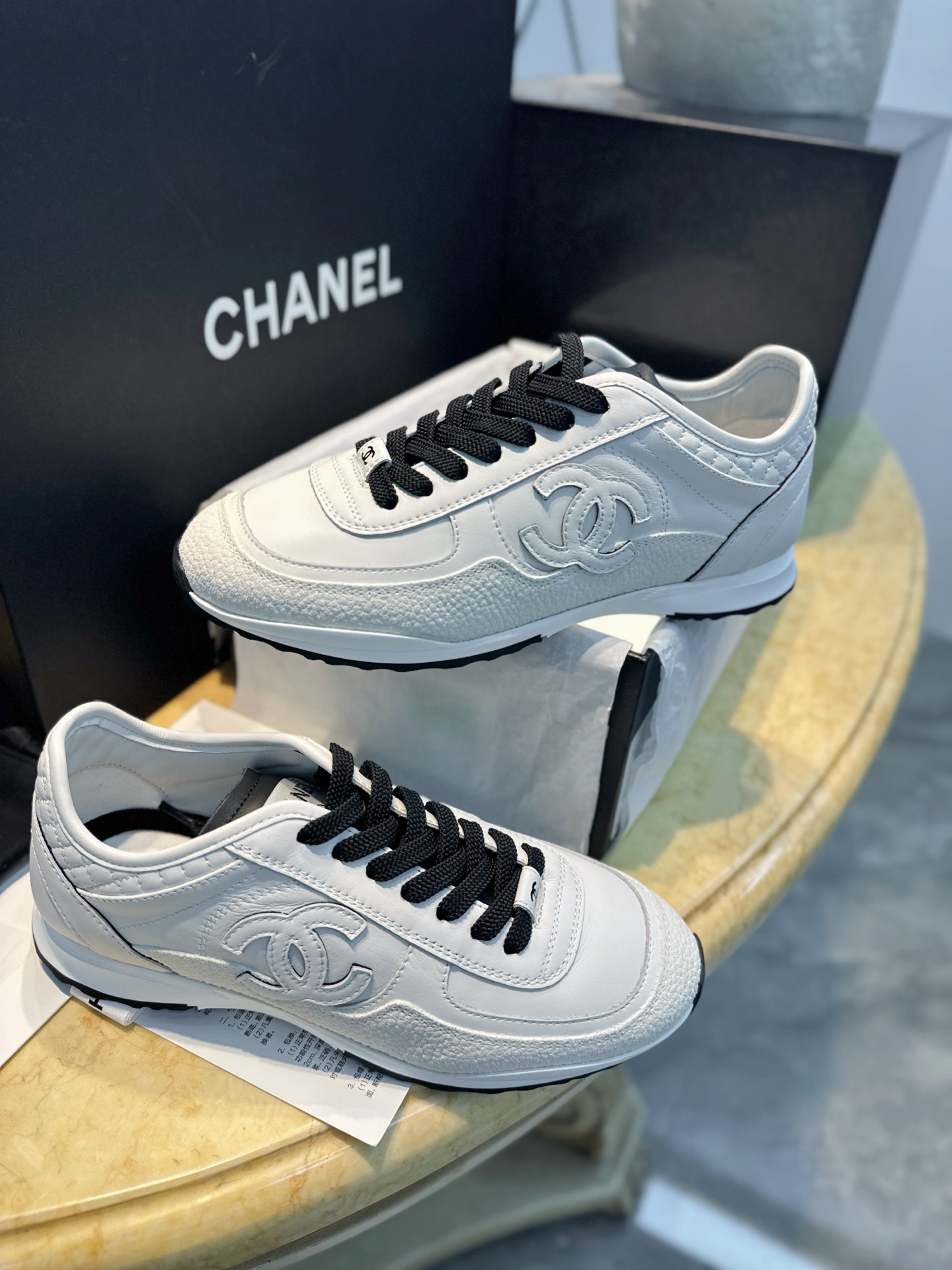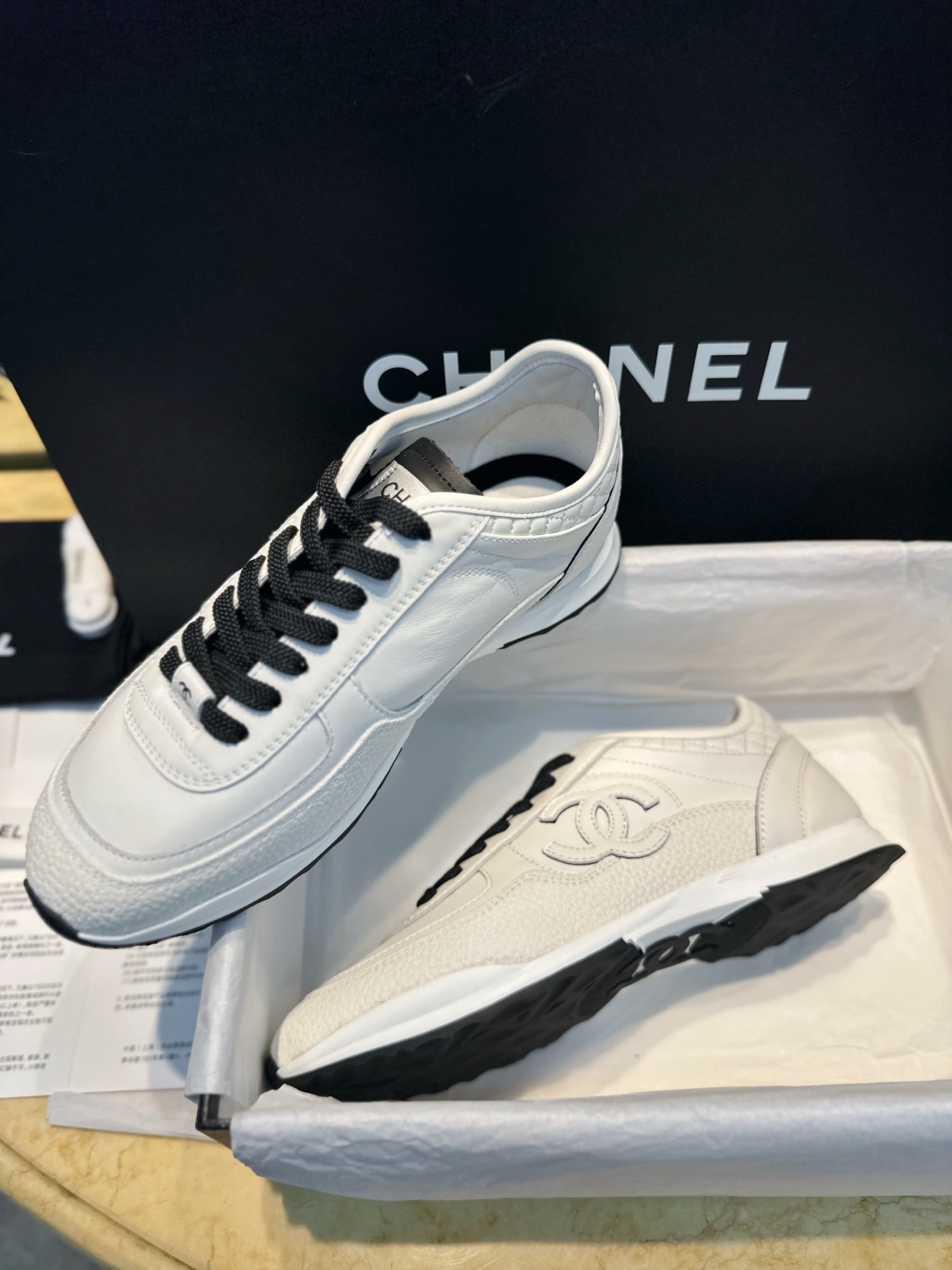 这款鞋子是AAAAA 1:1 质量 (非常棒). 使用了和原版一模一样的材料. 商标部分也保持了和香奈儿/Chanel一样. 图片拍摄是实物鞋子拍摄, 您所收到的实物保证和我们图片一模一样.