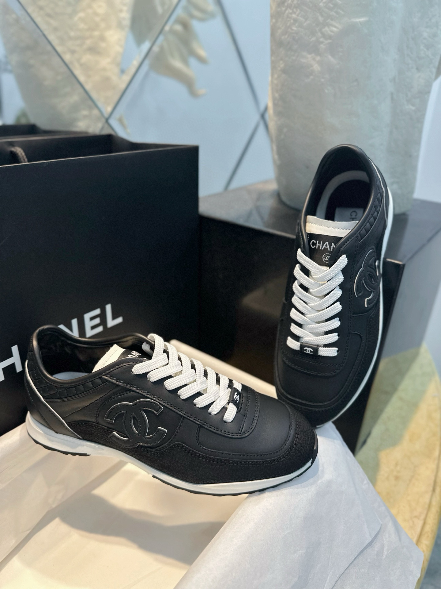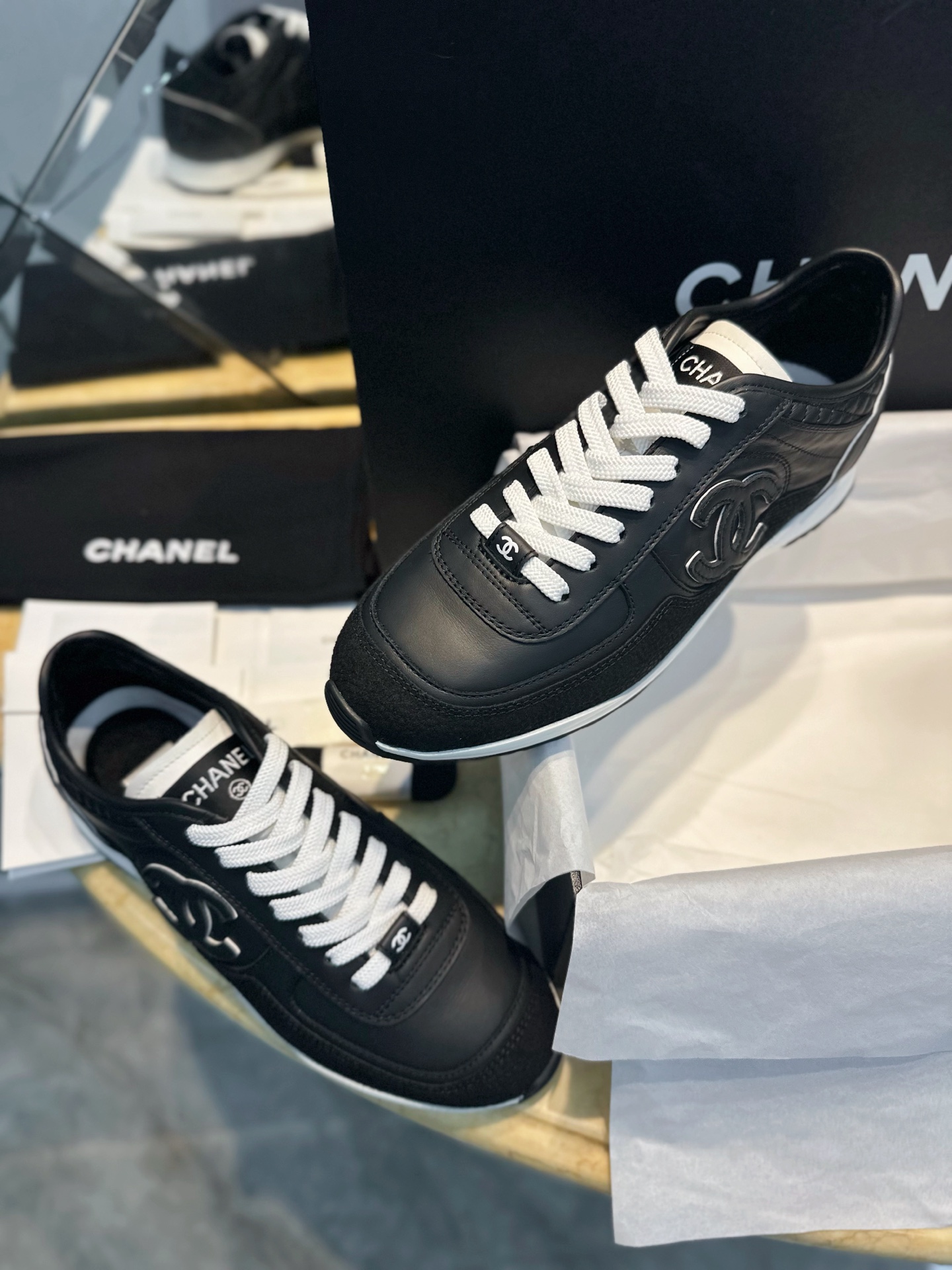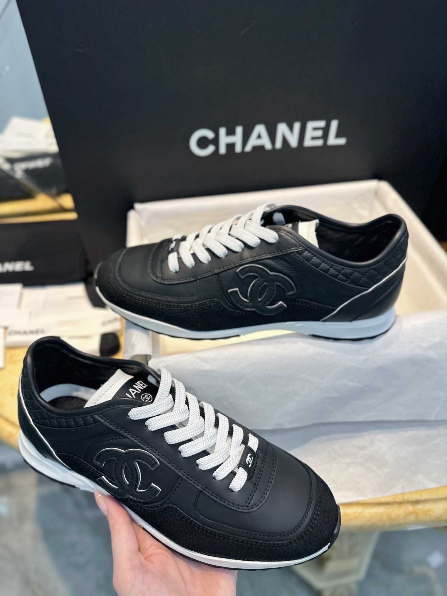 这款鞋子是AAAAA 1:1 质量 (非常棒). 使用了和原版一模一样的材料. 商标部分也保持了和香奈儿/Chanel一样. 图片拍摄是实物鞋子拍摄, 您所收到的实物保证和我们图片一模一样.