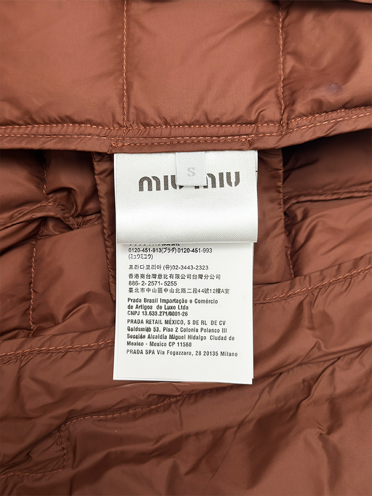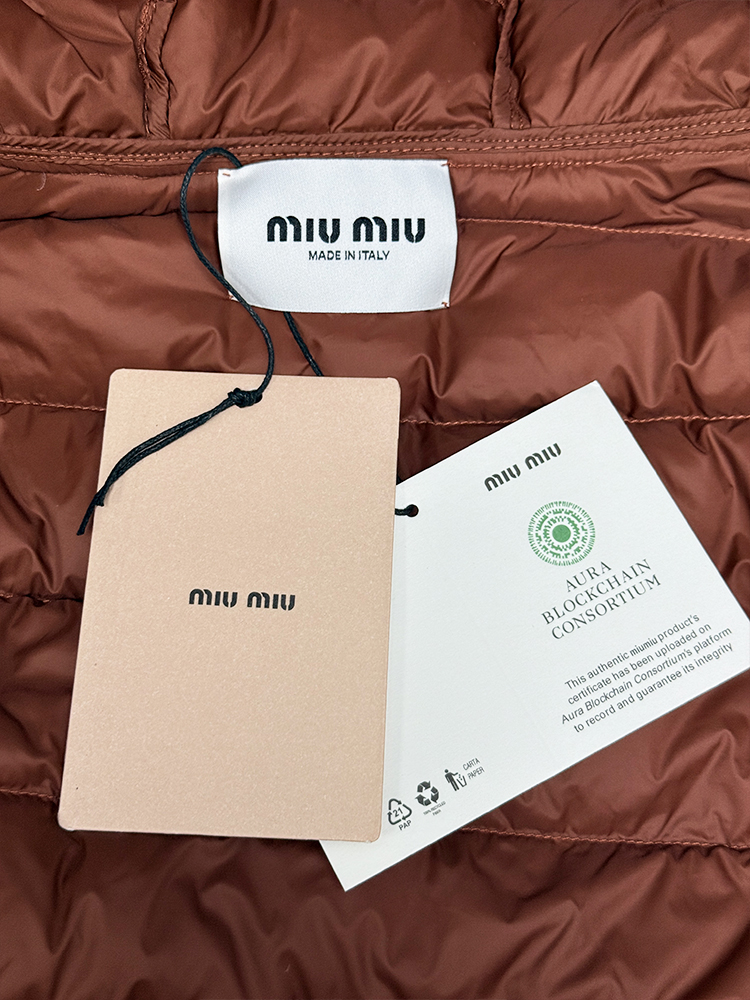 这款衣服是AAAAA 1:1 质量 (非常棒). 使用了和原版一模一样的材料. 商标部分也保持了和缪缪/Miu Miu一样. 图片拍摄是实物衣服拍摄, 您所收到的实物保证和我们图片一模一样.