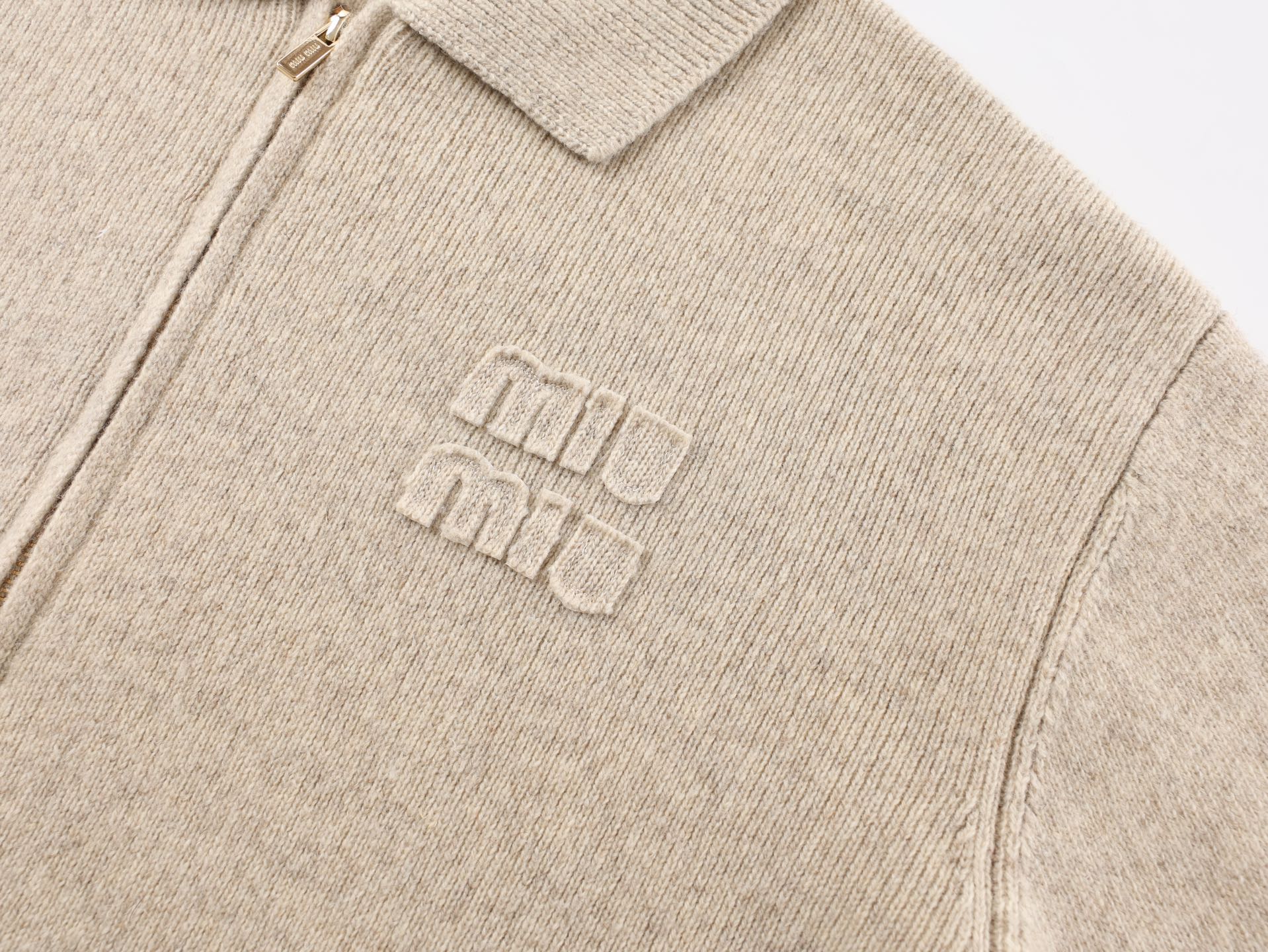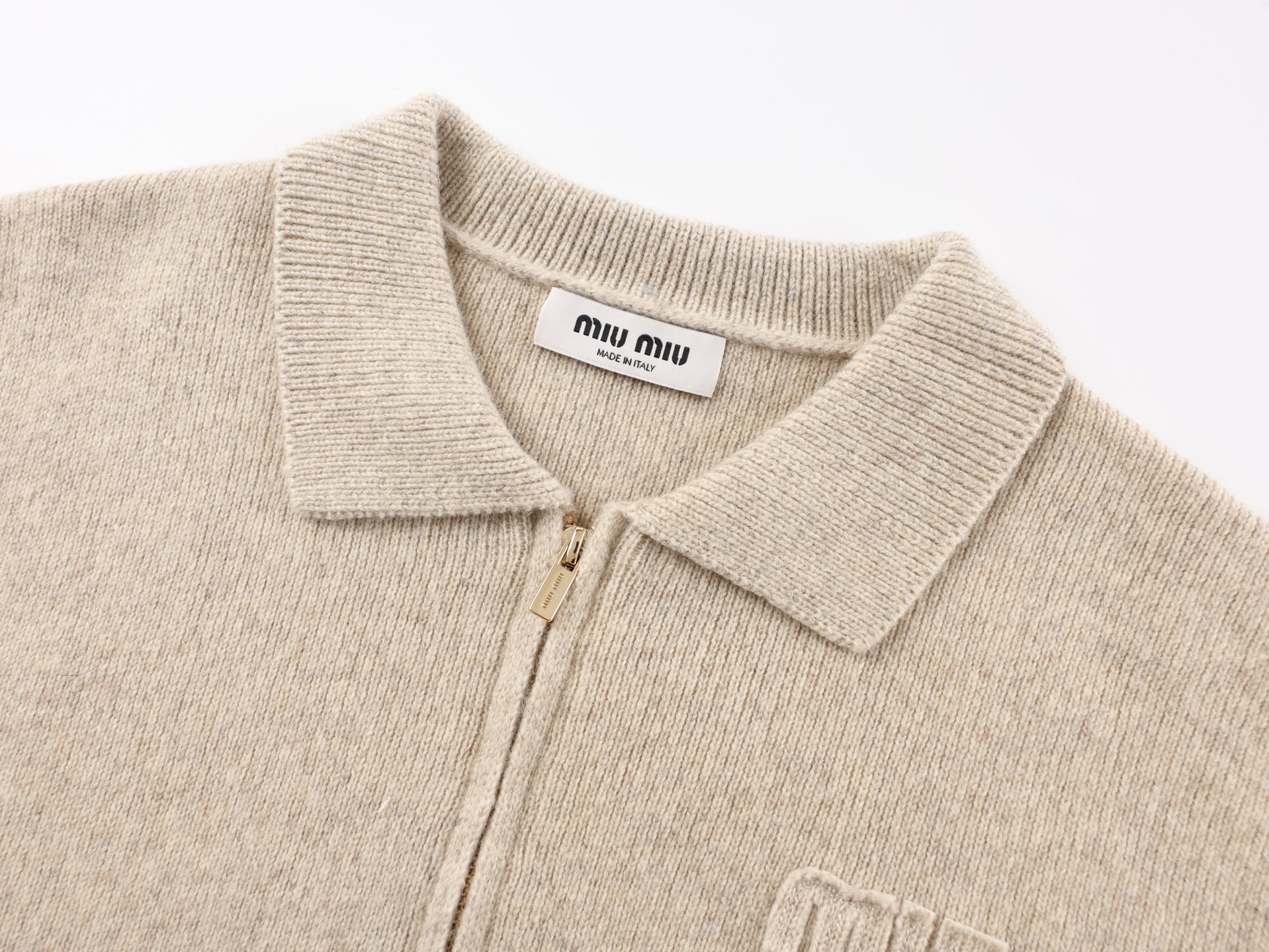 这款衣服是AAAAA 1:1 质量 (非常棒). 使用了和原版一模一样的材料. 商标部分也保持了和缪缪/Miu Miu一样. 图片拍摄是实物衣服拍摄, 您所收到的实物保证和我们图片一模一样.