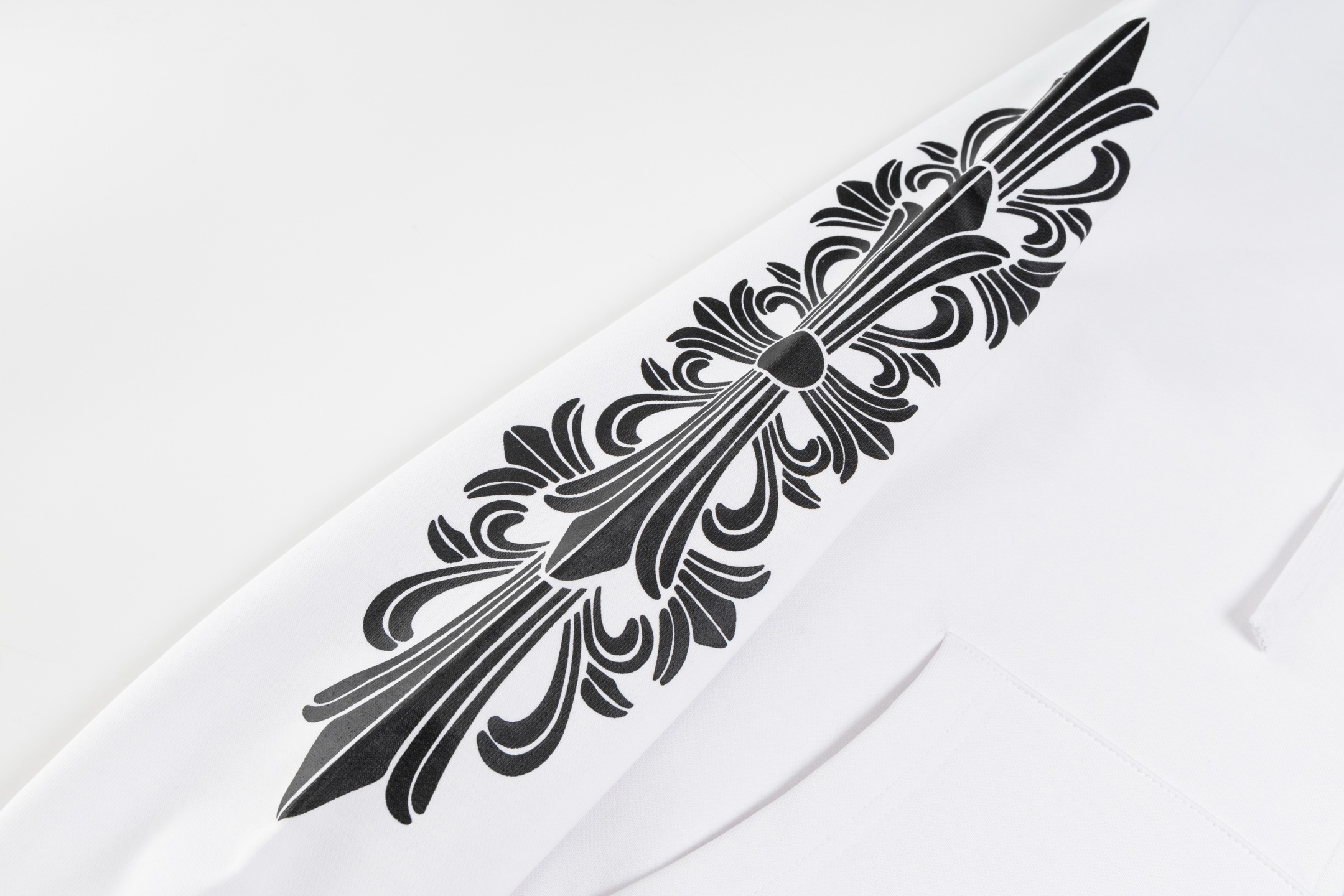 这款衣服是AAAAA 1:1 质量 (非常棒). 使用了和原版一模一样的材料. 商标部分也保持了和克罗心/Chrome Hearts一样. 图片拍摄是实物衣服拍摄, 您所收到的实物保证和我们图片一模一样.