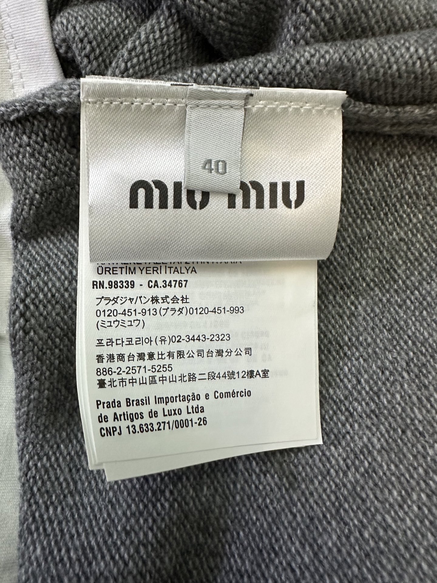 这款衣服是AAAAA 1:1 质量 (非常棒). 使用了和原版一模一样的材料. 商标部分也保持了和缪缪/Miu Miu一样. 图片拍摄是实物衣服拍摄, 您所收到的实物保证和我们图片一模一样.