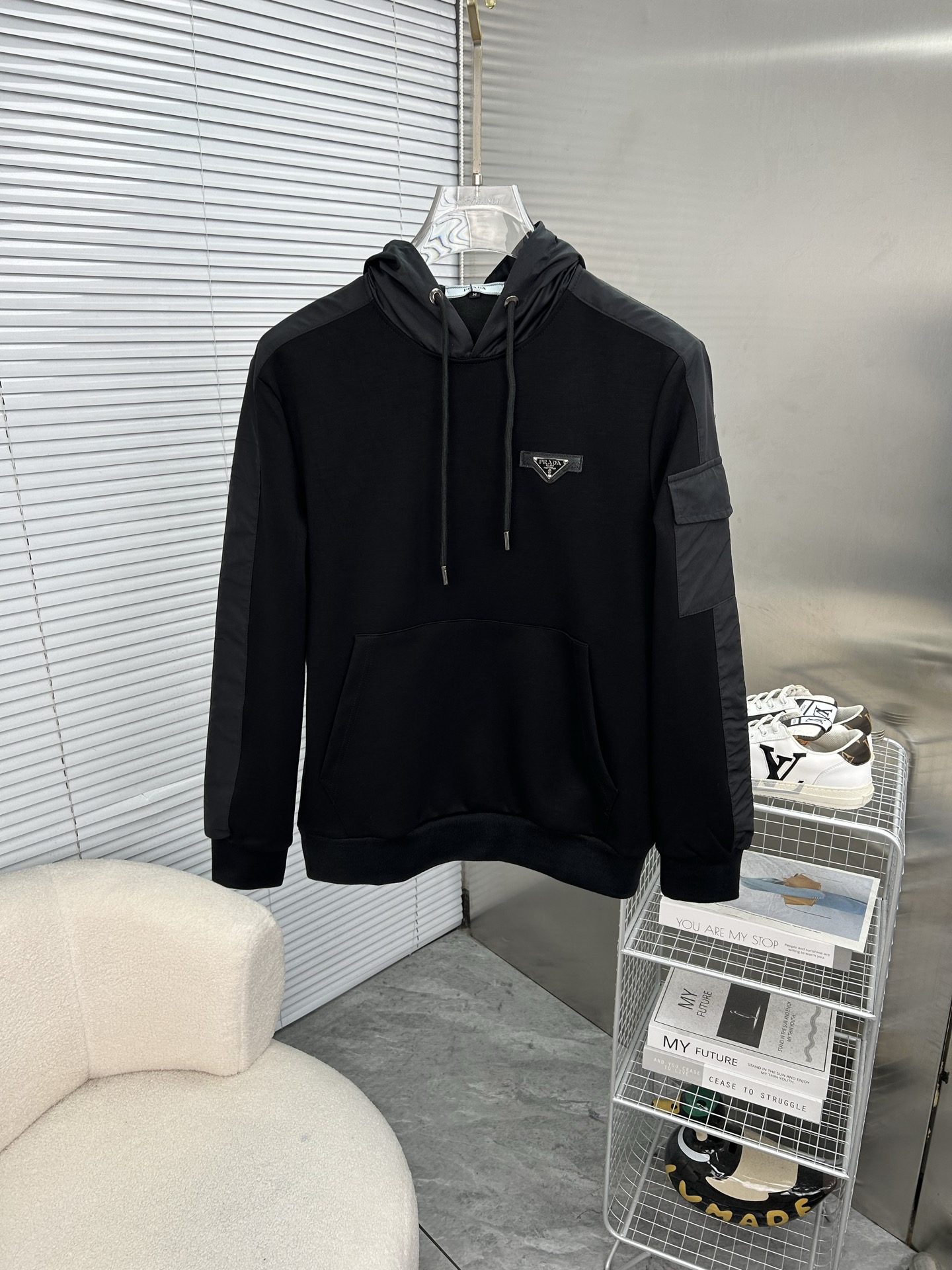 这款衣服是AAAAA 1:1 质量 (非常棒). 使用了和原版一模一样的材料. 商标部分也保持了和普拉达/Prada一样. 图片拍摄是实物衣服拍摄, 您所收到的实物保证和我们图片一模一样.