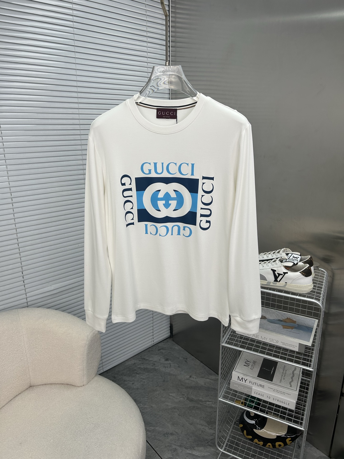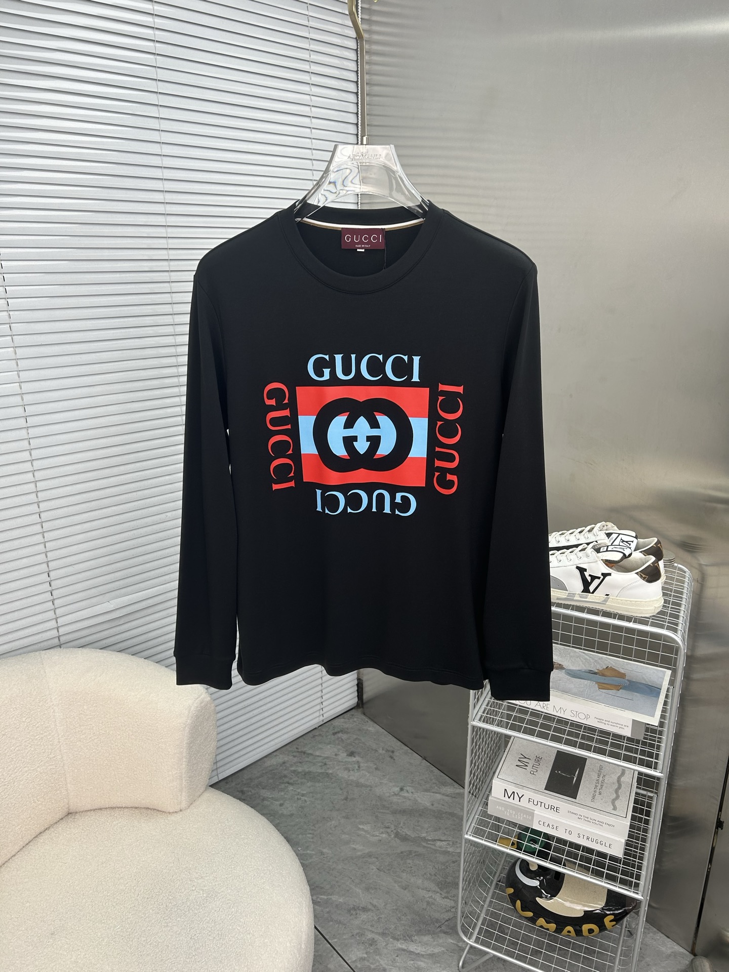 这款衣服是AAAAA 1:1 质量 (非常棒). 使用了和原版一模一样的材料. 商标部分也保持了和古奇/Gucci一样. 图片拍摄是实物衣服拍摄, 您所收到的实物保证和我们图片一模一样.