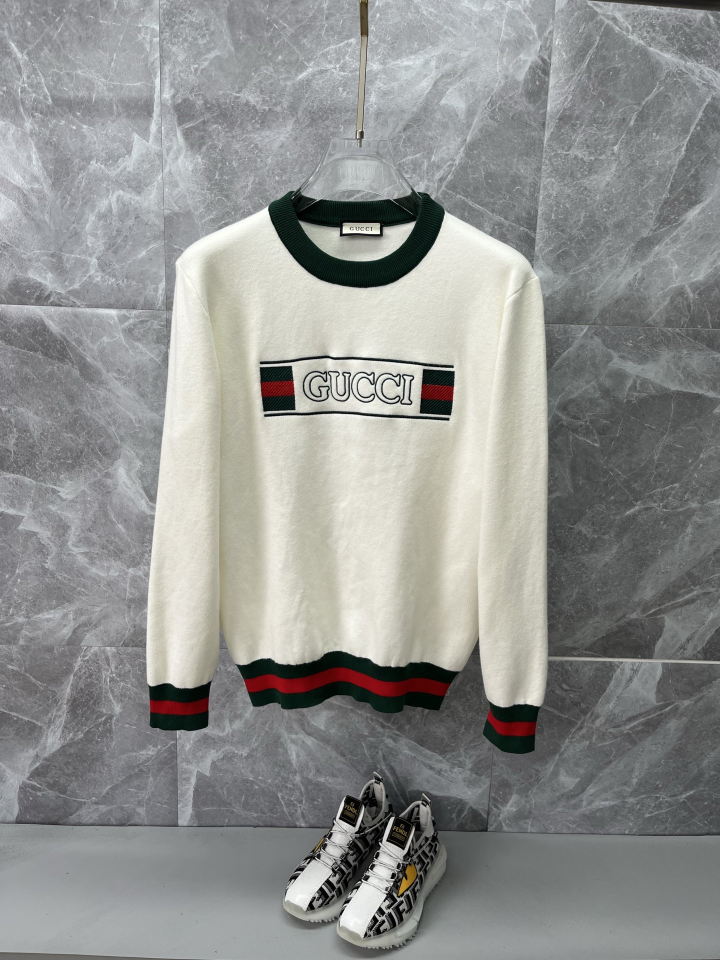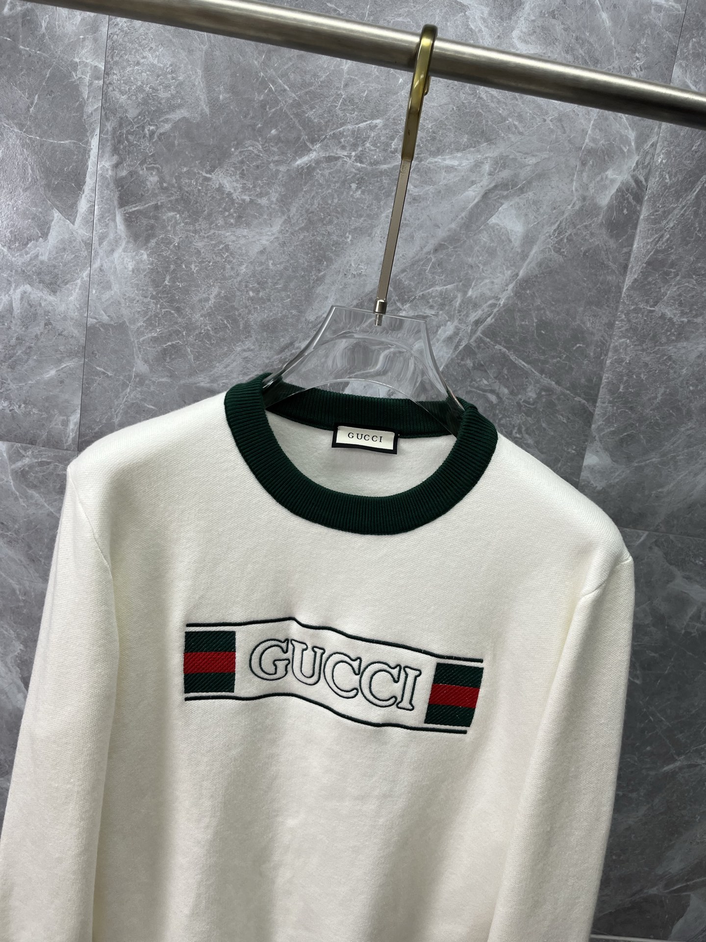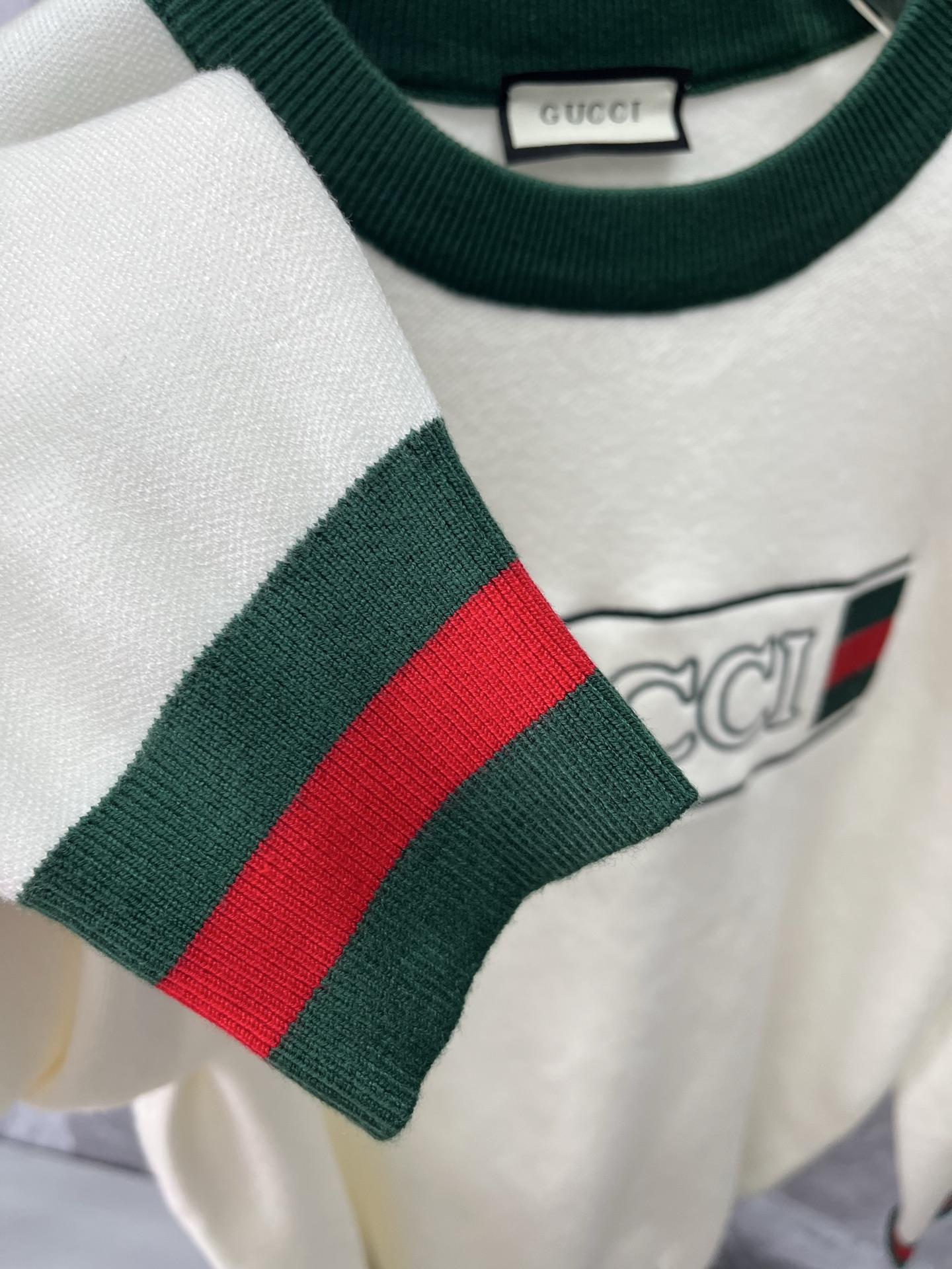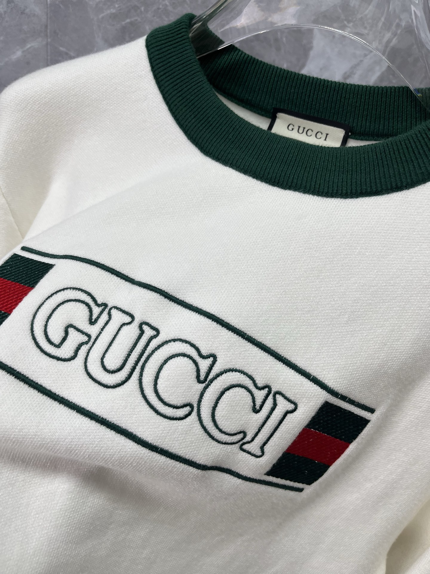 这款衣服是AAAAA 1:1 质量 (非常棒). 使用了和原版一模一样的材料. 商标部分也保持了和古奇/Gucci一样. 图片拍摄是实物衣服拍摄, 您所收到的实物保证和我们图片一模一样.