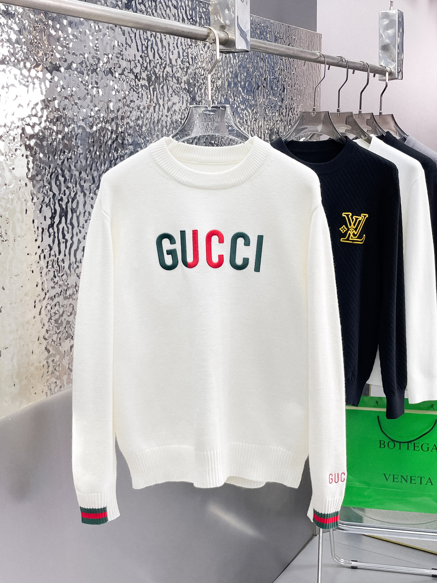 这款衣服是AAAAA 1:1 质量 (非常棒). 使用了和原版一模一样的材料. 商标部分也保持了和古奇/Gucci一样. 图片拍摄是实物衣服拍摄, 您所收到的实物保证和我们图片一模一样.