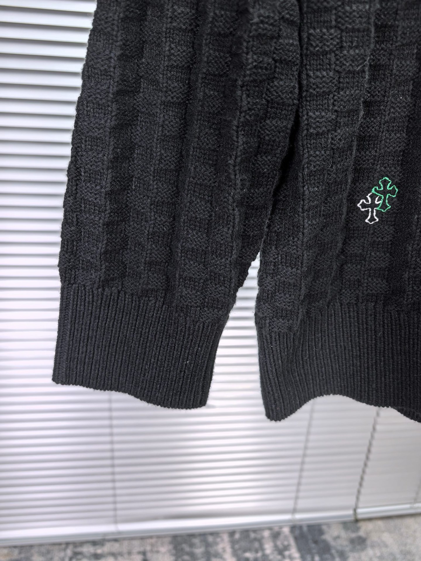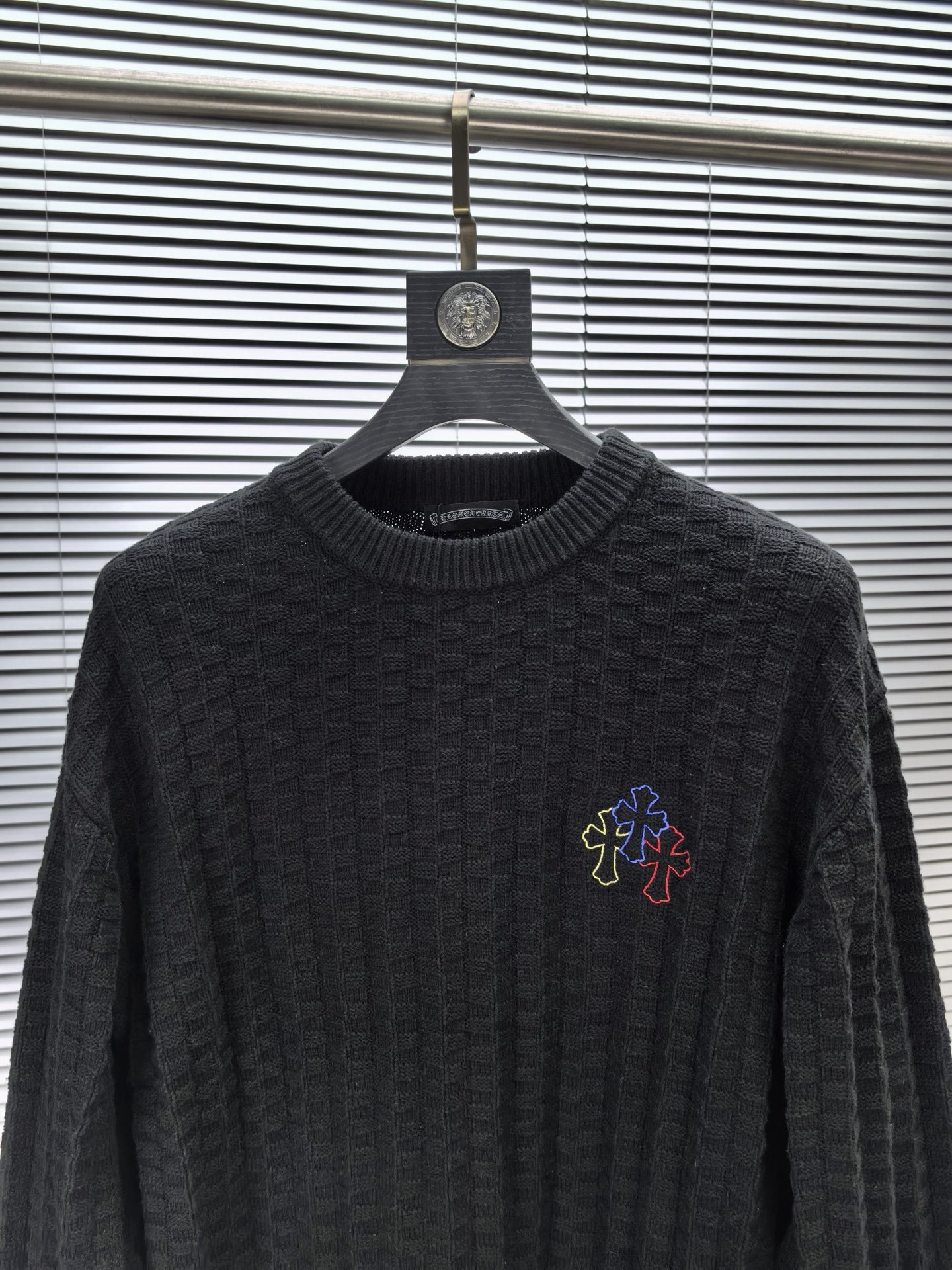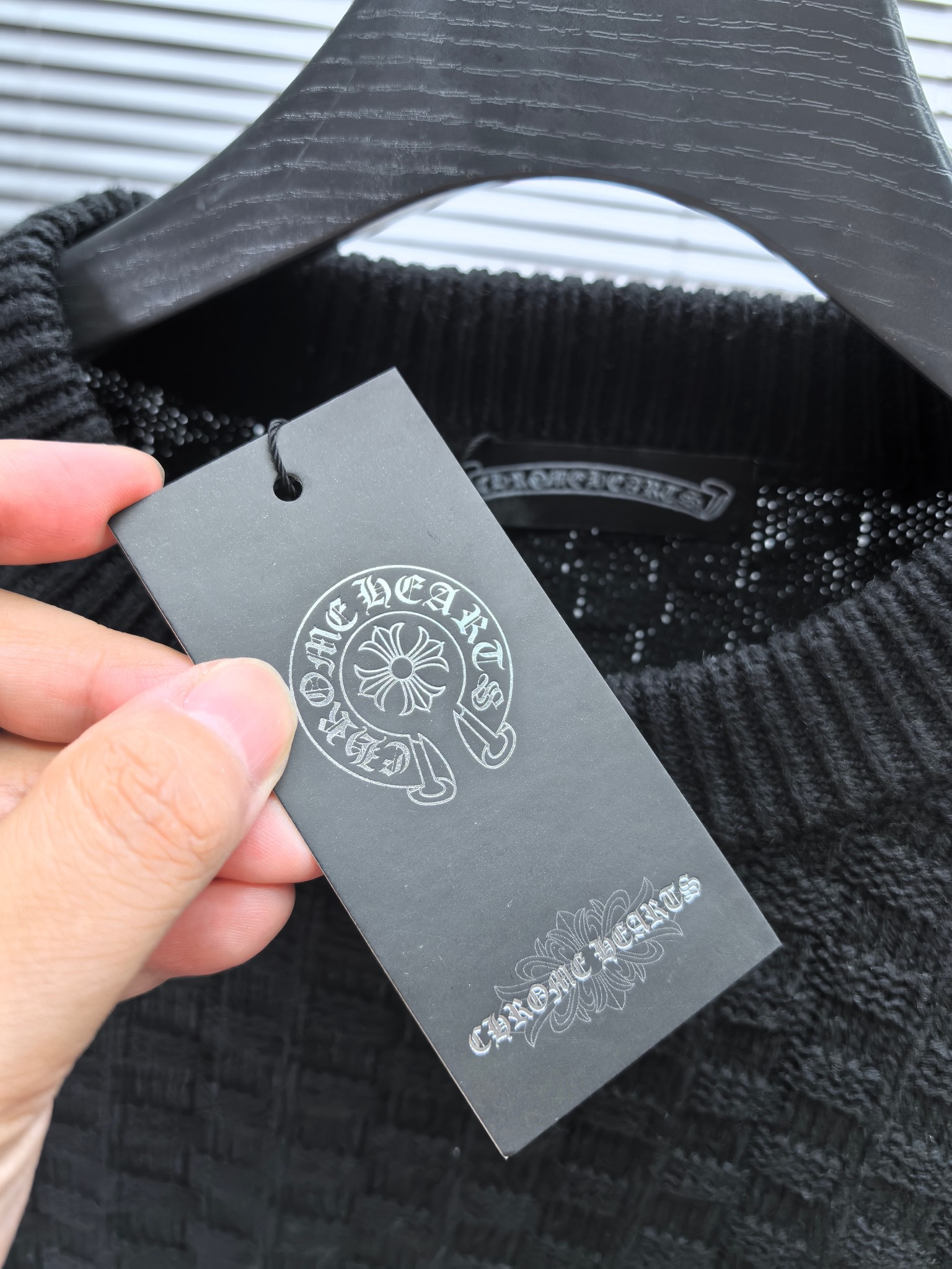 这款衣服是AAAAA 1:1 质量 (非常棒). 使用了和原版一模一样的材料. 商标部分也保持了和克罗心/Chrome Hearts一样. 图片拍摄是实物衣服拍摄, 您所收到的实物保证和我们图片一模一样.