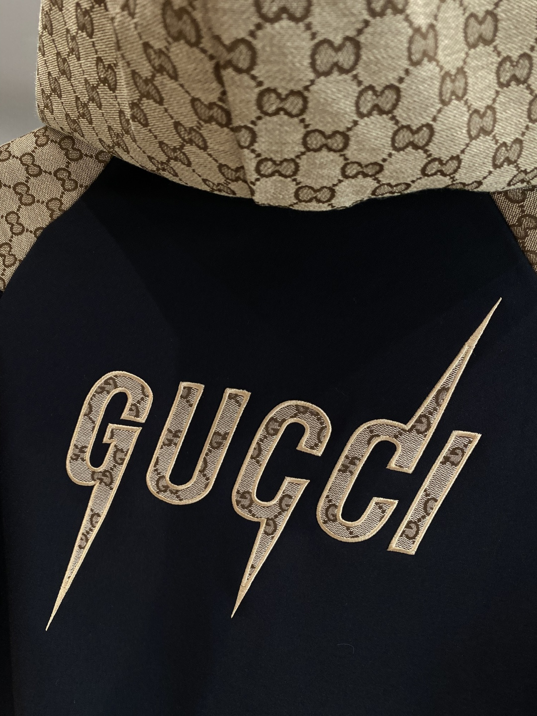 这款衣服是AAAAA 1:1 质量 (非常棒). 使用了和原版一模一样的材料. 商标部分也保持了和古奇/Gucci一样. 图片拍摄是实物衣服拍摄, 您所收到的实物保证和我们图片一模一样.