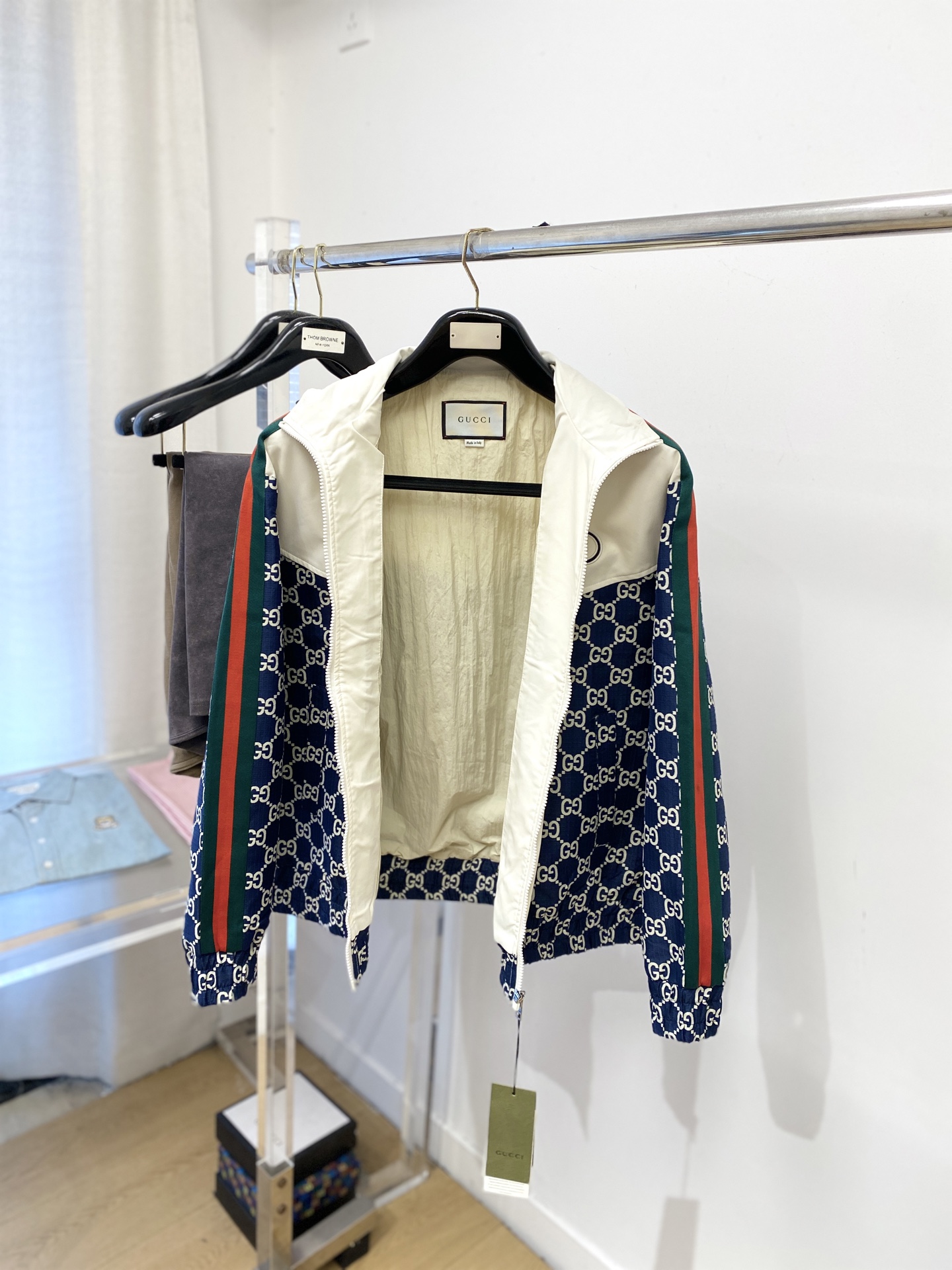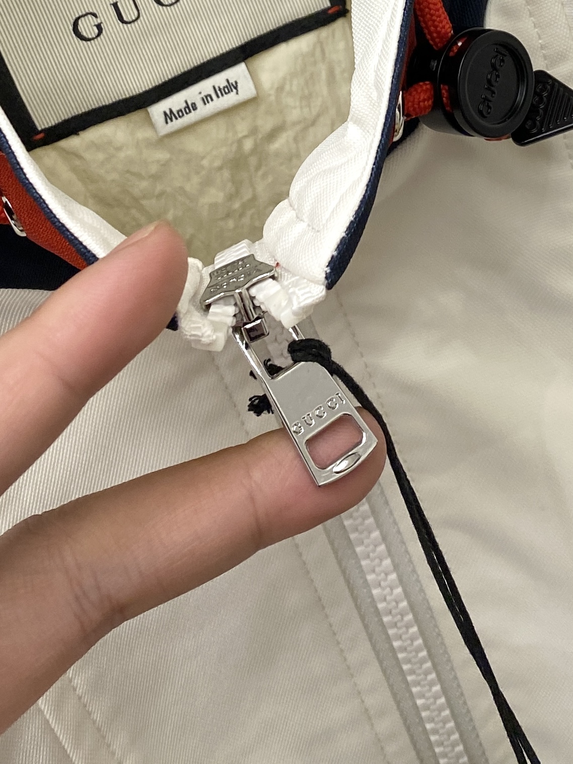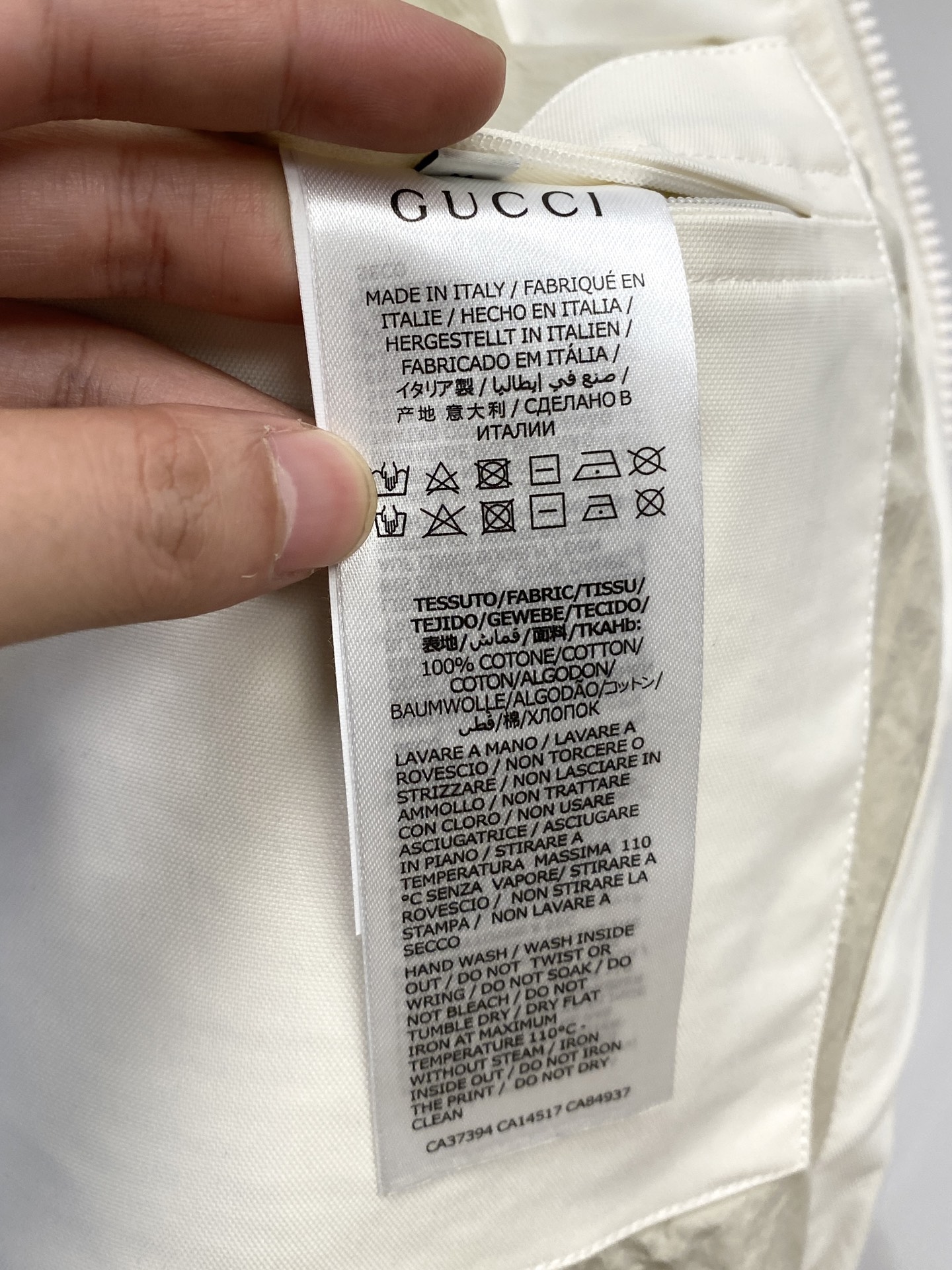 这款衣服是AAAAA 1:1 质量 (非常棒). 使用了和原版一模一样的材料. 商标部分也保持了和古奇/Gucci一样. 图片拍摄是实物衣服拍摄, 您所收到的实物保证和我们图片一模一样.
