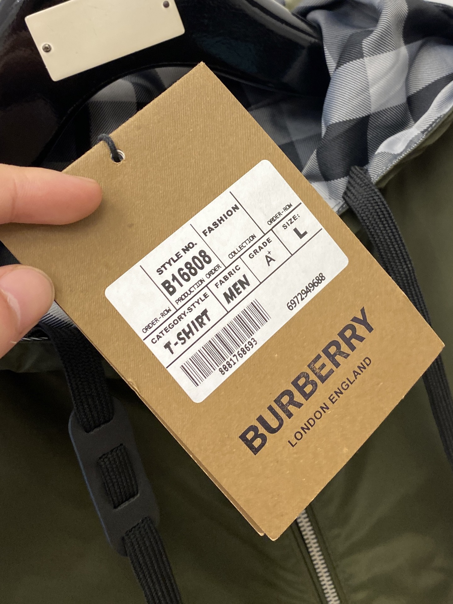 这款衣服是AAAAA 1:1 质量 (非常棒). 使用了和原版一模一样的材料. 商标部分也保持了和巴宝莉/Burberry一样. 图片拍摄是实物衣服拍摄, 您所收到的实物保证和我们图片一模一样.