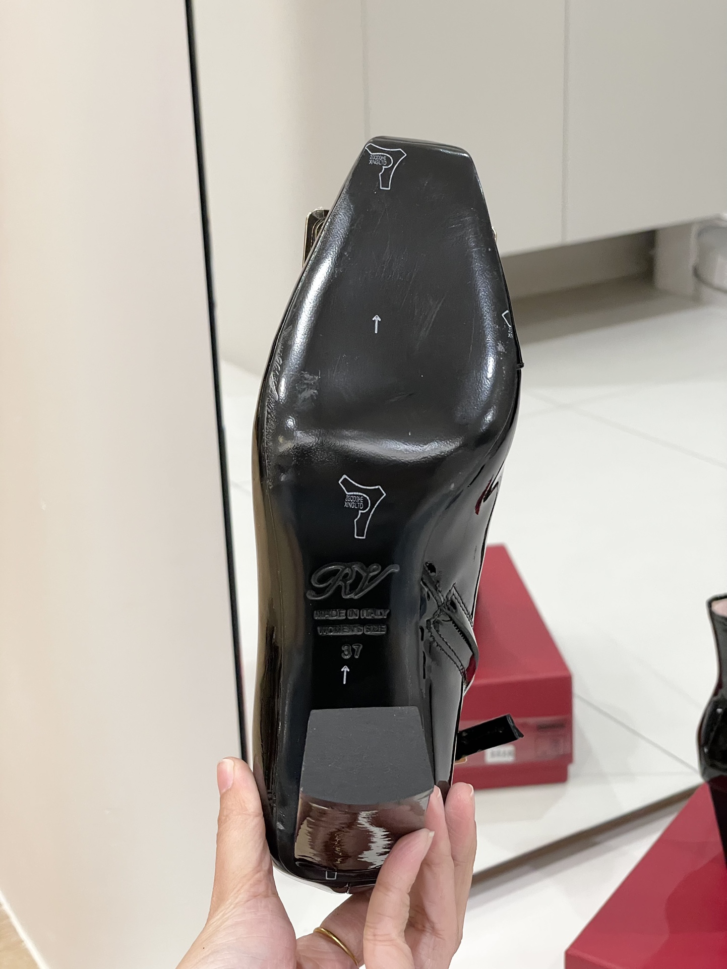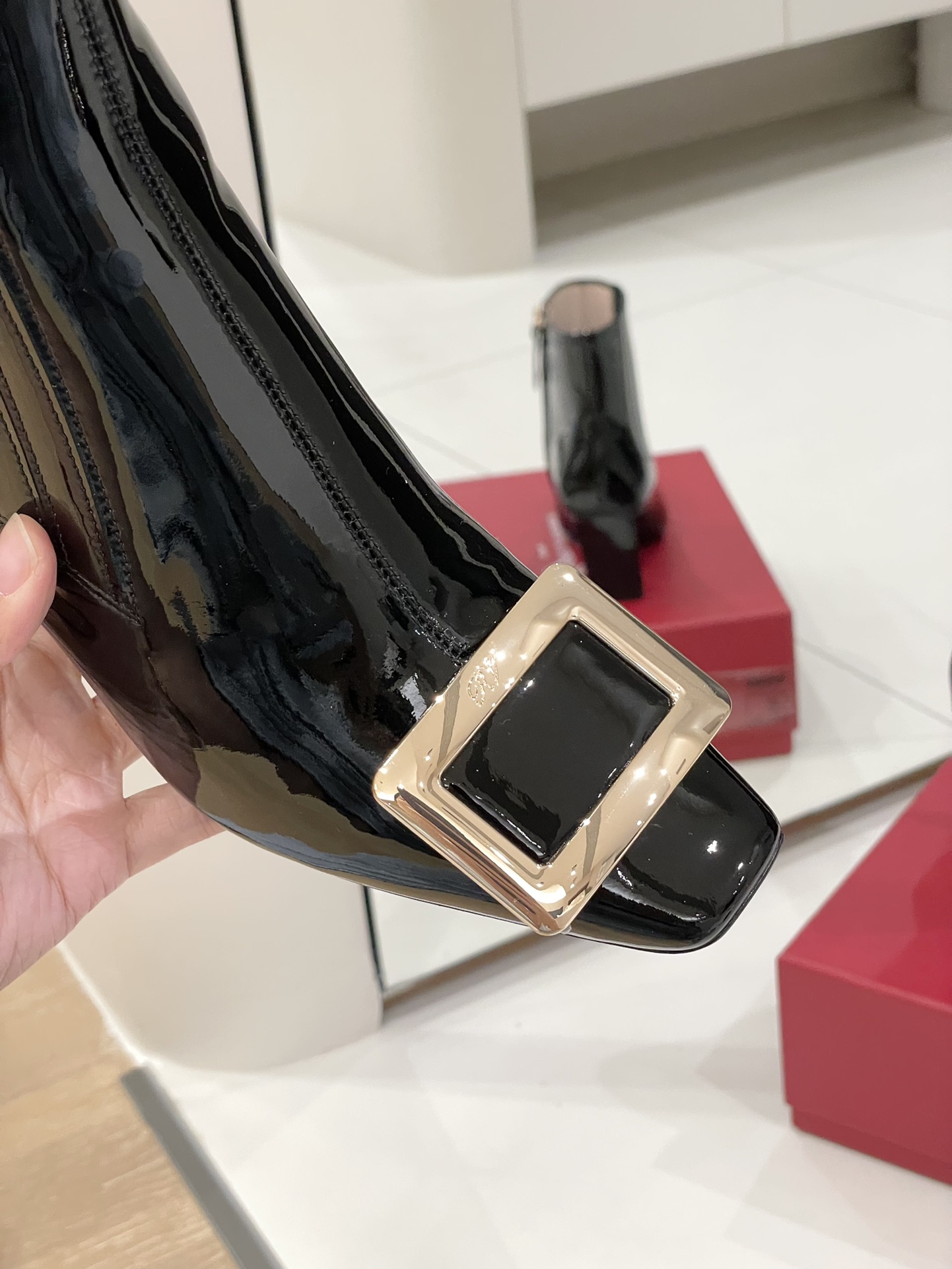 这款鞋子是AAAAA 1:1 质量 (非常棒). 使用了和原版一模一样的材料. 商标部分也保持了和罗杰维维耶/Roger Vivier一样. 图片拍摄是实物鞋子拍摄, 您所收到的实物保证和我们图片一模一样.