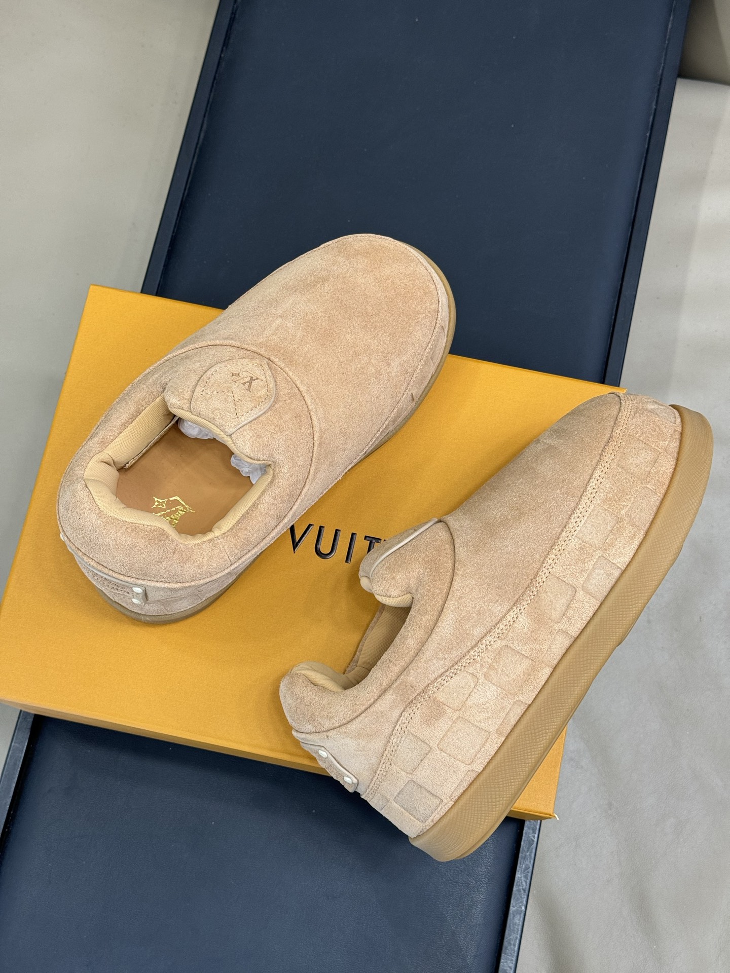 这款鞋子是AAAAA 1:1 质量 (非常棒). 使用了和原版一模一样的材料. 商标部分也保持了和路易威登/Louis Vuitton一样. 图片拍摄是实物鞋子拍摄, 您所收到的实物保证和我们图片一模一样.