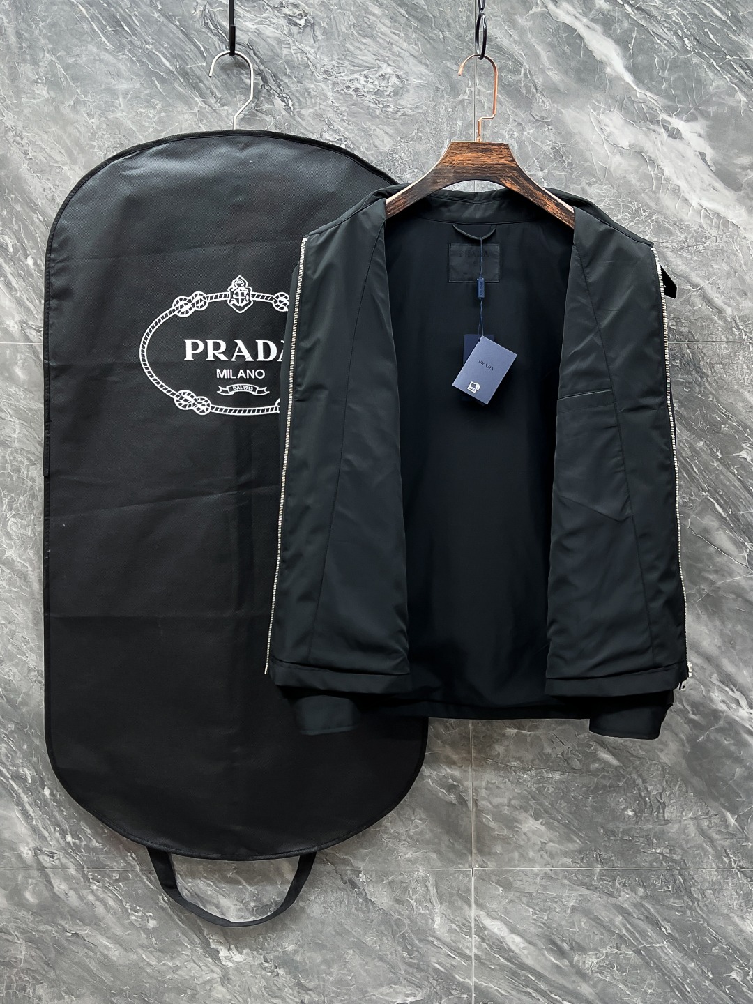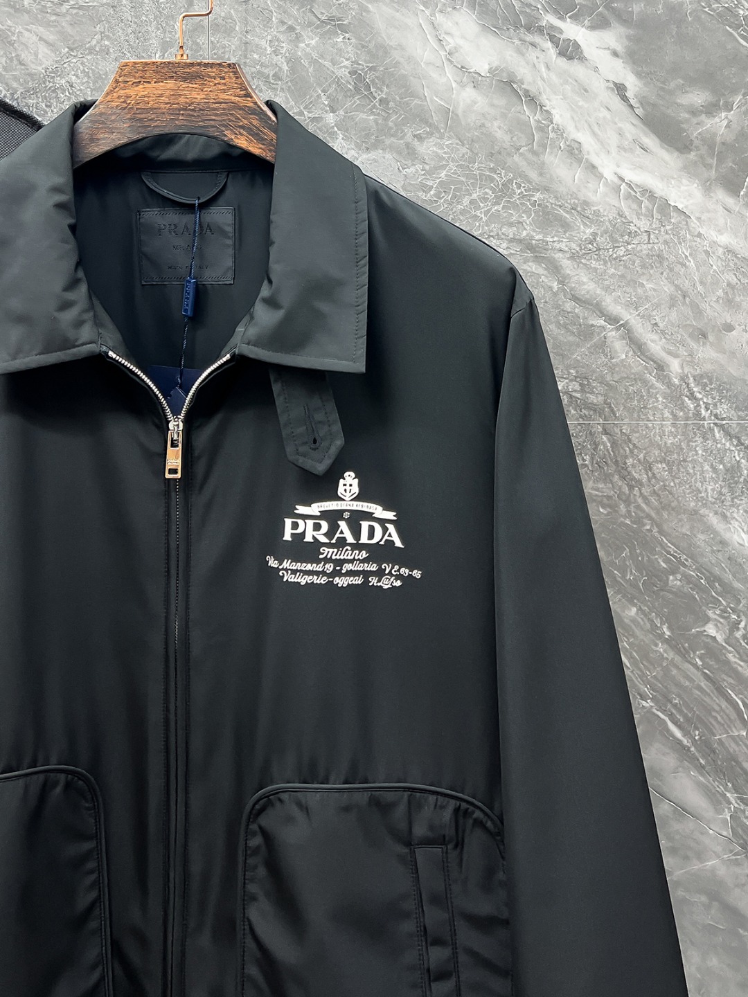 这款衣服是AAAAA 1:1 质量 (非常棒). 使用了和原版一模一样的材料. 商标部分也保持了和普拉达/Prada一样. 图片拍摄是实物衣服拍摄, 您所收到的实物保证和我们图片一模一样.