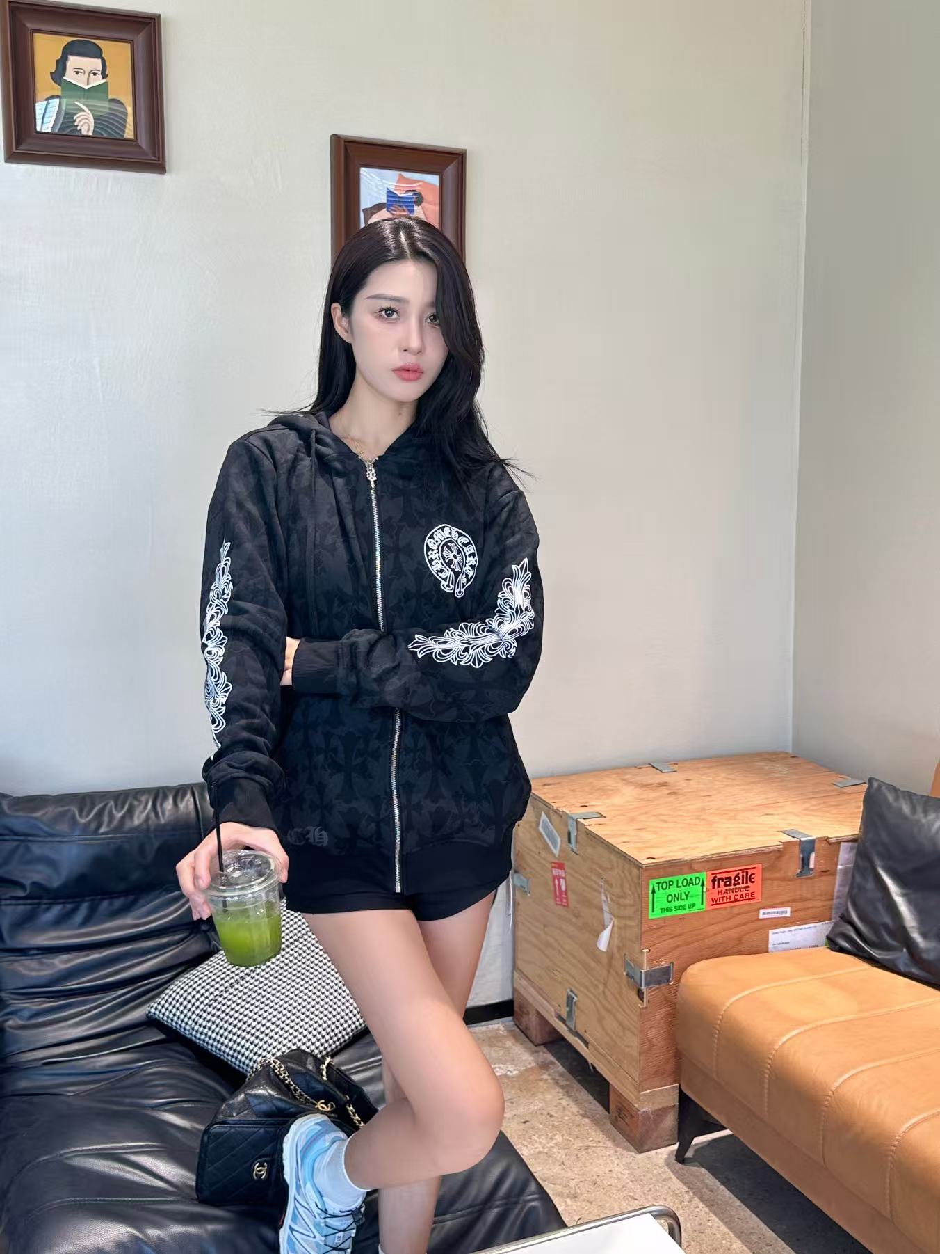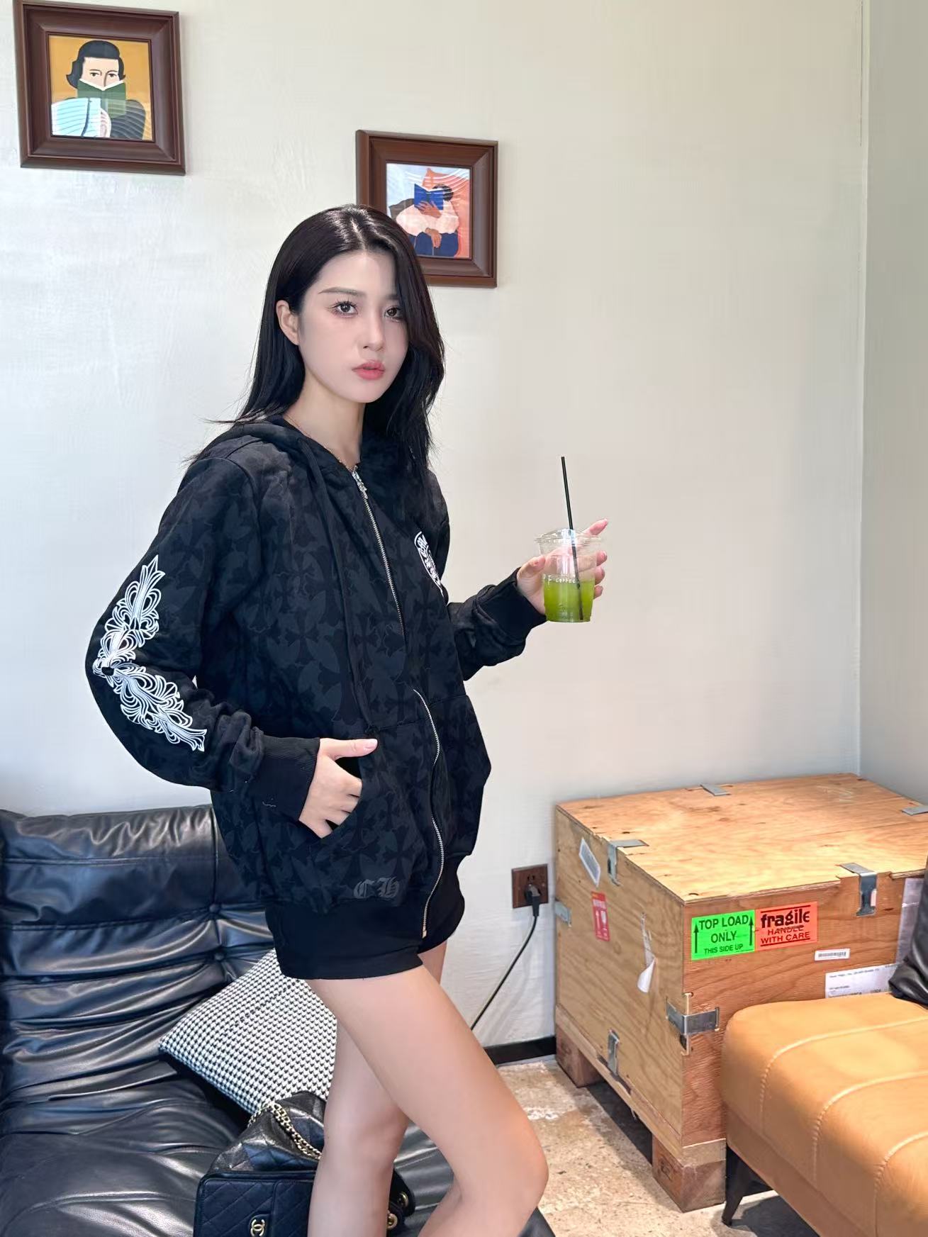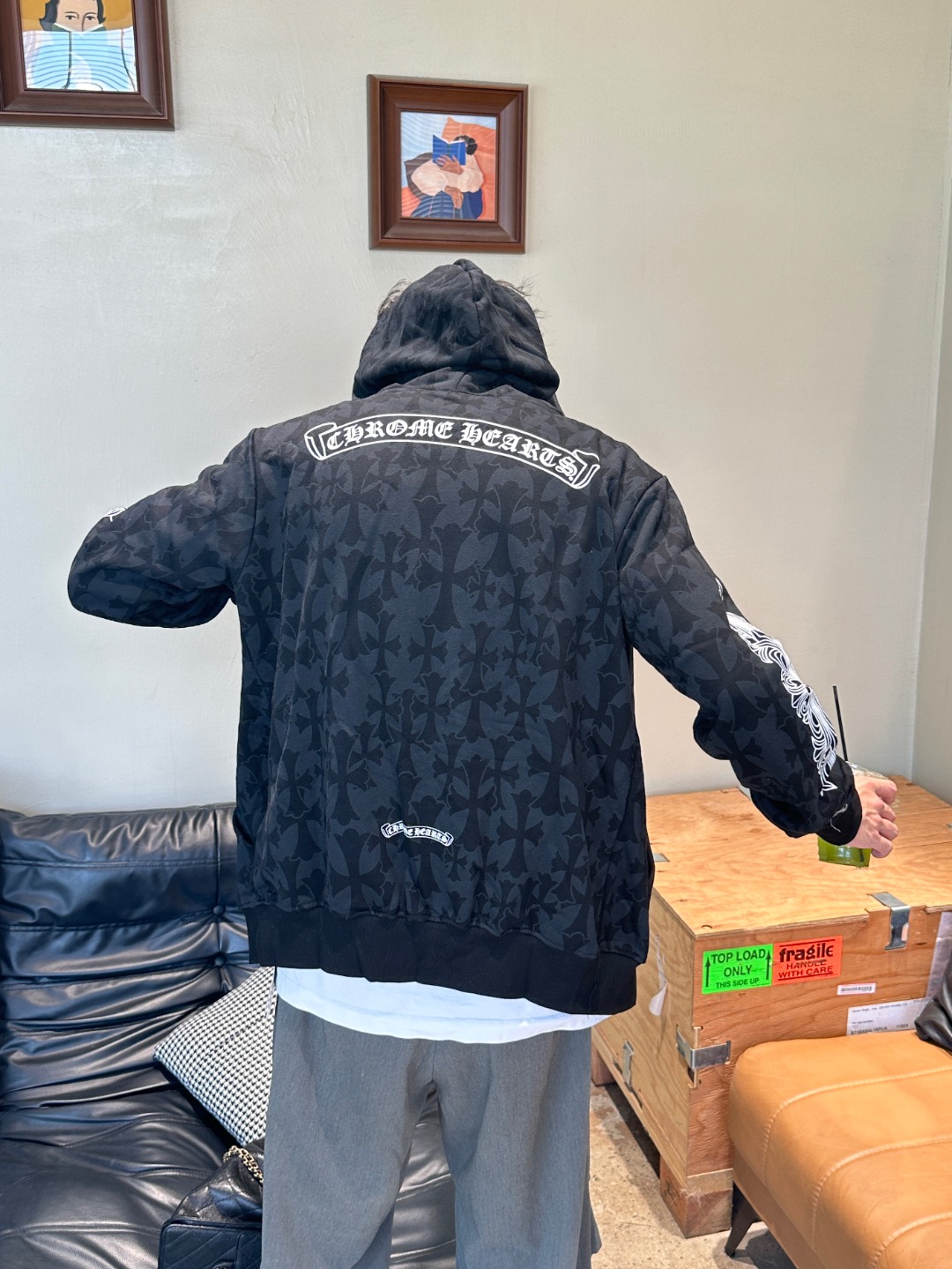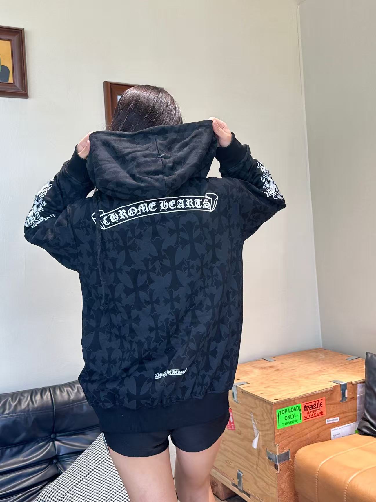 这款衣服是AAAAA 1:1 质量 (非常棒). 使用了和原版一模一样的材料. 商标部分也保持了和克罗心/Chrome Hearts一样. 图片拍摄是实物衣服拍摄, 您所收到的实物保证和我们图片一模一样.