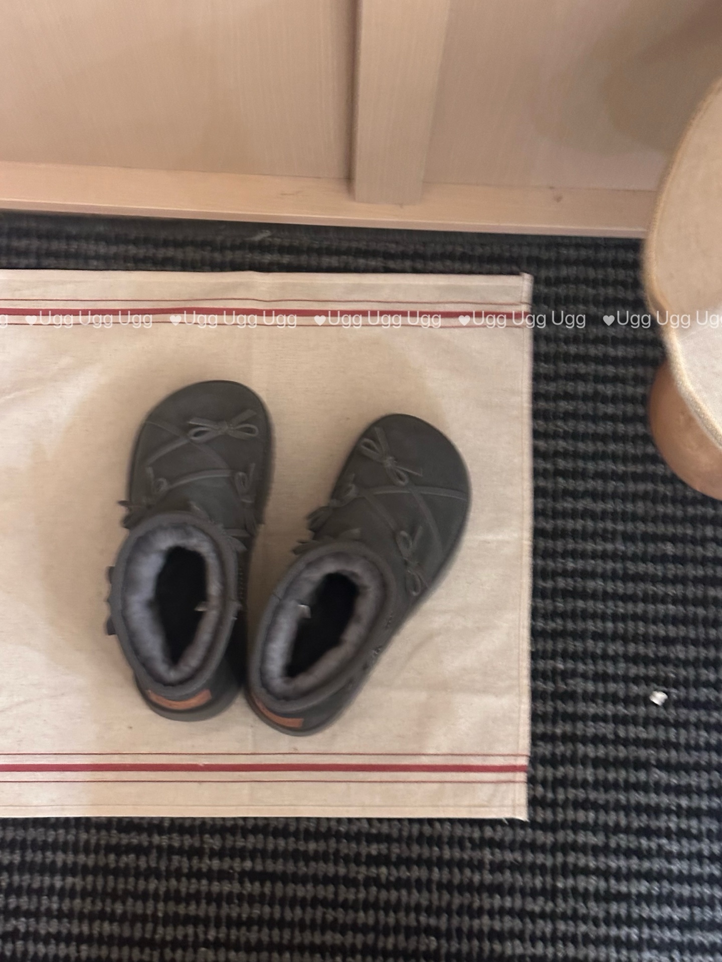 这款兒童鞋是AAAAA 1:1 质量 (非常棒). 使用了和原版一模一样的材料. 商标部分也保持了和UGG雪地靴一样. 图片拍摄是实物兒童鞋拍摄, 您所收到的实物保证和我们图片一模一样.
